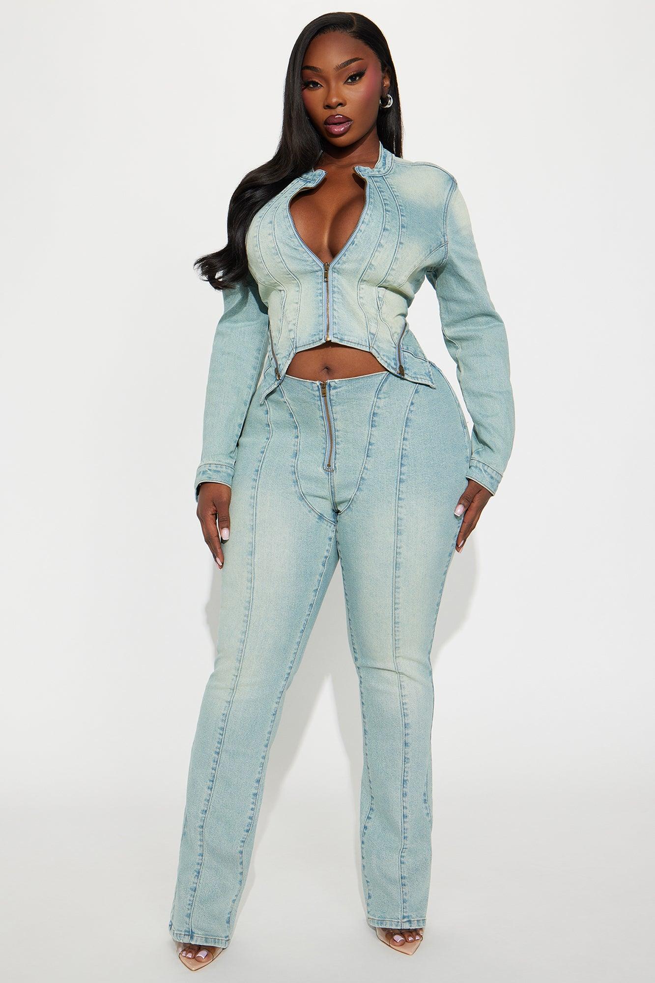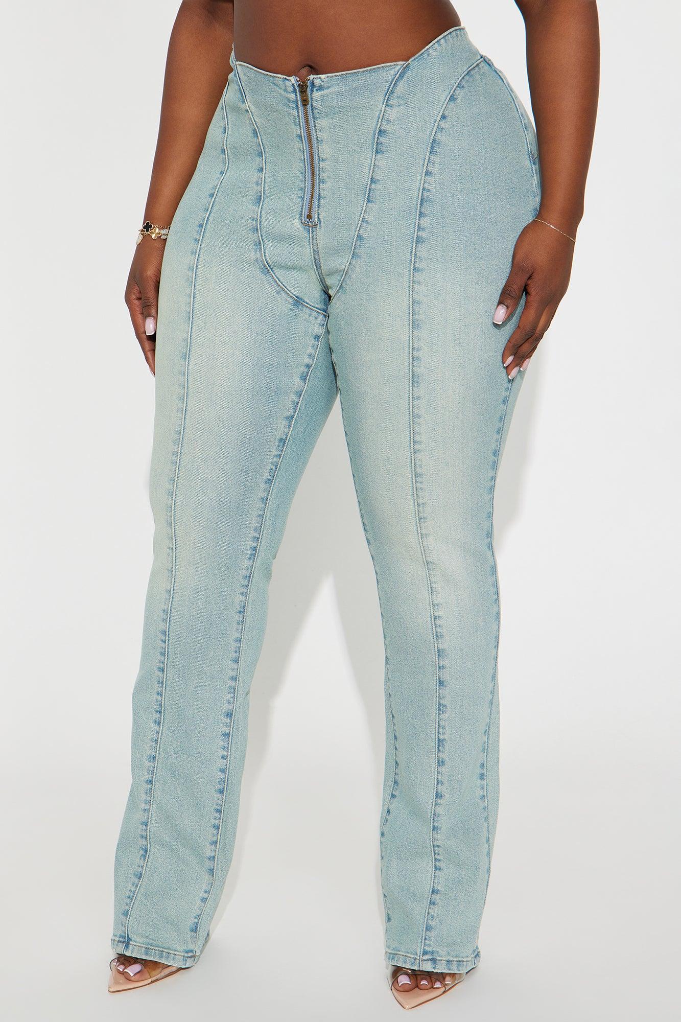 Available In Vintage Wash. Pair With She's A Stunner Denim Jacket Bootcut Jean Zip Front Seaming 34" Inseam 10" Rise Low Stretch Disclaimer: Due To The Specialized Wash Process, Each Garment Is Unique. 99% Cotton 1% Spandex Imported California Proposition 65WARNING: Cancer and Reproductive Harm - www.P65Warnings.ca.gov.