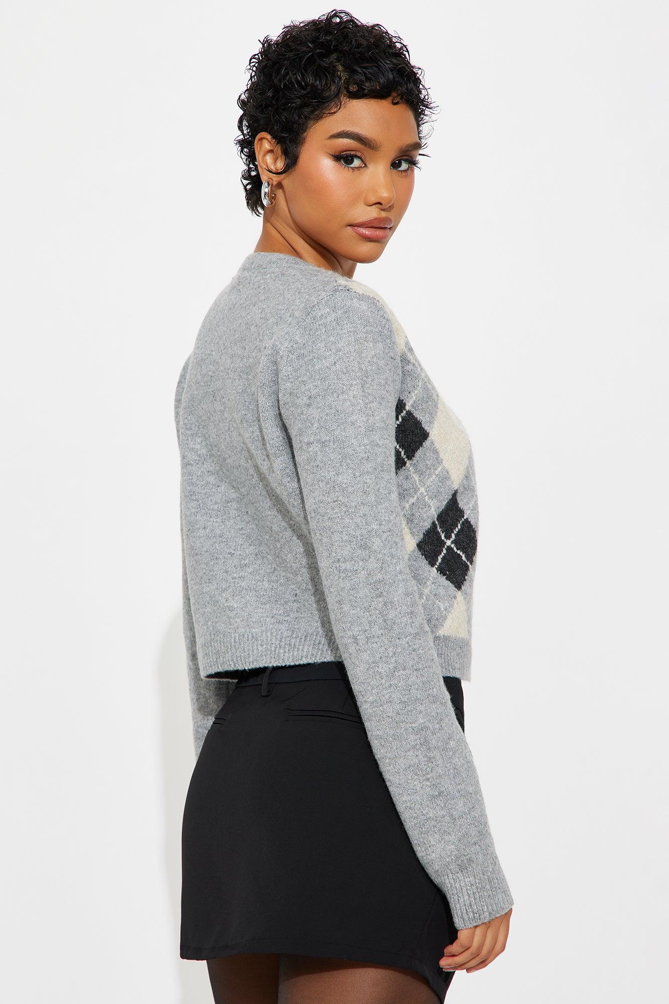 She's Smart Argyle Cardigan - Grey/combo Female