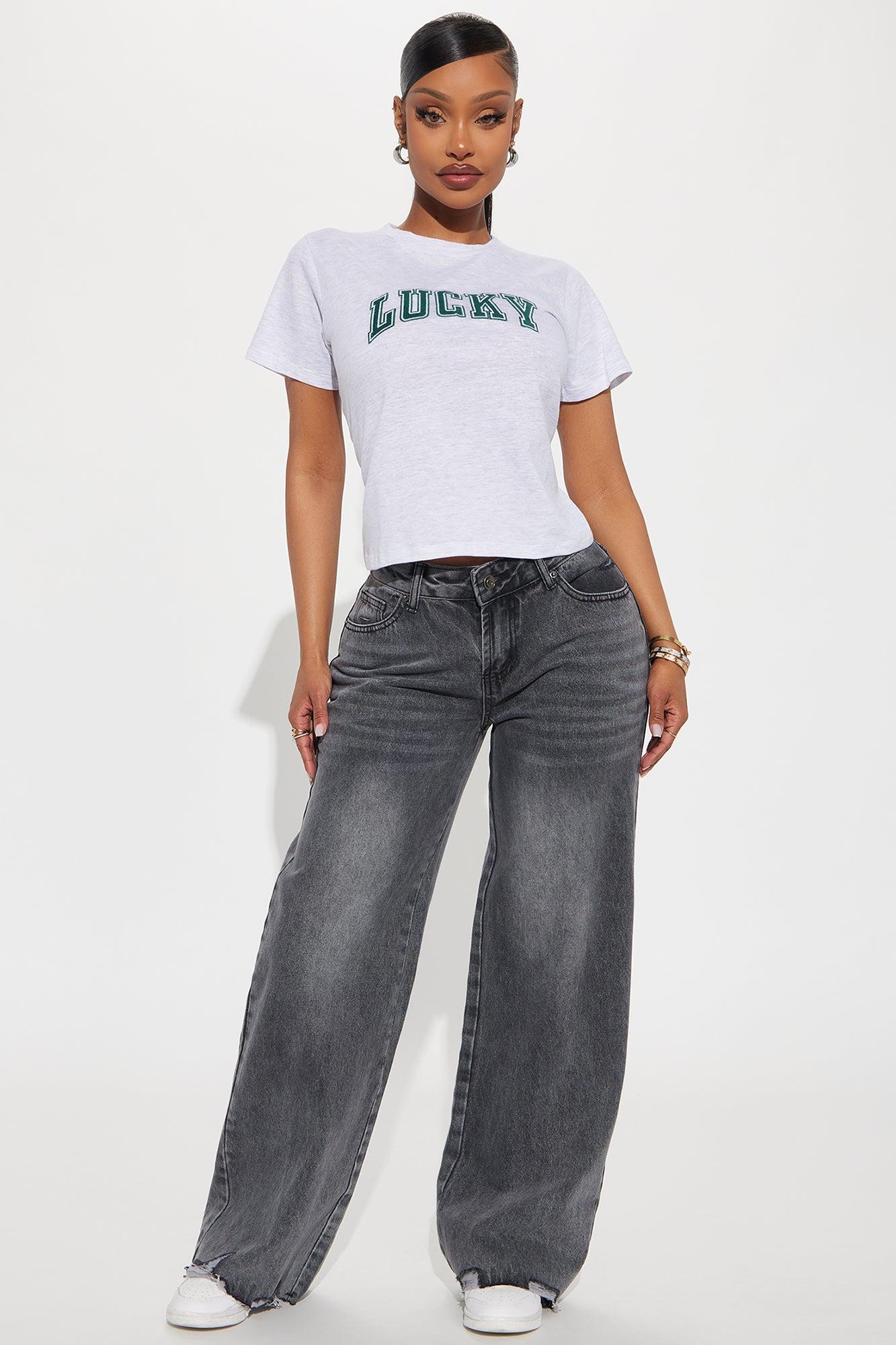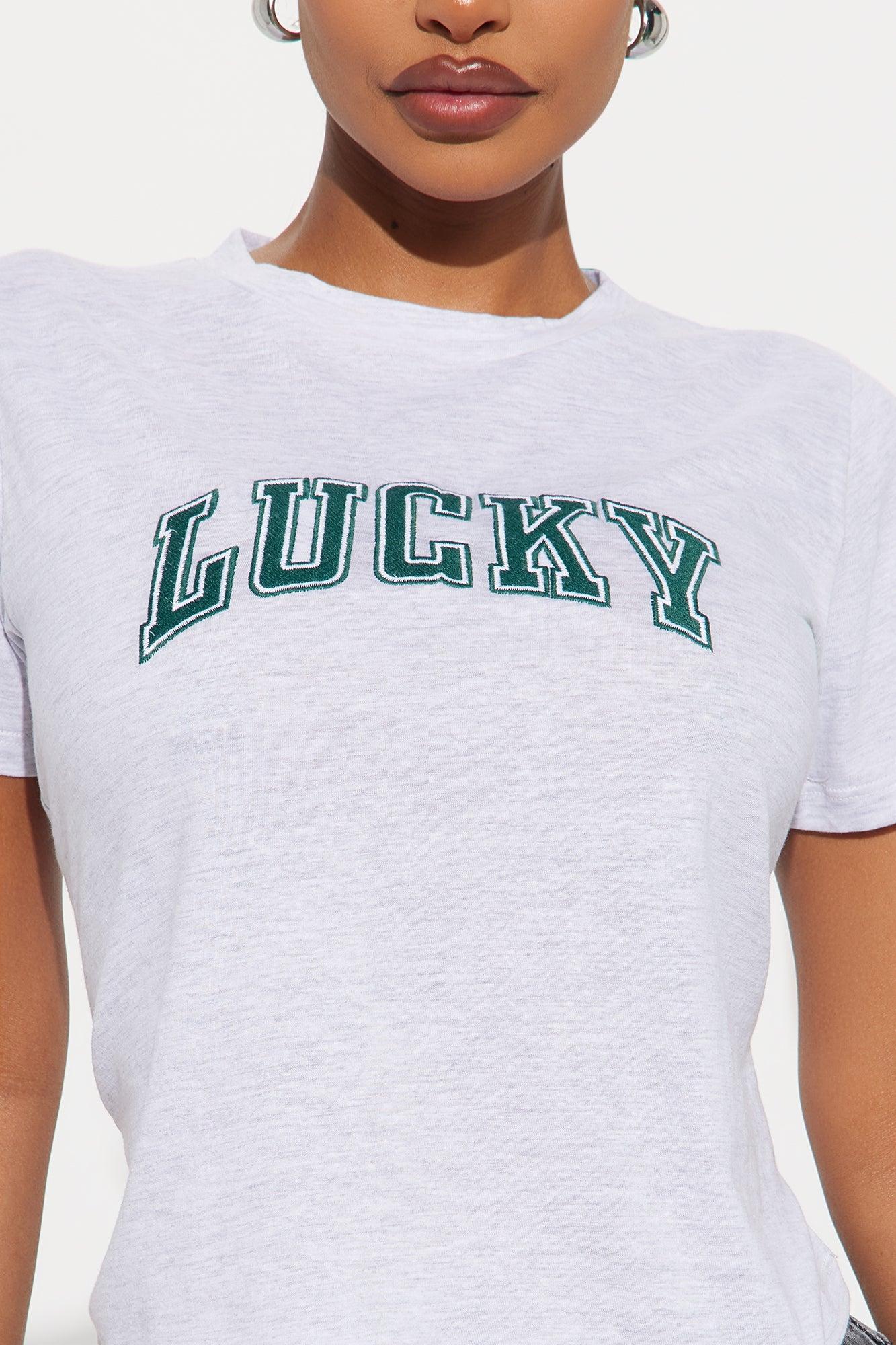 Women's Lucky Charm Graphic Tee, Girl's, Size: Small, Grey Gray