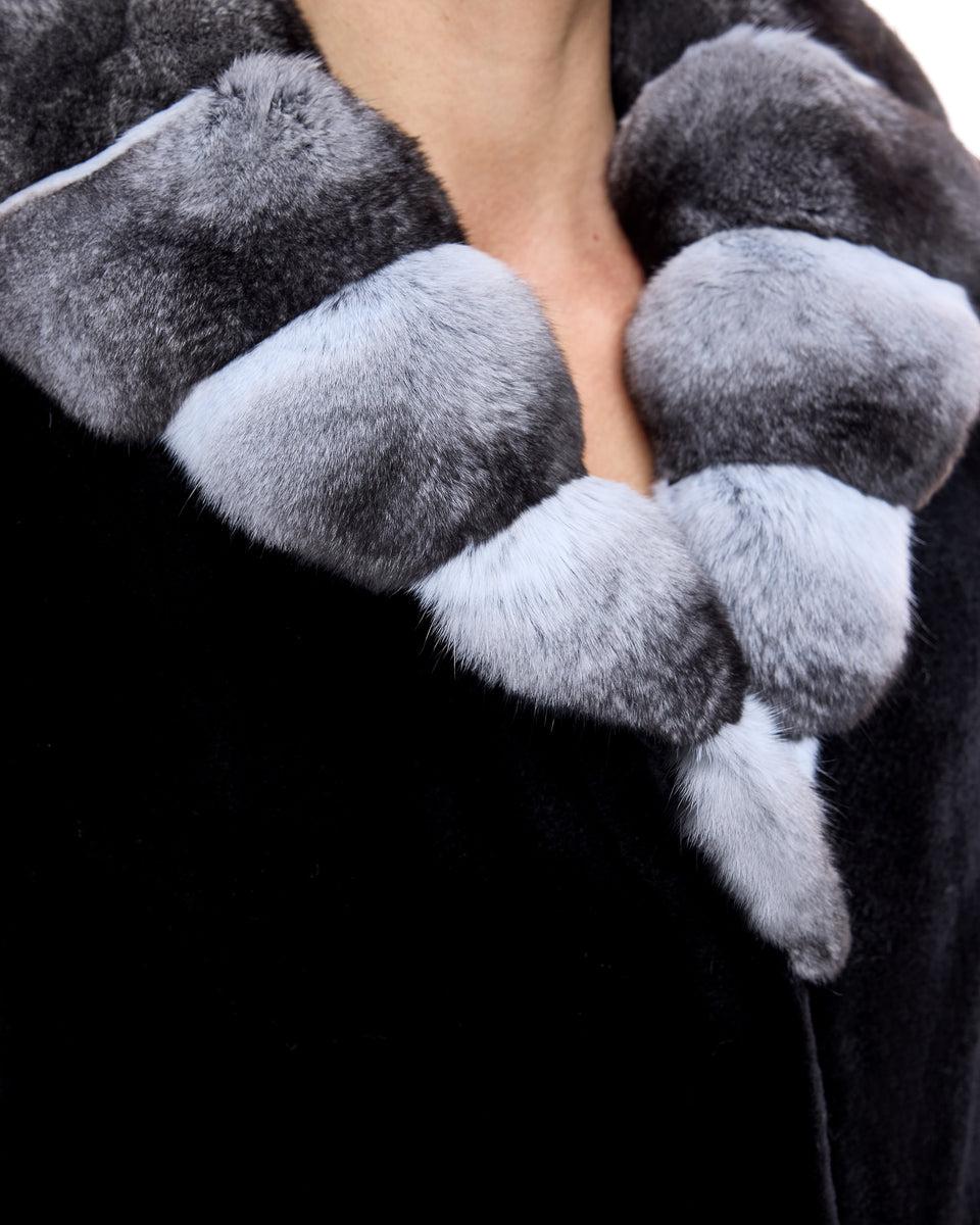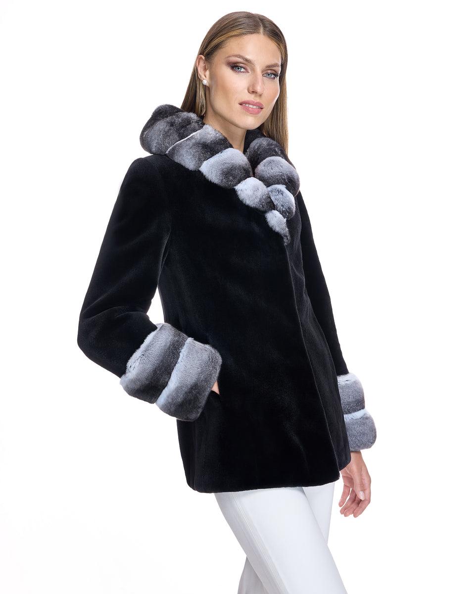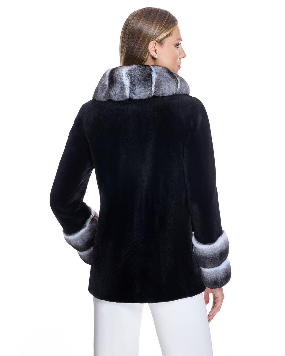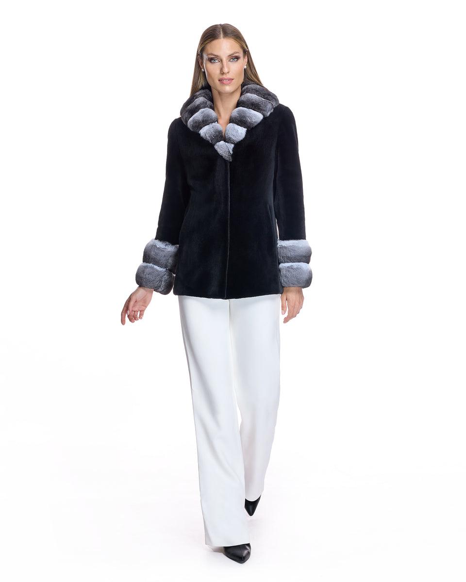 SHEARED MINK COAT WITH CHINCHILLA TRIM