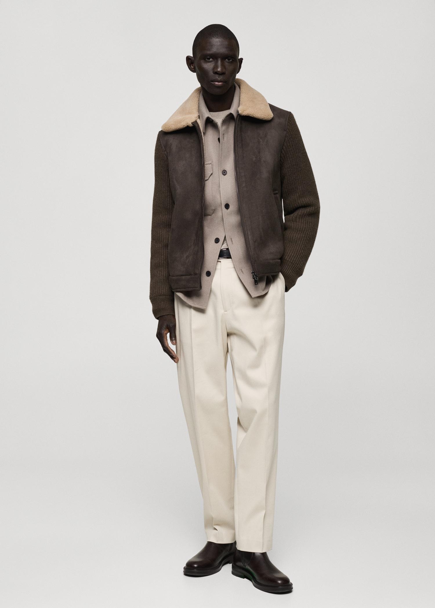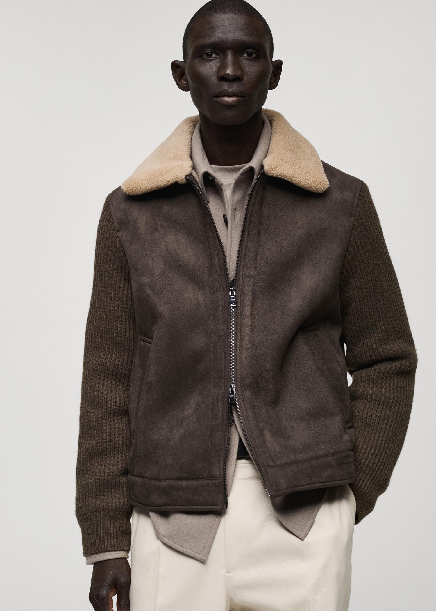 Suede-effect fabric. Shirt-style collar. Zip fastening. Two side pockets. Faux shearling interior. Faux shearling collar. The model is 6'1" and is wearing a size M. Back length 27.36 in