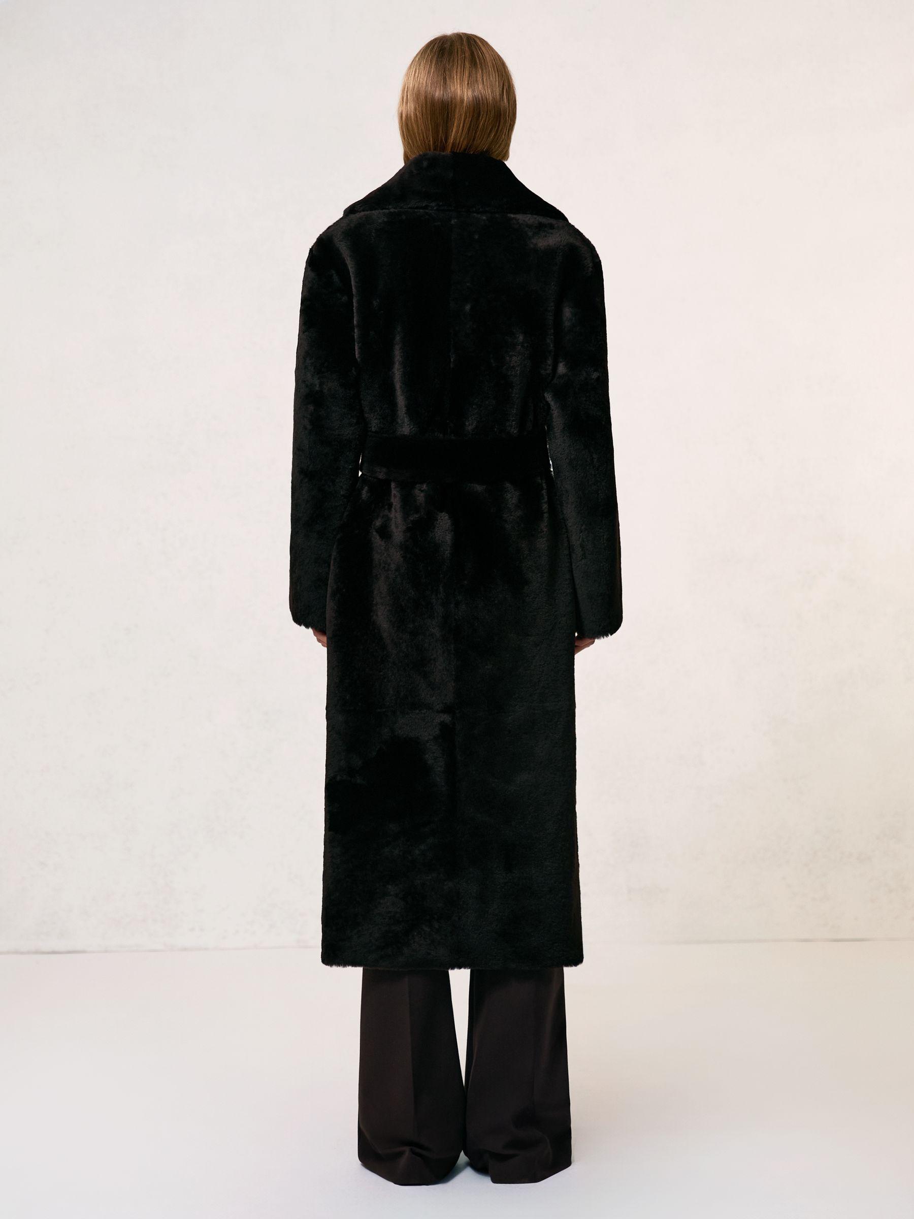Shearling Belted Coat in Chocolate Brown