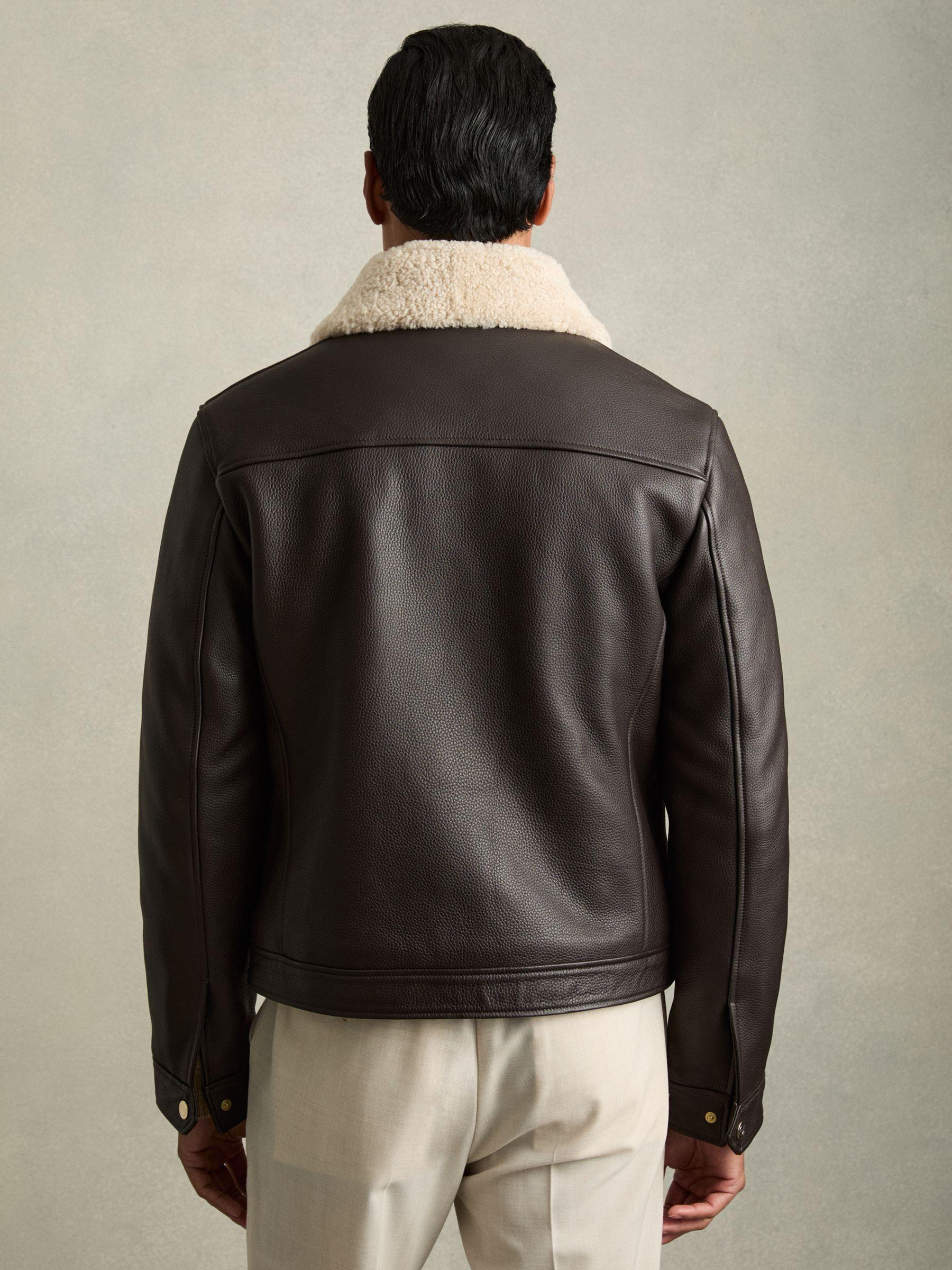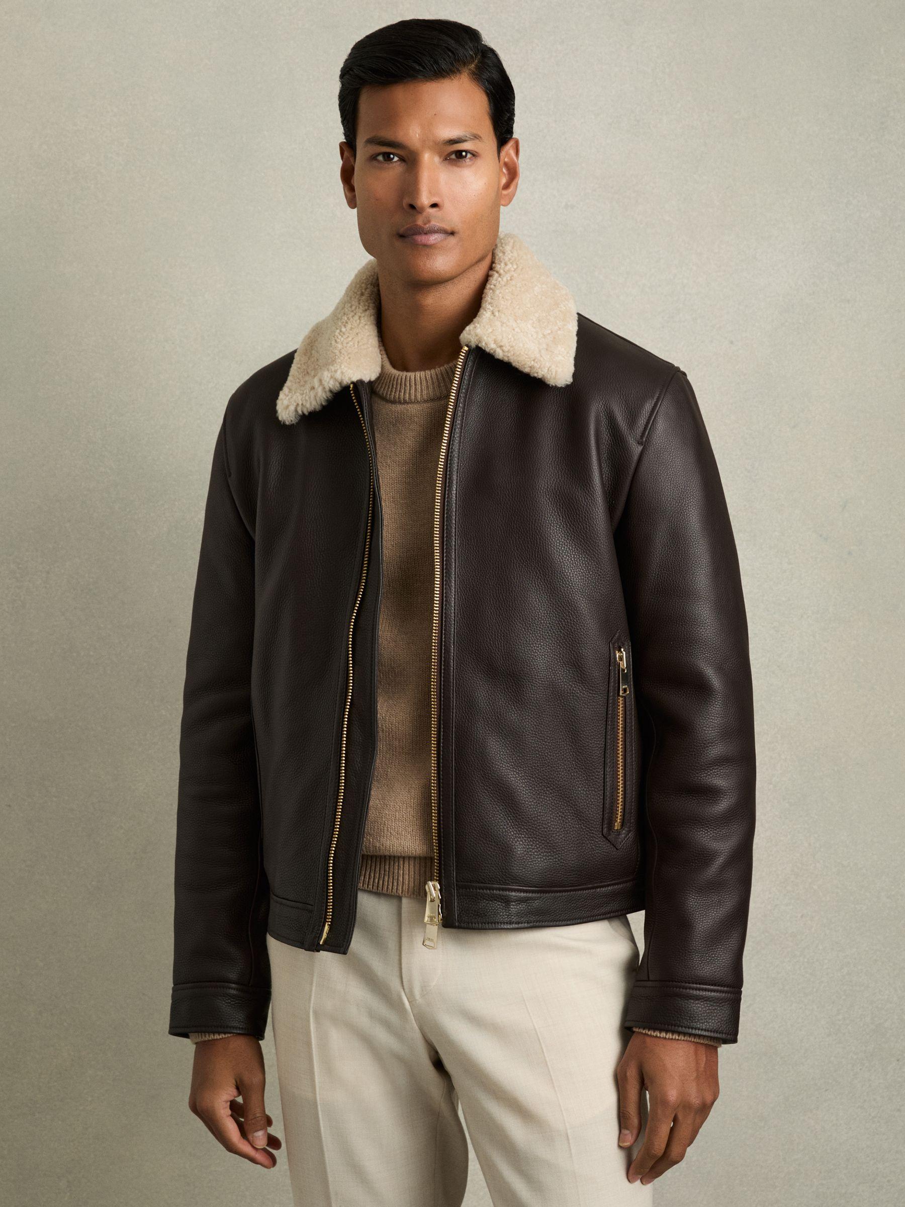 The Shetland jacket is expertly crafted from supple grained leather and features a plush shearling collar. Gold-tone zip accents bring a refined touch, whilst the diamond-quilted lining offers added warmth and comfort. 100% leather Shearling collar Zipped side pockets Press-stud cuffs Diamond-quilted lining Dual front zip