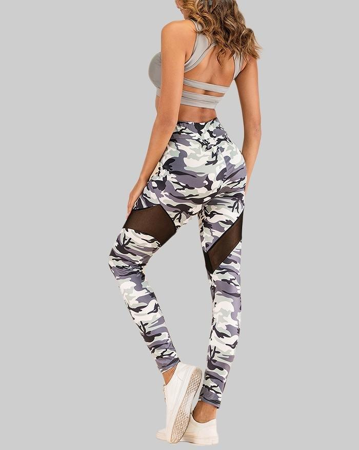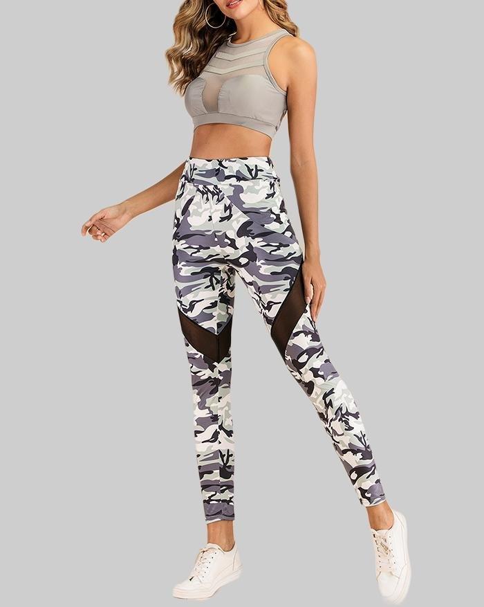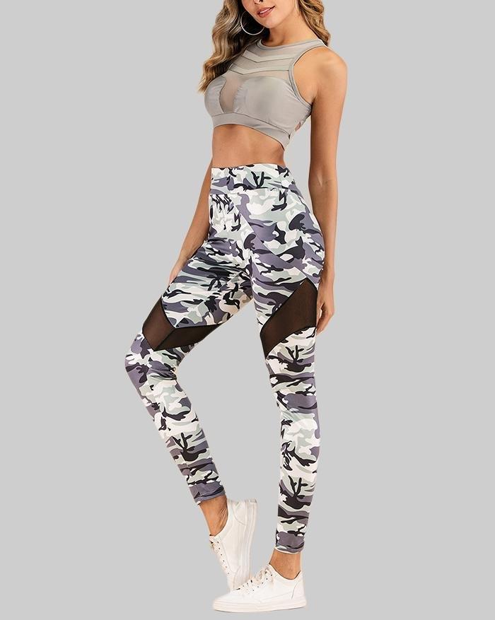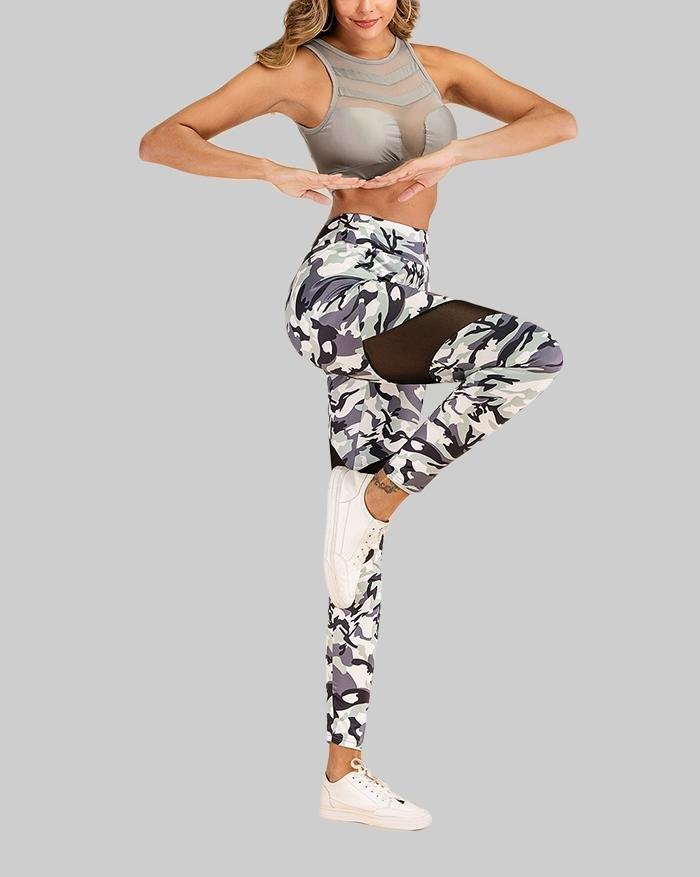 Sheer Mesh Camouflage Printed Yoga Legging