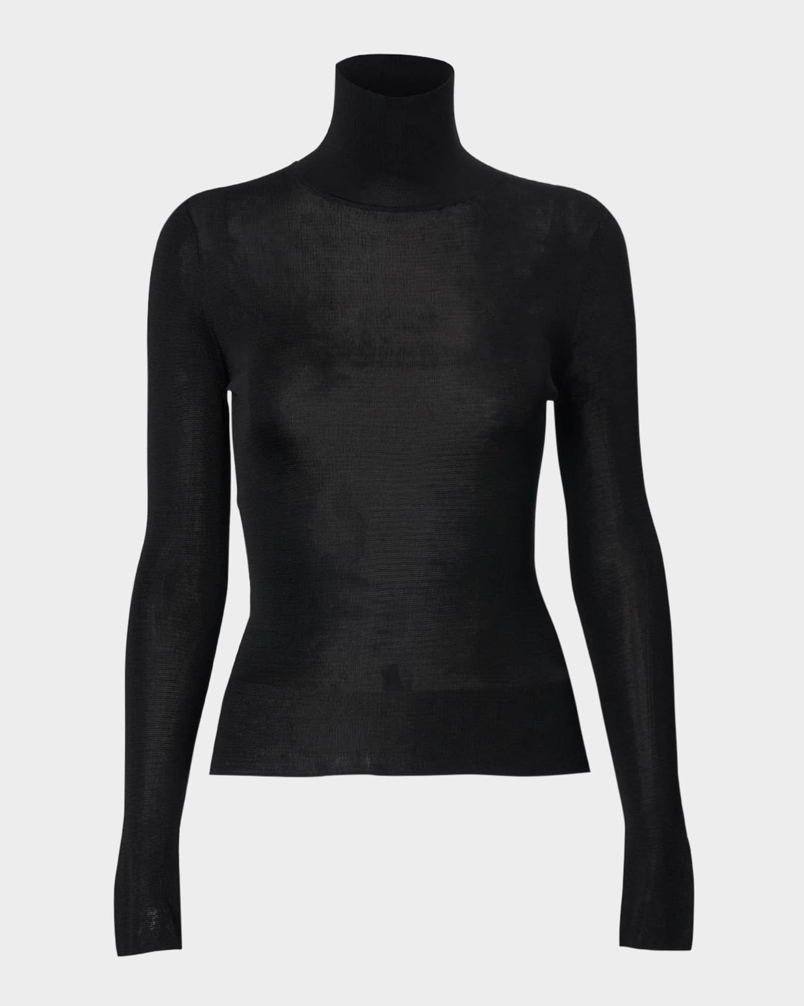 Carolina Herrera sweater in sheer knit Turtleneck Long sleeves Fitted Ribbed cuffs and hem Pullover style Viscose Dry clean Imported