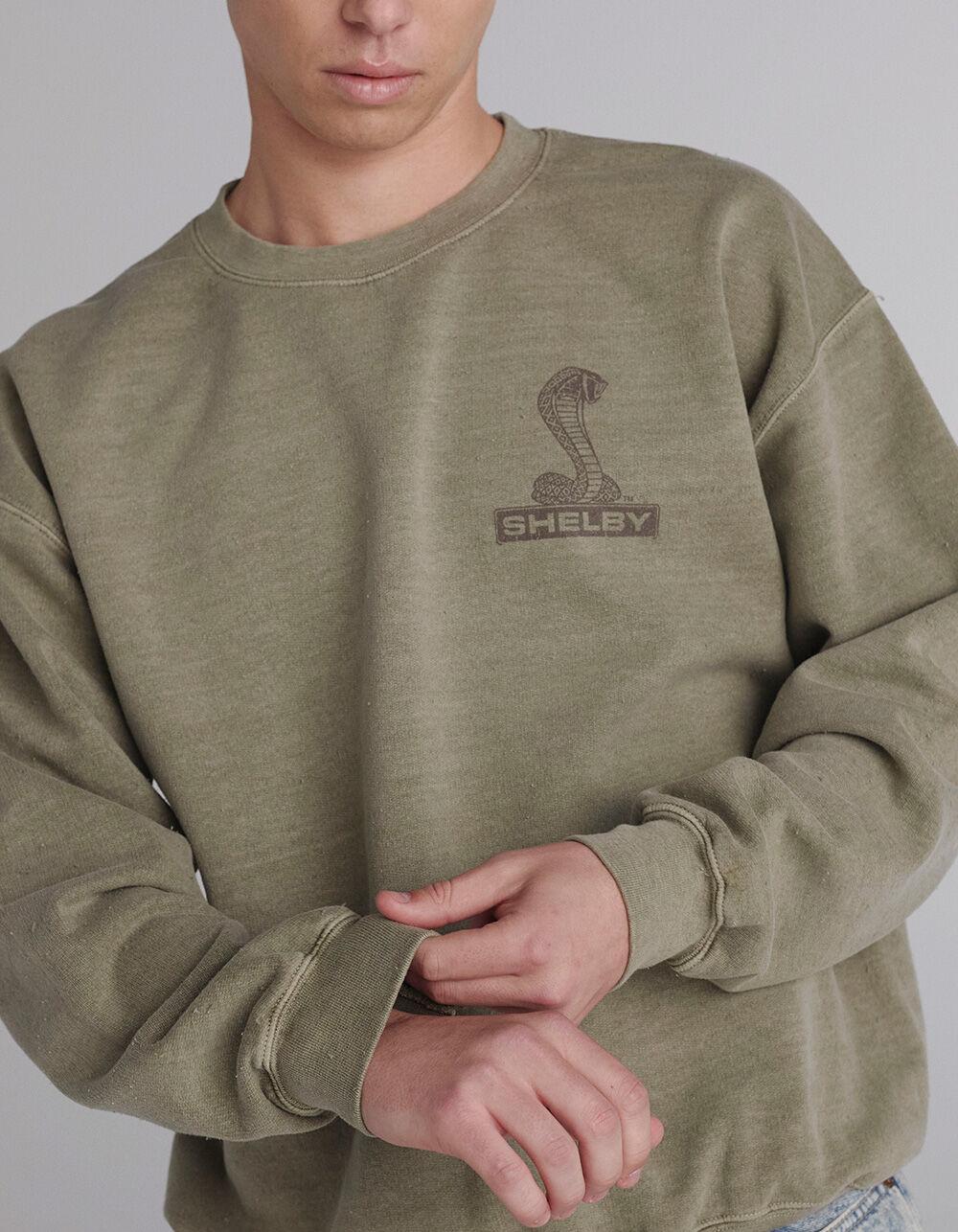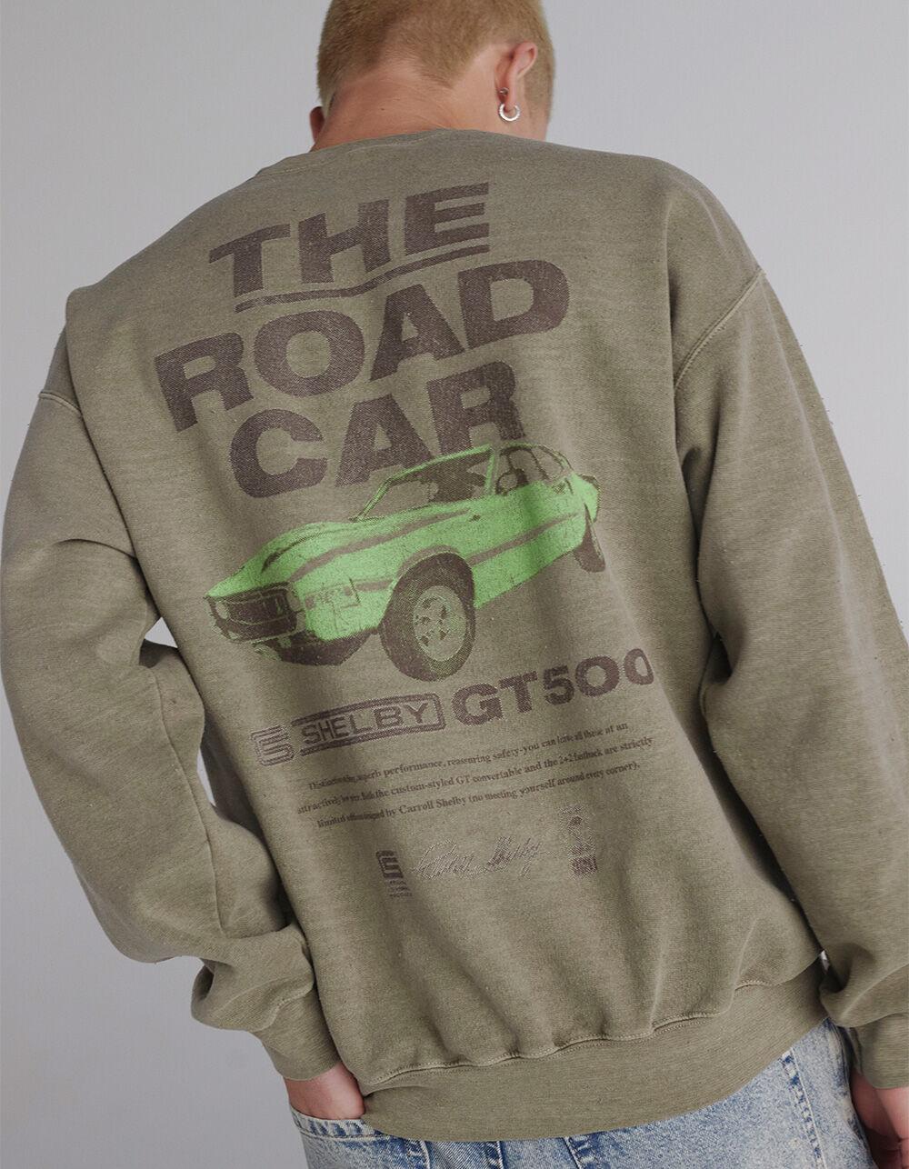 Shelby Cobra Road Car Crewneck Sweatshirt. Graphic screened at left chest. Large graphic on back. Crew neck. Cuffed long sleeves and hem. Fleece lining. 50% Cotton 50% Polyester. Machine wash. Imported.