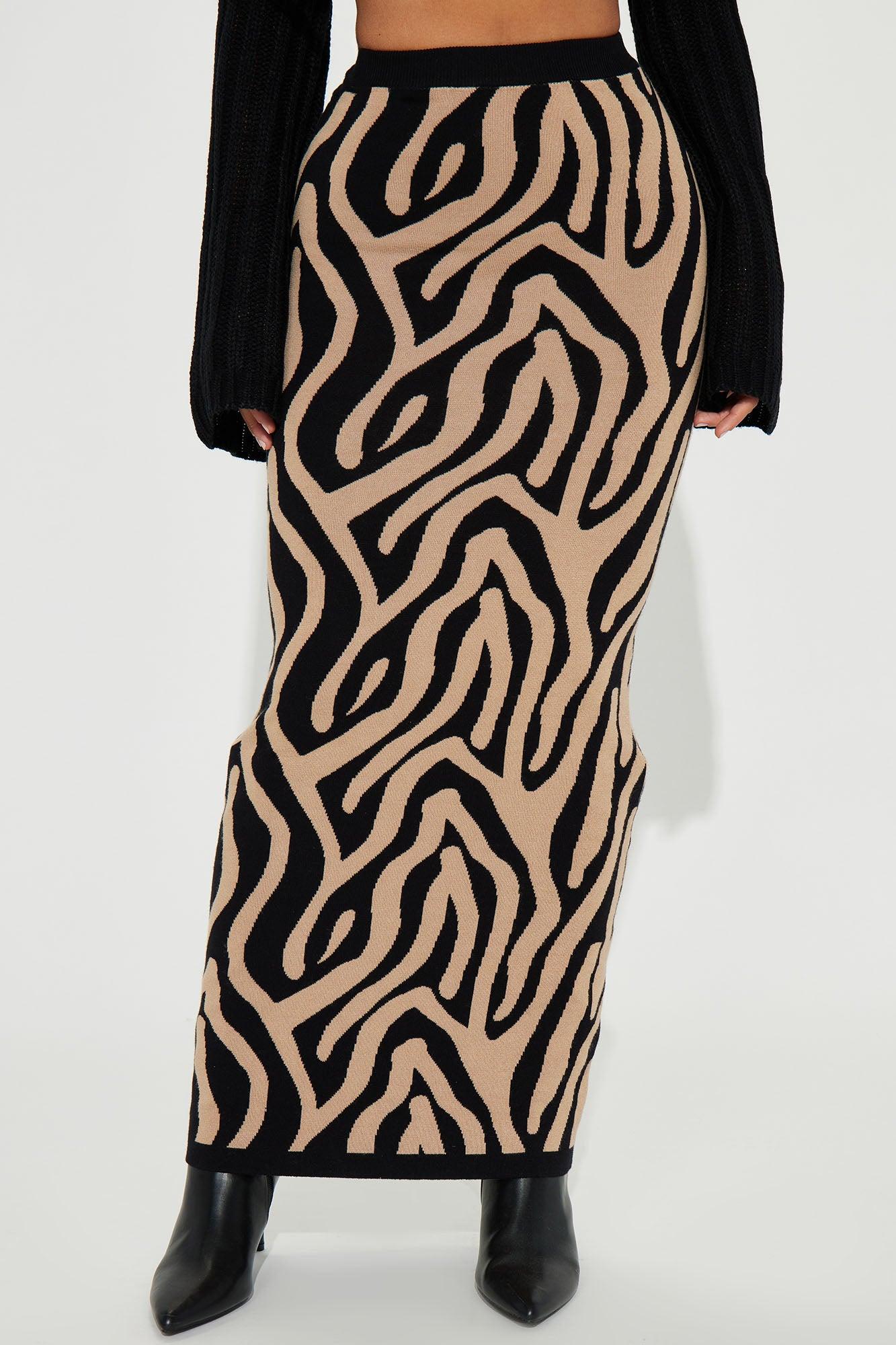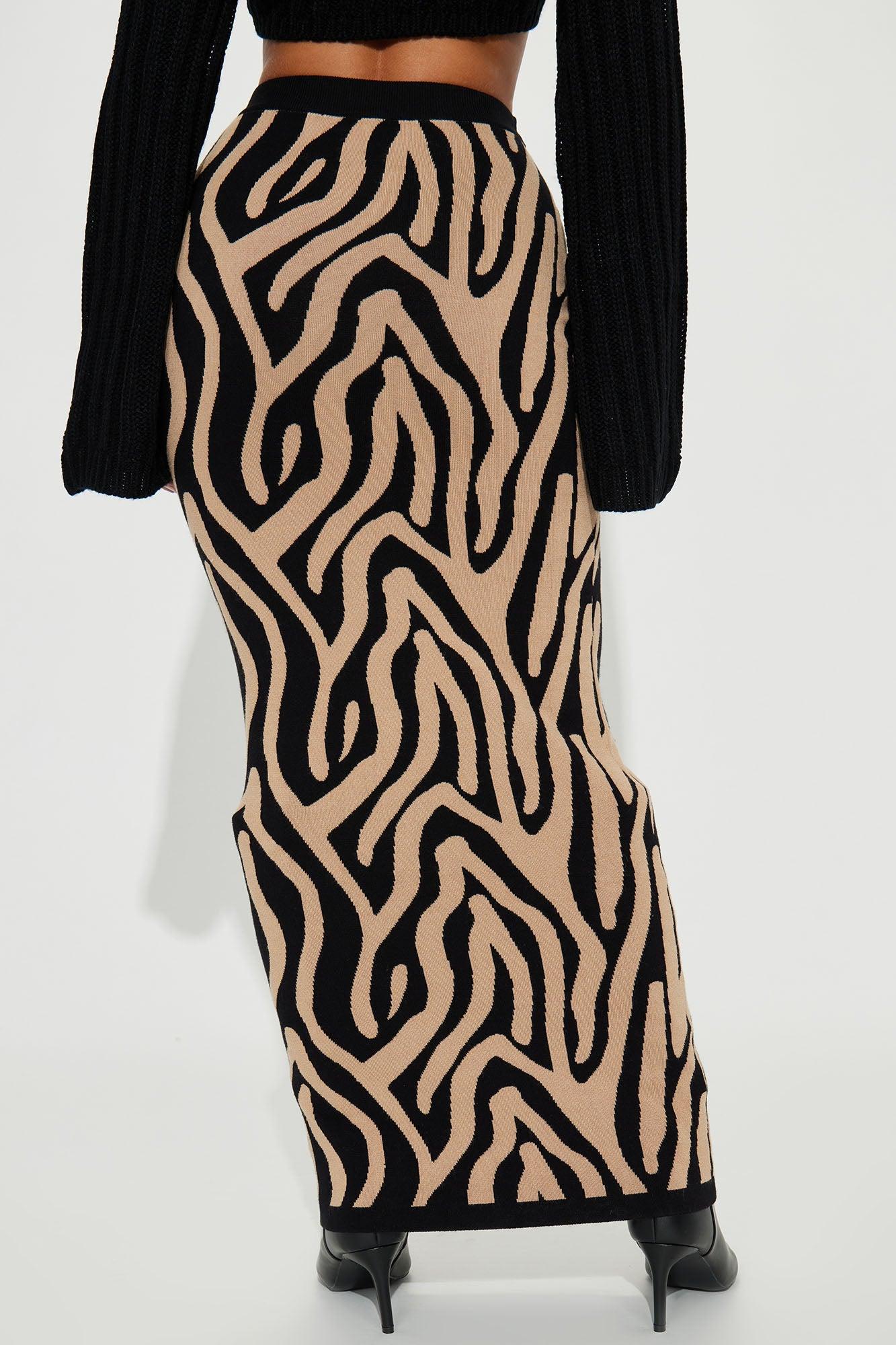 Available In Taupe/combo. Maxi Skirt High Rise Elastic Waistband Sweater Knit Zebra Design Stretch Disclaimer: Pattern Placement May Vary. 72% Viscose 28% Nylon Imported California Proposition 65 WARNING: Cancer and Reproductive Harm - www.P65Warnings.ca.gov.