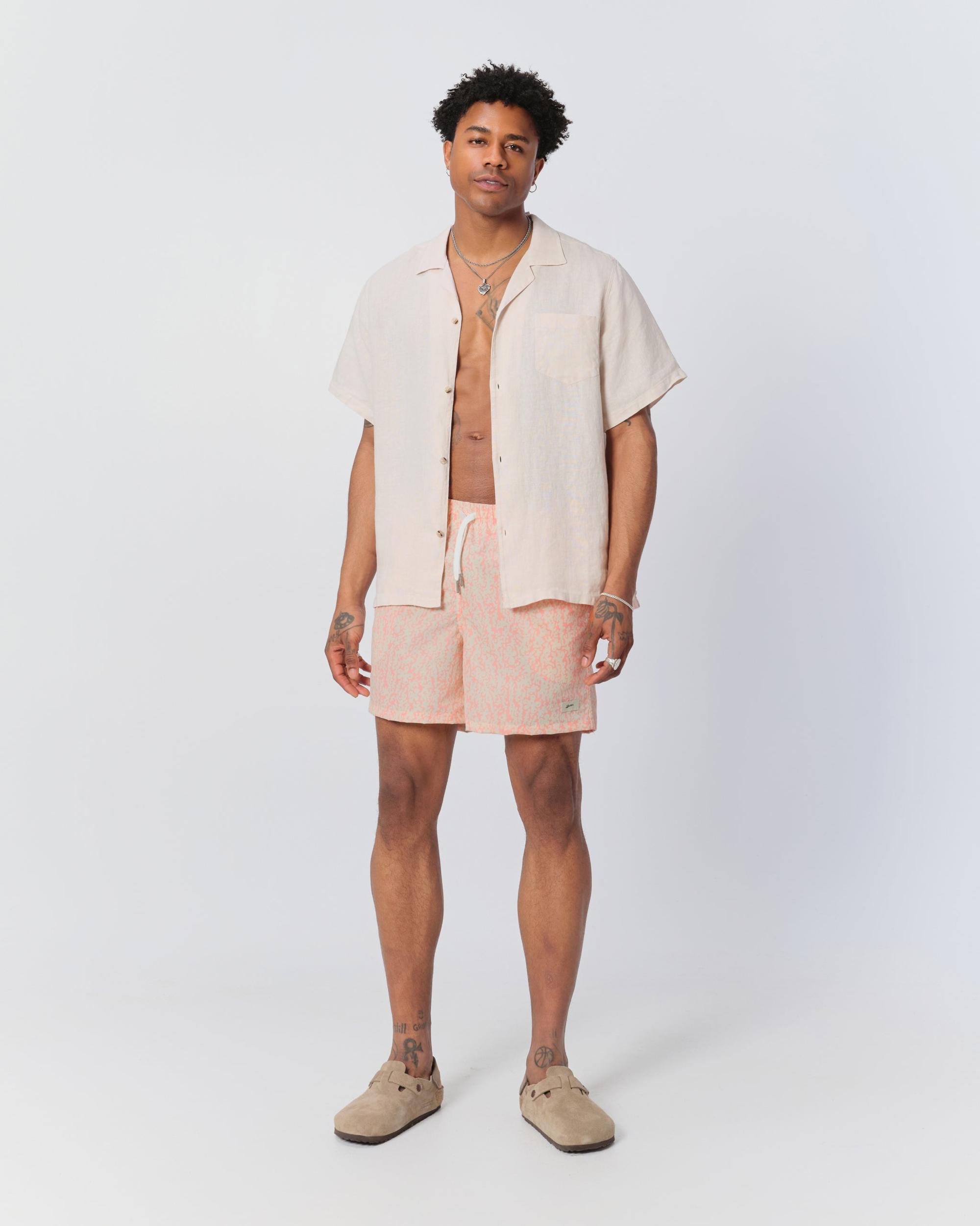 Our seasonal hand-drawn camouflage discreetly weaves floral motifs throughout this disruptive pattern material. The 100% recycled and quick-drying signature Swim Trunk makes for the perfect poolside uniform. Get all three colours to make sure you fit in anywhere you go this Summer season.