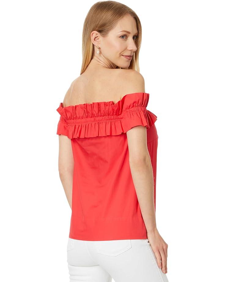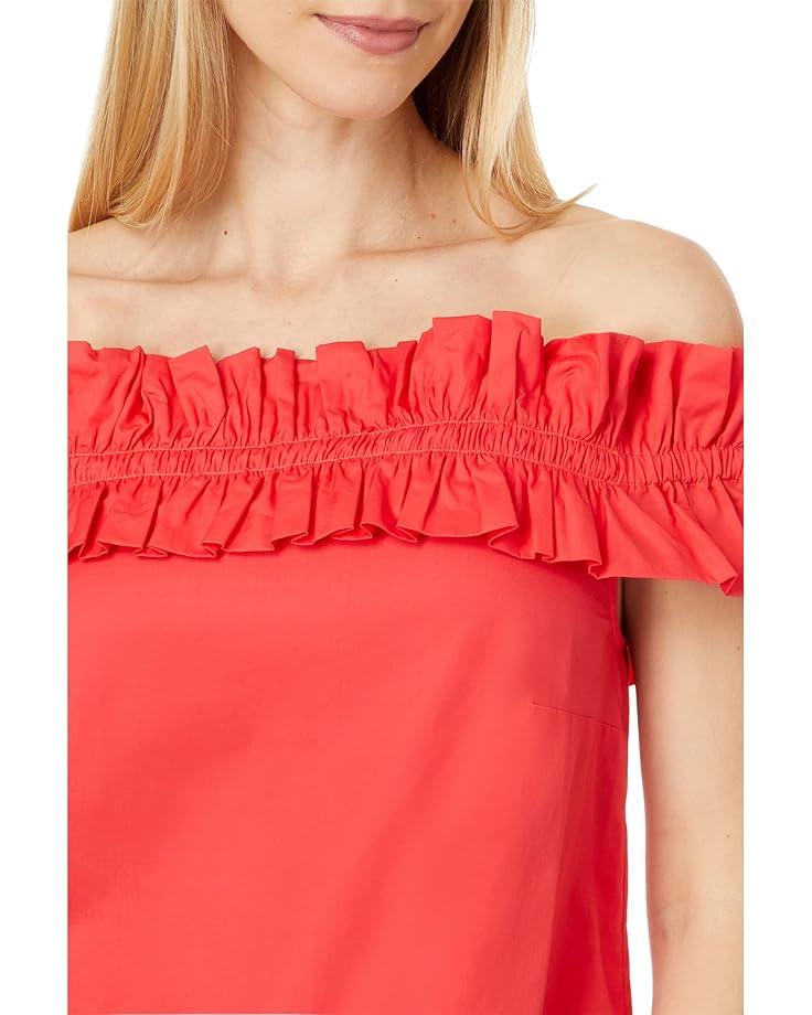 Go the bold and beautiful way donning the Lilly Pulitzer® Brennalee Off The Shoulder Top, crafted in a straight fit. The top features an off-the-shoulder design with large neckline ruffles, a vibrant solid pattern, and a standard length silhouette with straight hem.
