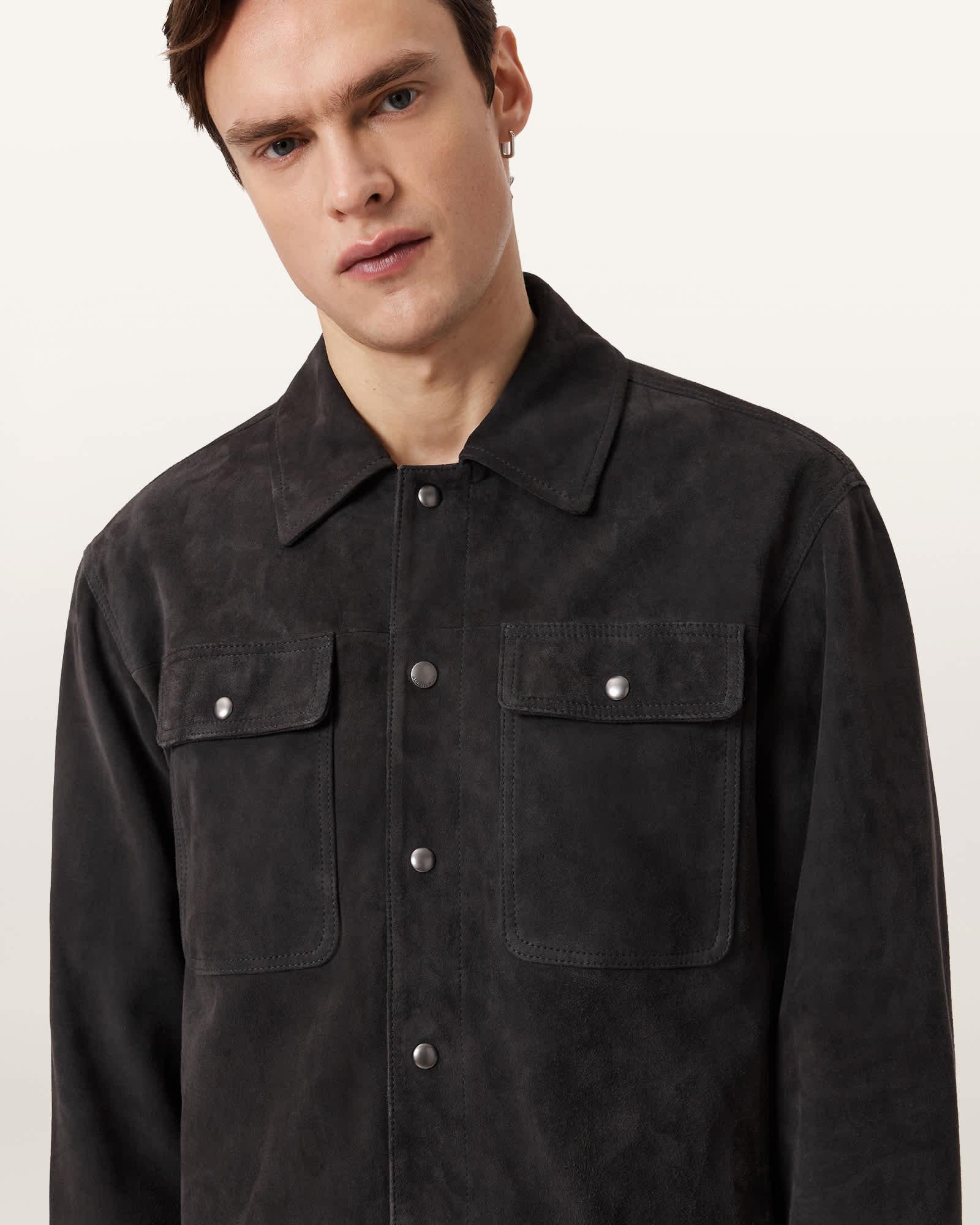 Shelton Leather Jacket Washed Black | ALLSAINTS US