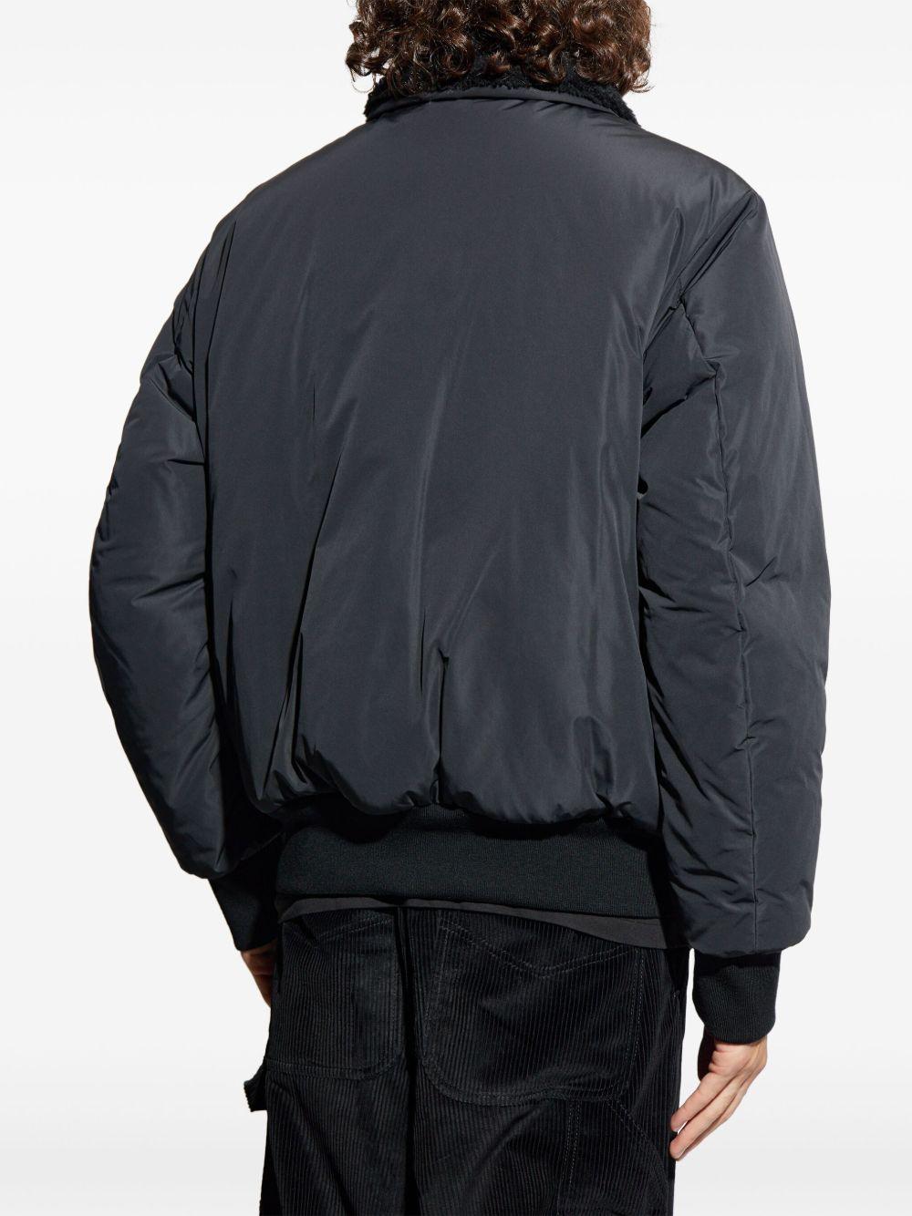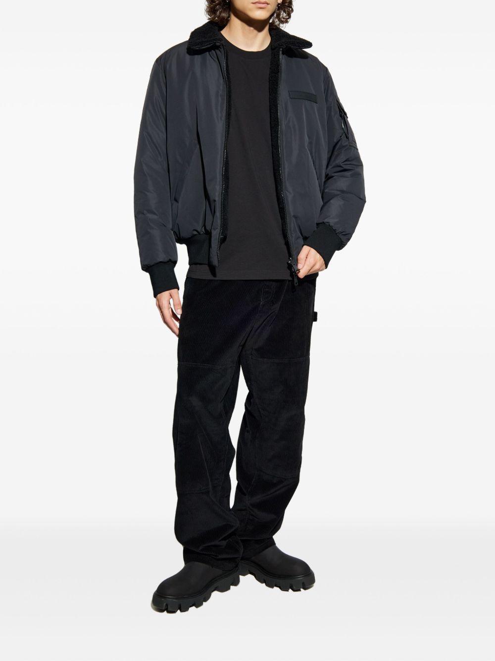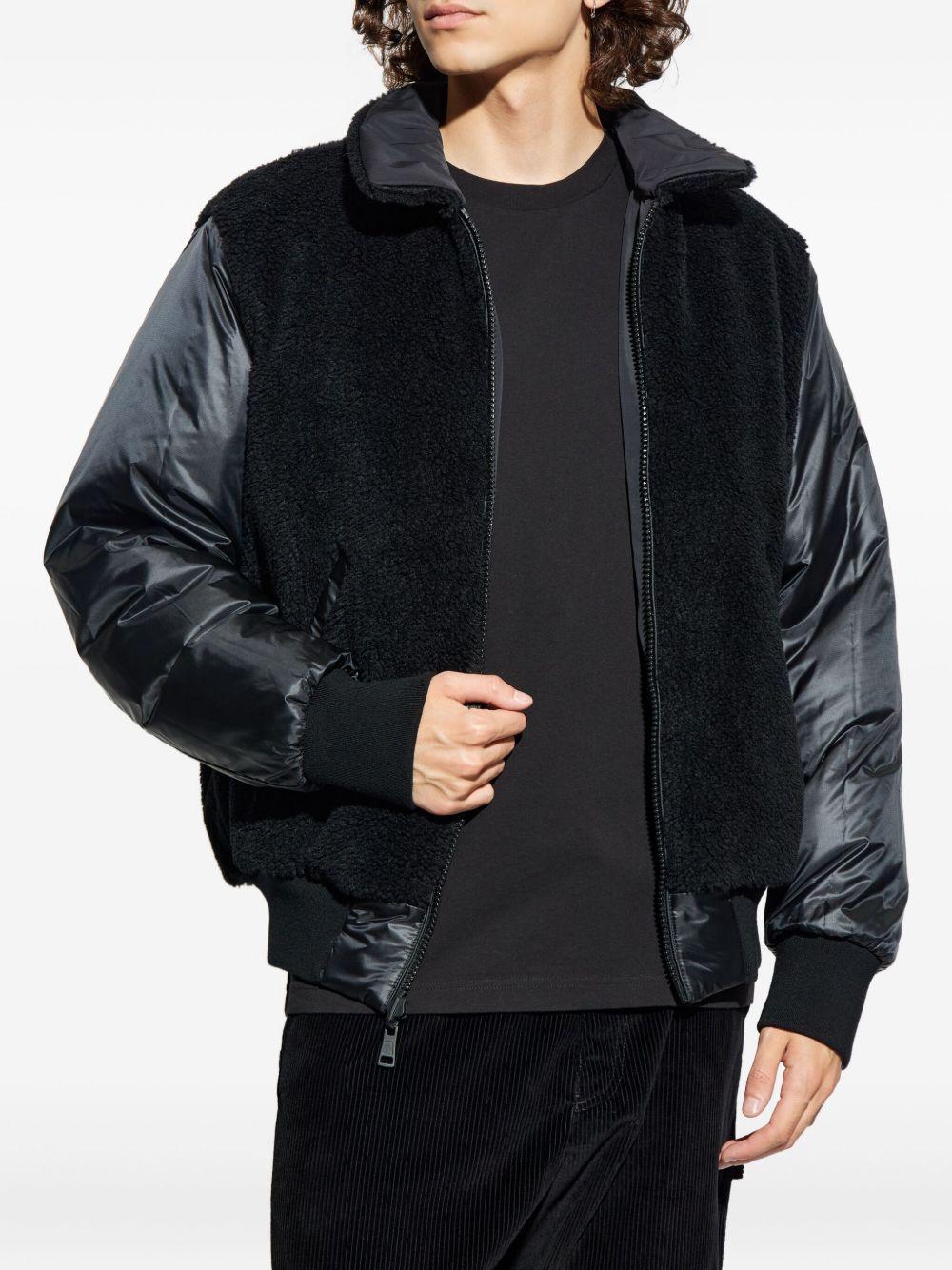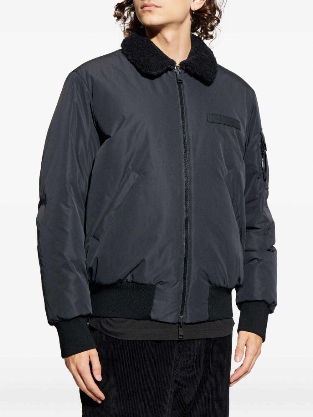Moncler sherpa-collar bomber jacket | Black | black | zip fastening | bomber silhouette | sherpa collar | patch pocket | logo patch | Polyester/Down/Polyester/Wool/Leather | Bomber Jackets | Jackets | Clothing | Men