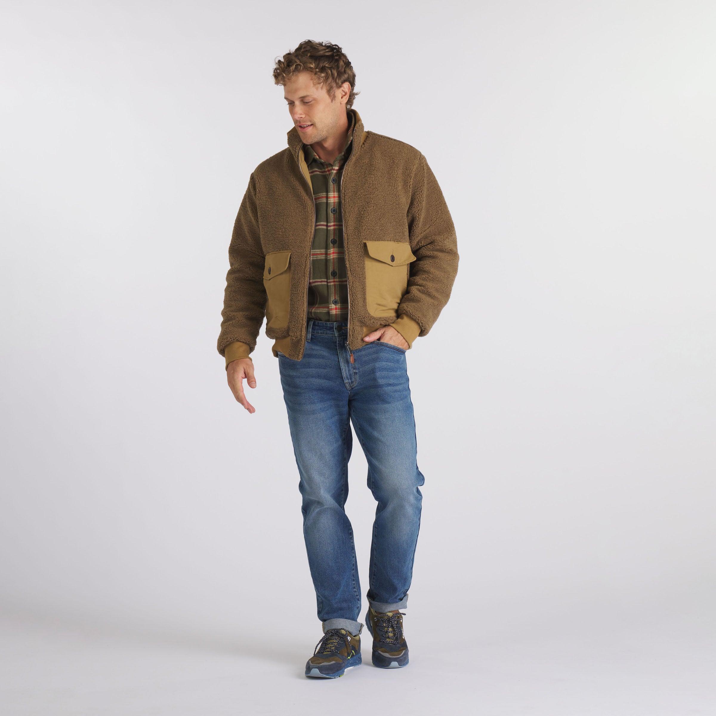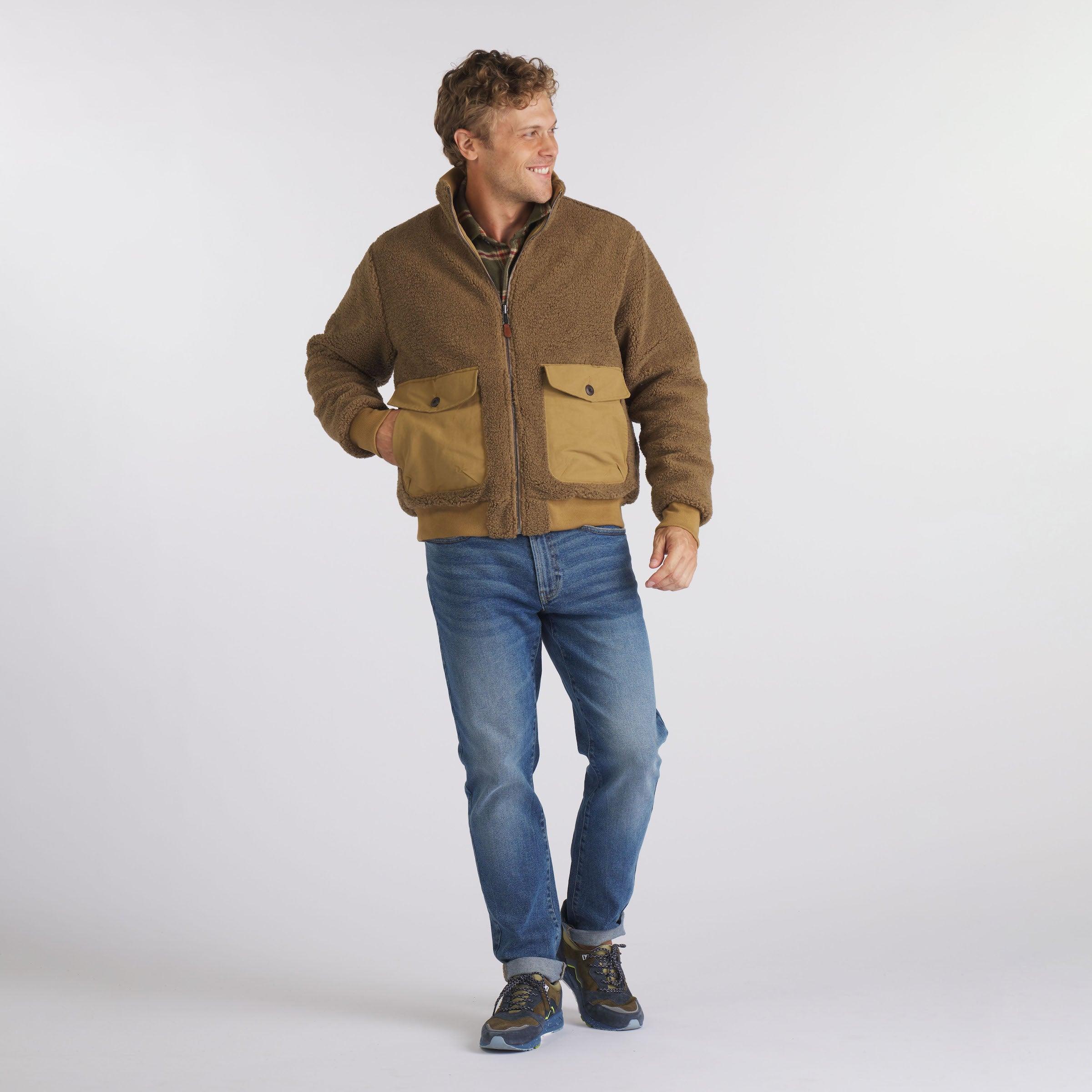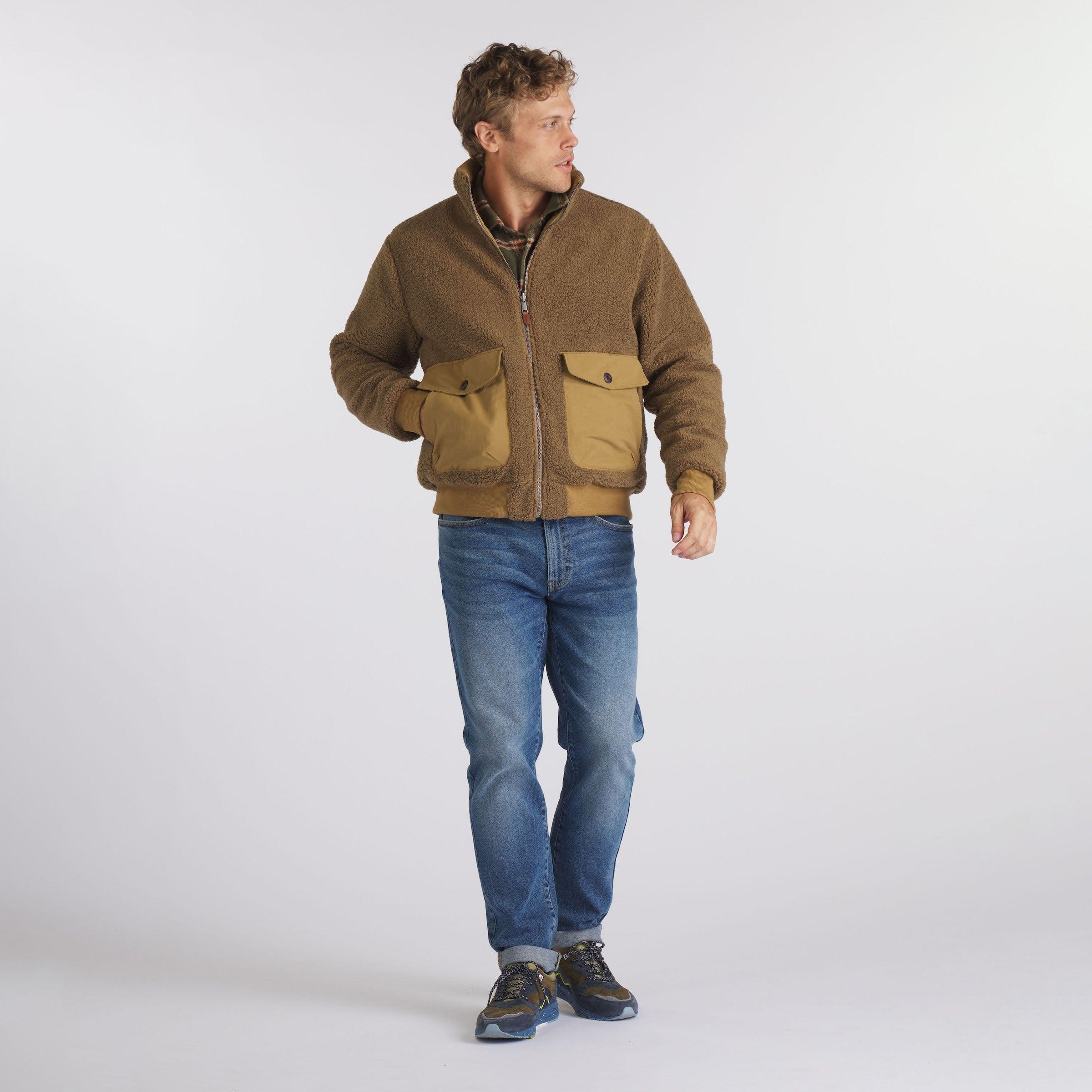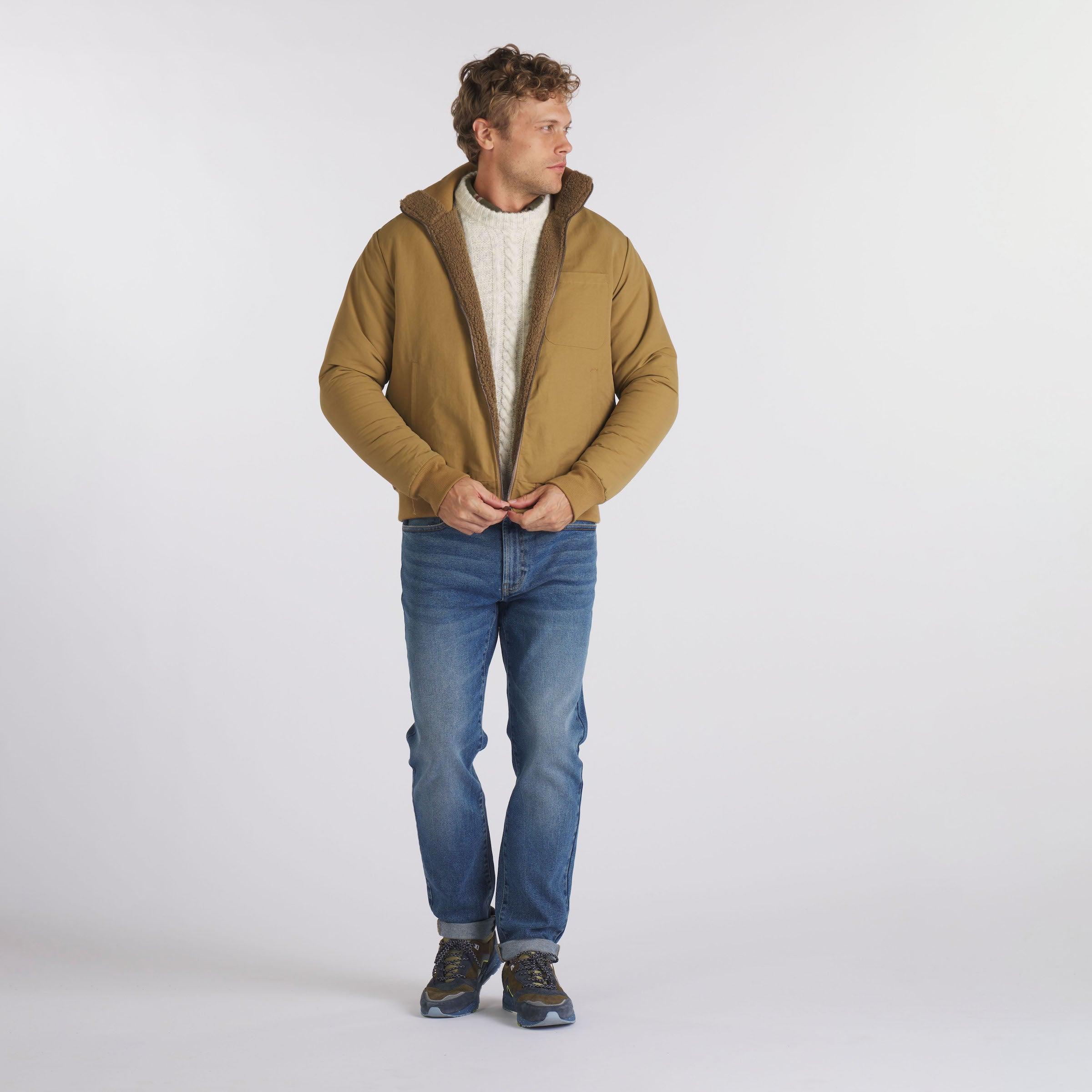 Introducing the Sherpa Reversible Full Zip jacket – it's the ultimate versatile beast. On one side, you've got a tough, water-repellent cotton nylon shell that laughs in the face of rain and wind. Flip it, and you've got that burly sherpa fleece, soft as a bear's hug. This ain't your grandpappy's sheep's wool – it's a plush, untamed beast of a polyester sherpa, so warm it could coax even the harshest of winters into submission. And here's the kicker, it's reversible, a chameleon of style, adapting to the demands of the weather with the prowess of a seasoned woodsman. With a stand-up collar that's double-layered and cuffs that mean business, this jacket doesn't mess around when it comes to keeping you warm and protected. It's got the chops to go over your classic henleys or flannels and enough room to layer it over a chunky sweater when the chill sets in. The Model is also wearing: Collegiate Cable Crew - Antique White, Northwoods Heritage Flannel - Forest Night and Edward Stretch Straight Fit Denim - Vintage Wash Model: Chris is wearing size medium and is 6'. ----Details---- Full front zip closure Shell : 68% Cotton/32% Nylon compact twill Fleece: 100% Polyester "sherpa" Reversible 1x1 rib detail on cuffs and stand up collar Button through flap pockets with top and side entry on fleece side Side entry patch pockets on shell side Imported ----Materials---- 68% Cotton 32% Nylon ----Size & Fit---- Measuring Method: All measurements are in inches and based on a “flat” garment, as shown below. For comparison with one of your existing garments, please lay garment on a flat surface and follow the key measurement points. For chest and neck, if you double the flat measurement, you will get close to the full body measurement. ----Care---- Machine Wash Cold Separately Do Not Soak Before Washing Do Not Bleach Remove Promptly Tumble Dry Low Cool Iron If Necessary