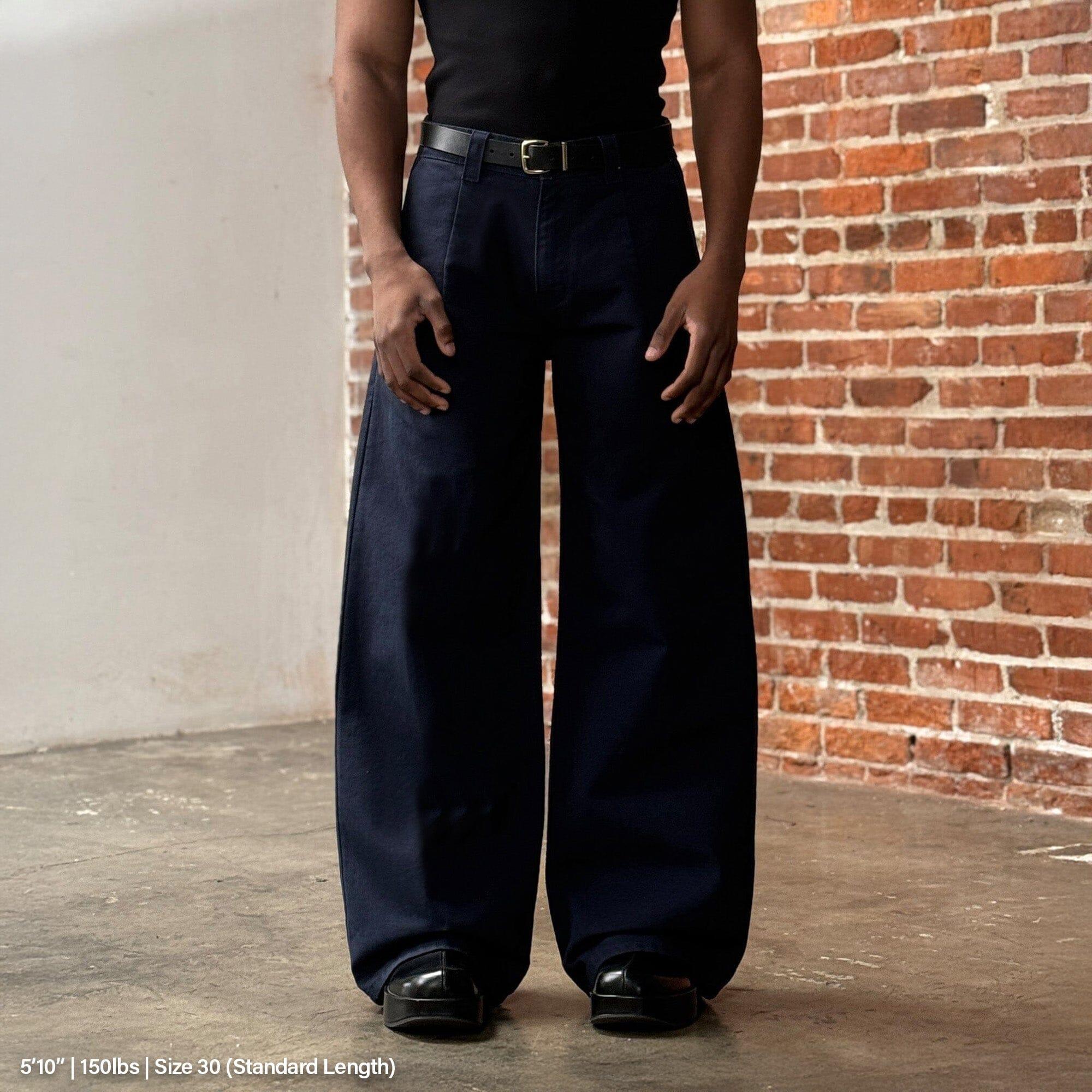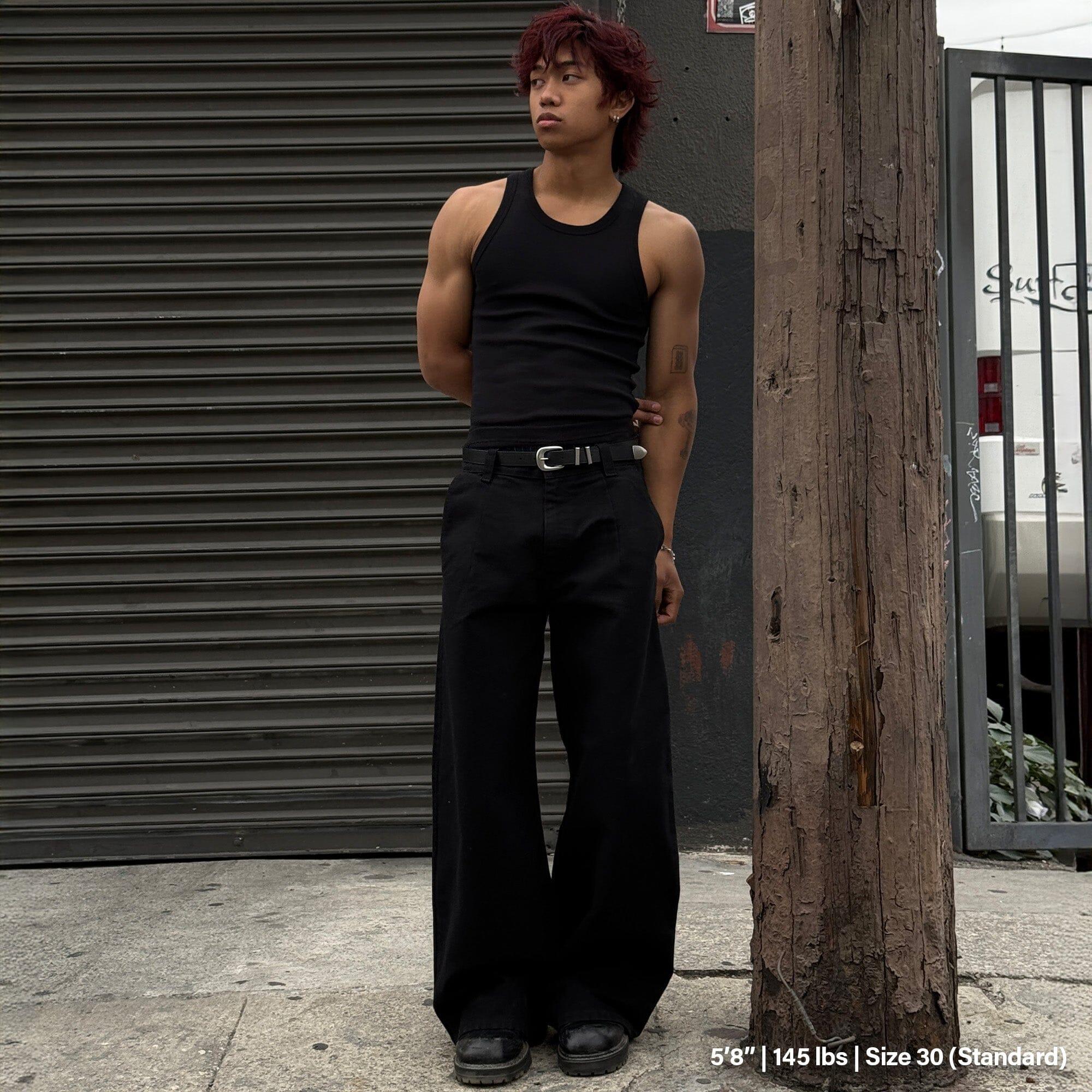 Details: Made in Los Angeles American-Made Workwear Duck Canvas (13 oz, 100% Cotton) | Milliken & Company® Baggy, Wide-Leg Fit with a Subtle Flare Functional Sewn Pleat and Dress Welt-Pockets Pre-Washed and Pre-Shrunk Available in 5 Lengths: Extra-Short (28 inch inseam), Short (30 inch inseam), Standard (32 inch inseam), Tall (34 inch inseam) and Extra-Tall Lengths (36 inch inseam) *Our Shibuya Pleated Pants are true to size. For males, we recommend going with your usual size. For females, go up 1 size to accommodate hips. ______ 13oz Duck Canvas | Milliken & Company® Crafted with intention, our Shibuya Pleated Pants are built from a structured 13oz black duck canvas, woven by Milliken — one of the most respected textile mills in the United States. Known for their precision and durability, Milliken’s canvas is dense yet breathable, offering a crisp hand feel and clean drape that holds its shape over time. The fabric’s weight gives the pants structure, while our signature wide-leg cut and front pleats add movement and ease. Designed for durability, tailored for comfort — these are not your average pants.