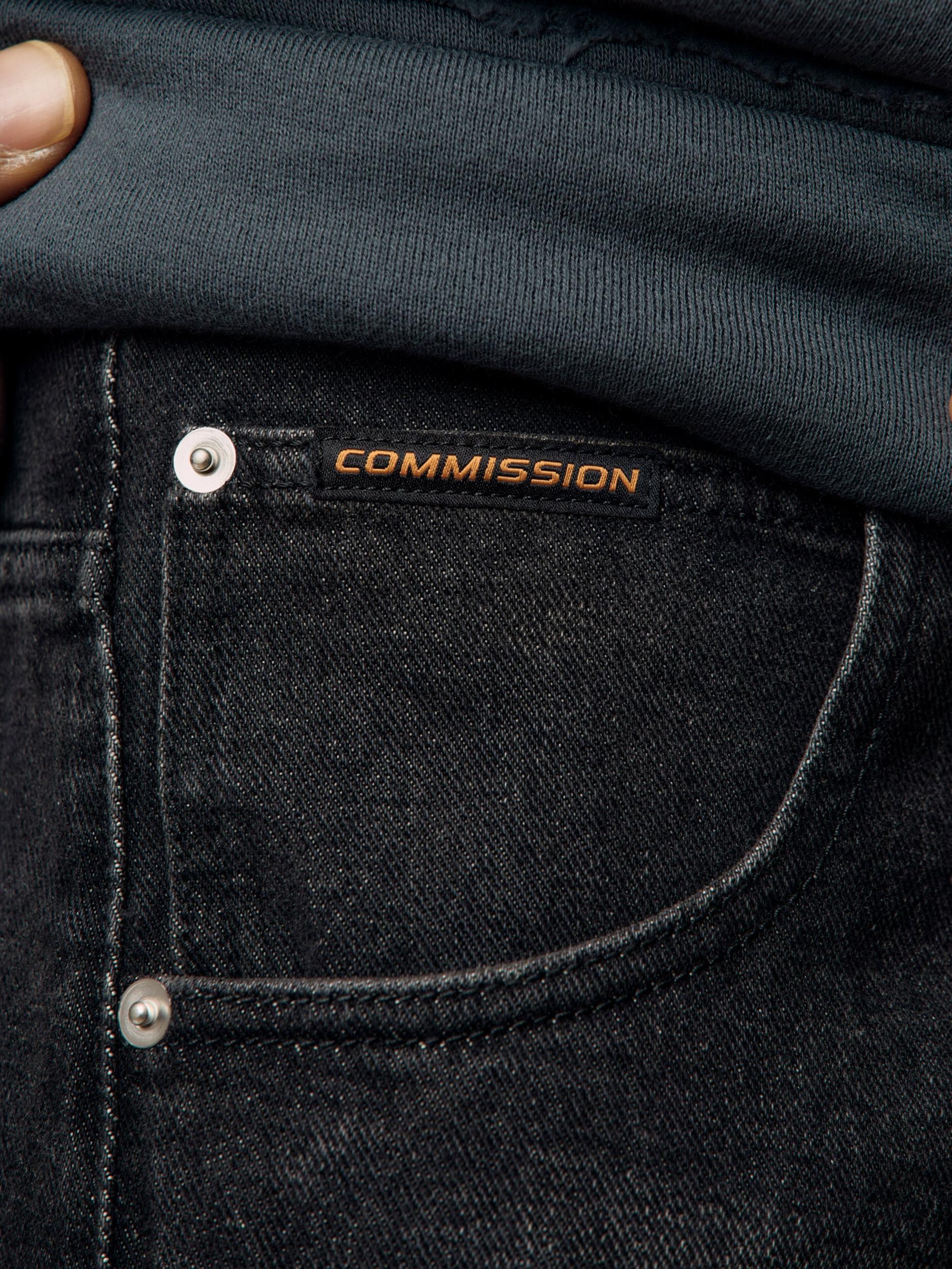 The Commission NYC Shift Denim Jeans is a modern twist on classic denim with unparalleled attention to detail. Crafted from non-stretch denim, these jeans offer a vintage black wash, they feature classic belt loops and five-pocket styling. This also provides a twist seam and provides ample storage while maintaining a classic straight leg profile. 100% Cotton Model is 6'2 wearing a size Medium. Made in Italy