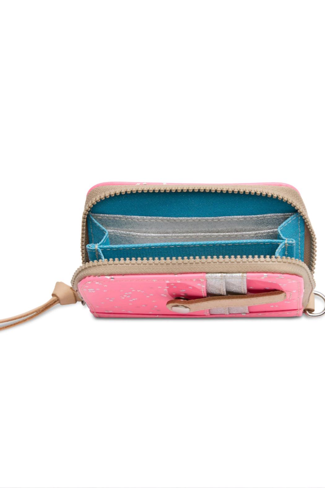 Say hello to Zippy, our newest wallet. This small, but mighty companion has both interior and exterior card slots with a zip closure. Use the D-ring to securely attach Zippy to your bag lanyard or combi wristlet.