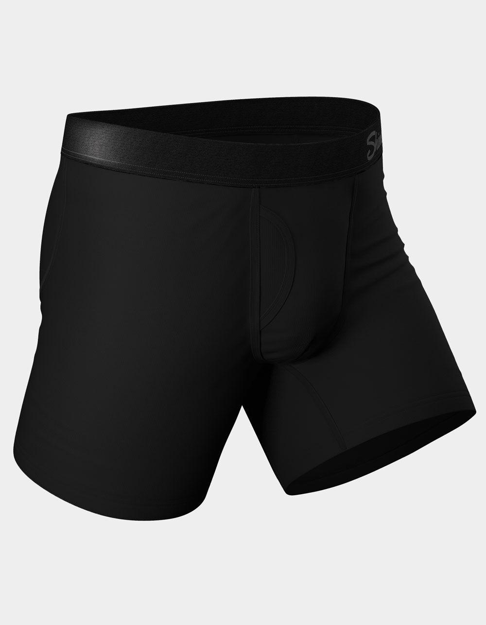 Shinesty The Threat Level Midnight Boxer Briefs. Supportive and enhancing Ball Hammock® technology pouch keeps the goods off your legs and out of the grundel. Moisture wicking and breathable so you stay fresh all day. Anti-bunching, no-itch stitching, 4-way stretch. 6” inseam. Approximate outseam: 11". 95% Modal 5% Spandex. Machine wash. Imported. Sizes: S: 28-31 M: 32-35 L: 36-39 XL: 40-44