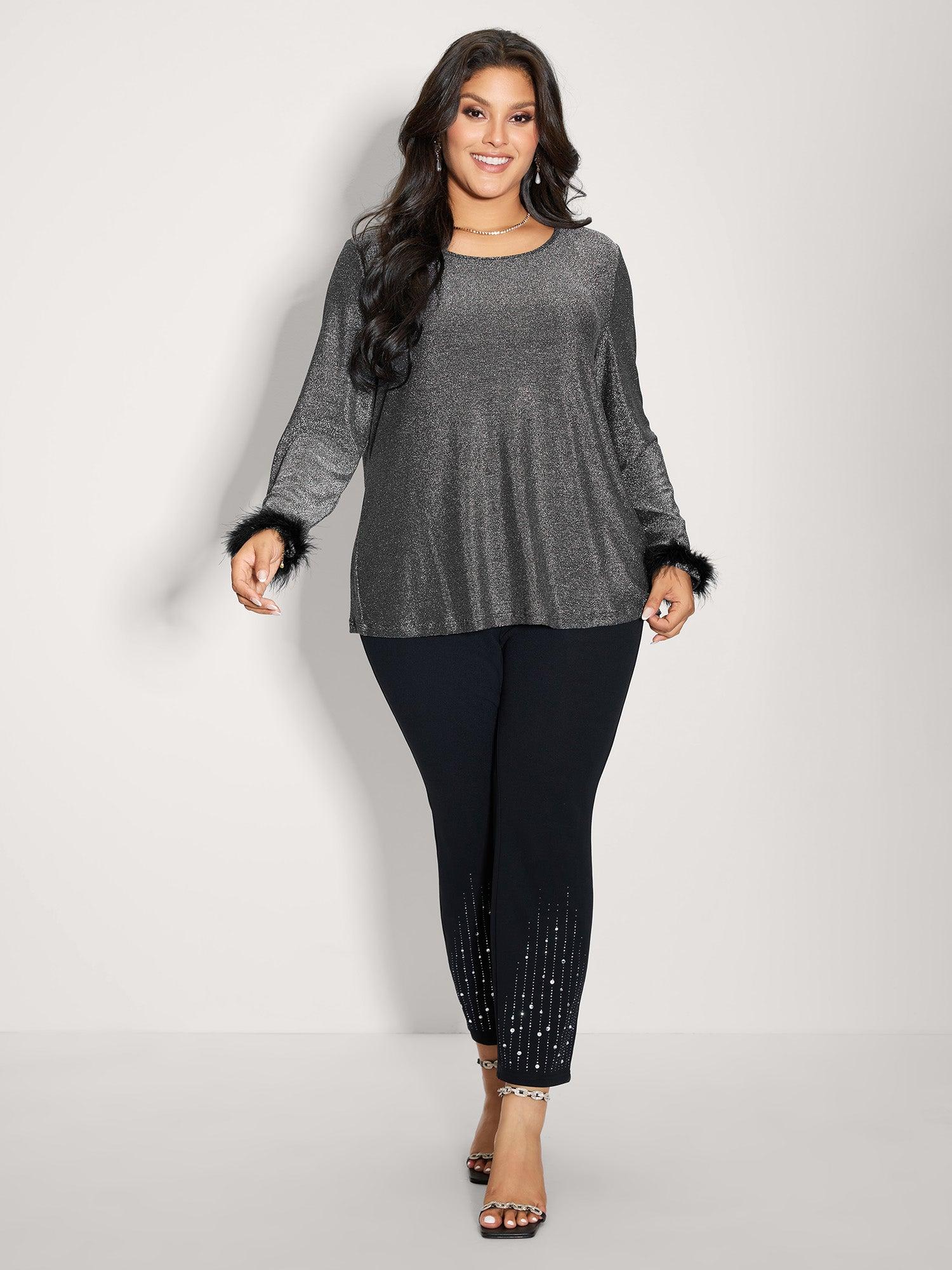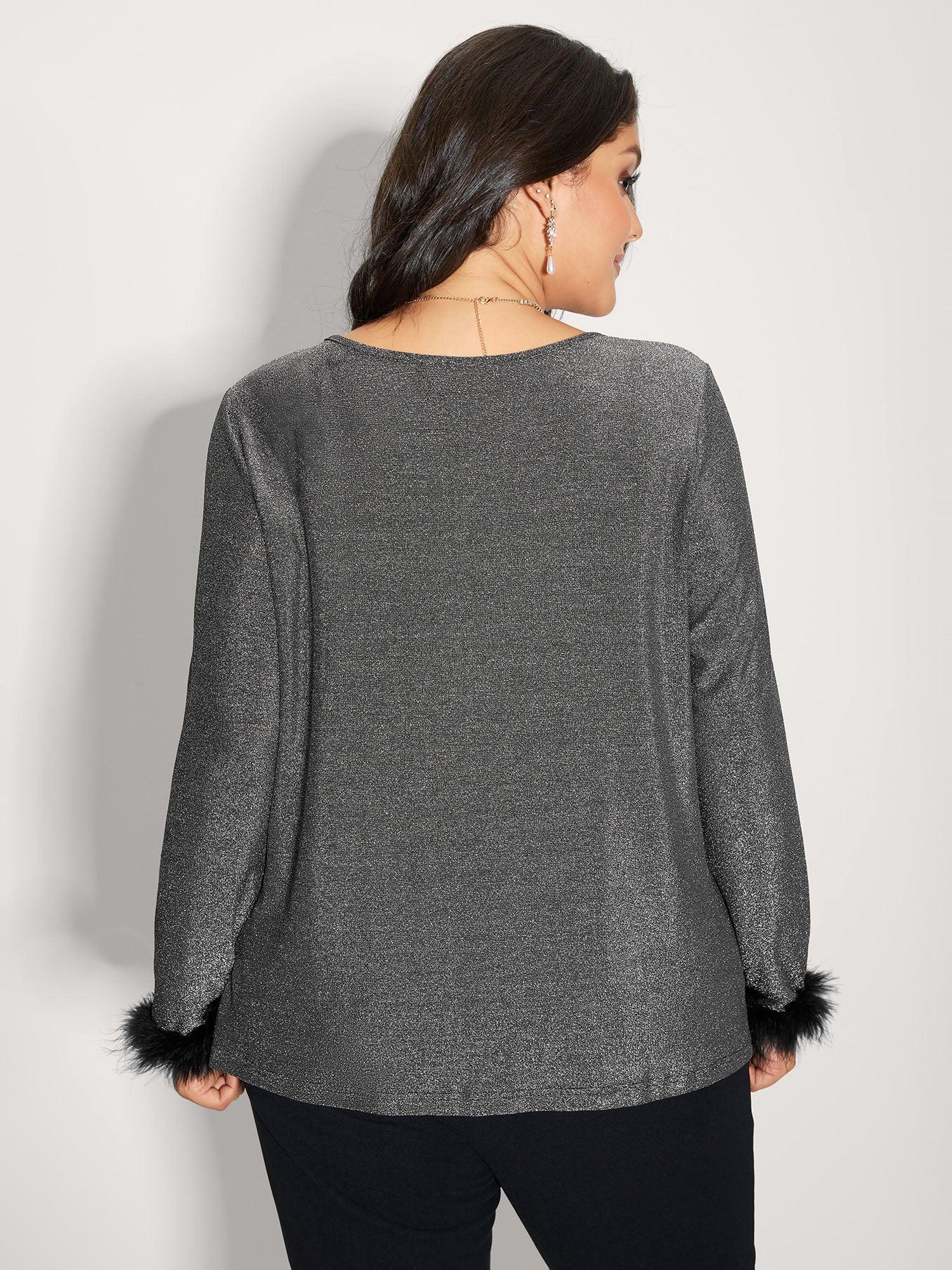 Shiny Silk Fur Cuffs Blouse Female
