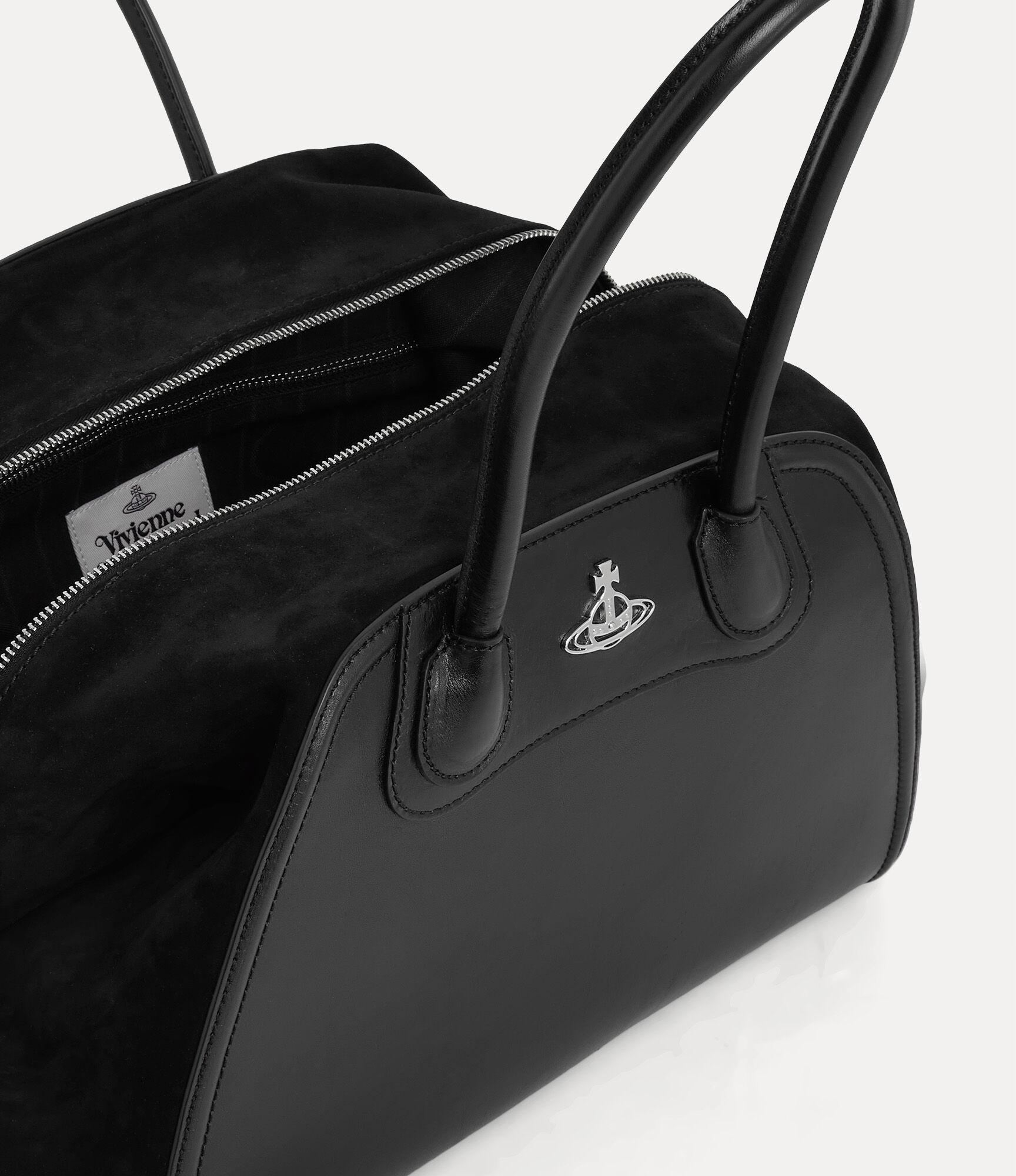 The Shirley holdall draws inspiration from the iconic Yasmine silhouette and the laid-back elegance of a picnic blanket. Crafted from smooth leather with suede gussets, its width can be adjusted using the discreet popper fastenings. The piece features the house’s signature orb emblem on the front, which represents tradition, encircled by Saturn’s rings, symbolising the future.