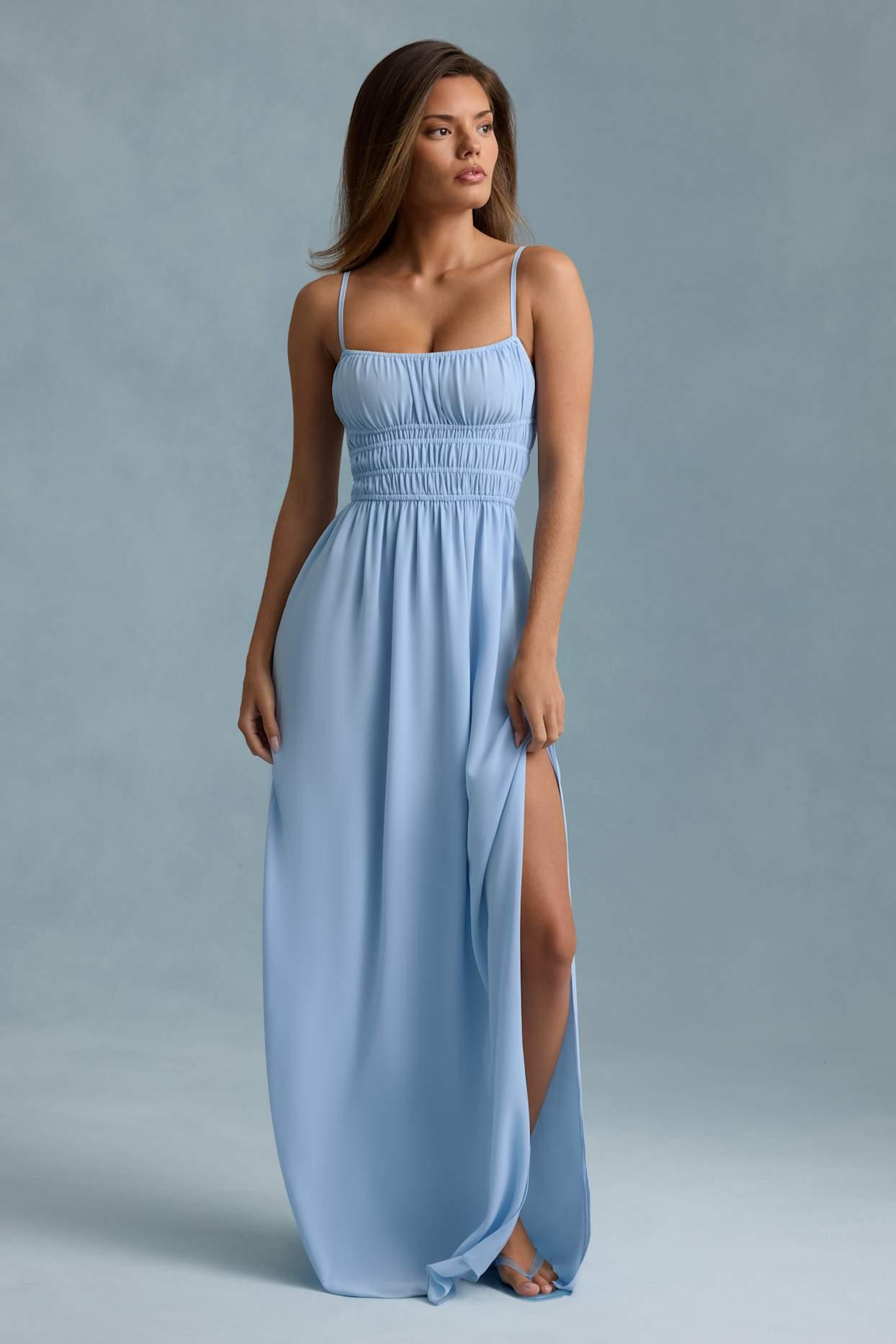 Shirred Camisole Maxi Dress in Sky Blue