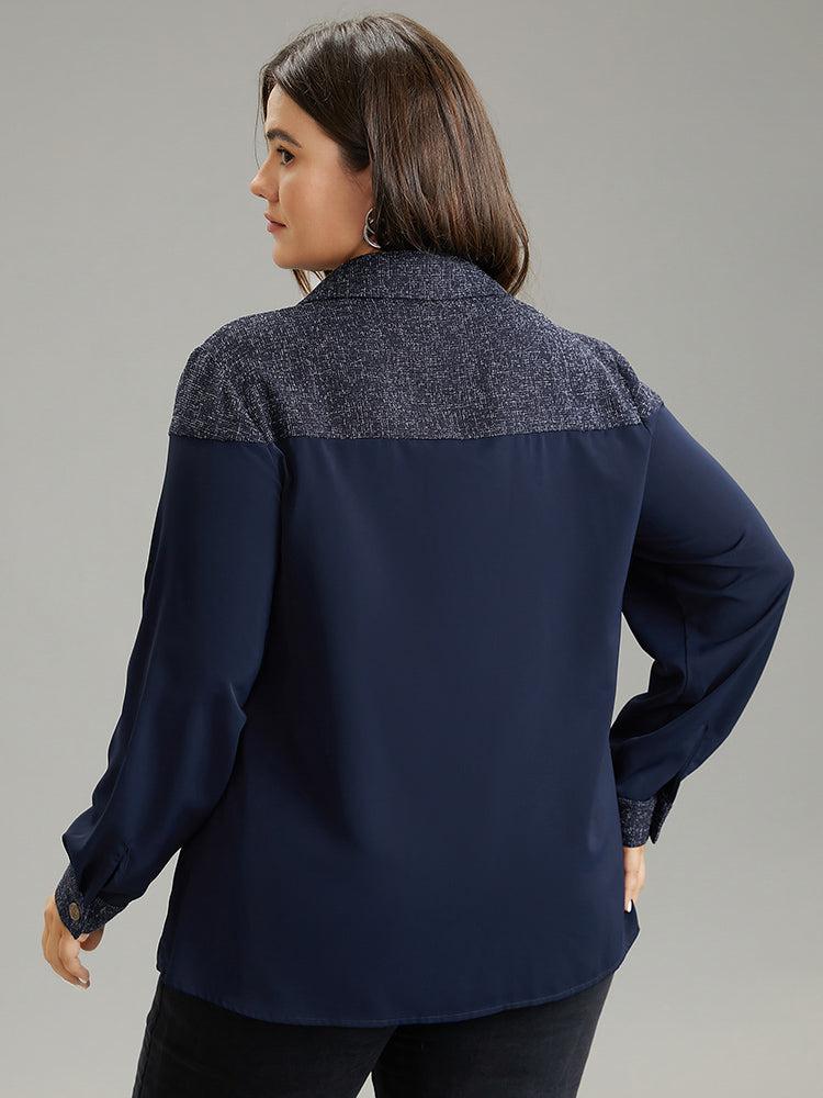 Shop Shirt Collar Patchwork Textured Buckle Up Blouse now and redefine your style with confidence at BloomChic. Tailored for mid and plus-size women. This trendy Tops Women, sizes 10-30. Season:Winter;Color:Indigo;Style:Office;Neckline:Shirt collar;Sleeve Type:Regular Sleeve;Pattern Type:Patchwork;Details:Button, Patchwork, Texture;Pocket:No-pocket