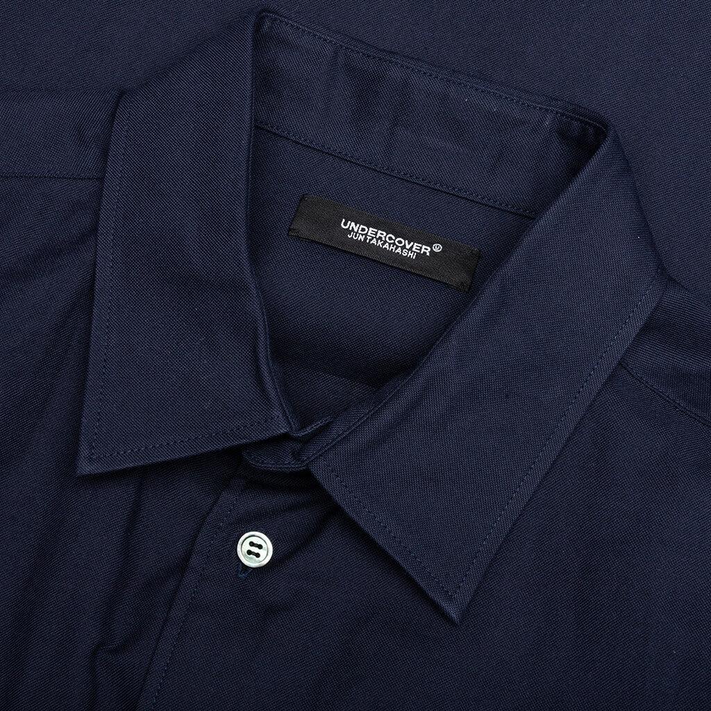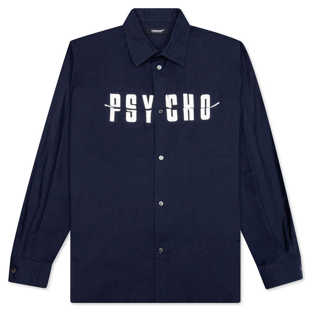 Elevate your everyday apparel rotation with the Undercover Psycho Shirt. Composed of cotton, the shirt incorporates a button closure and barrel cuffs. A pointed collar is seen, while the screen-printed text at the front and graphics at the rear complete the look. 100% cotton Button closure Screen-printed text Screen-printed graphics Barrel cuffs Style No: UC2B4401-NVY