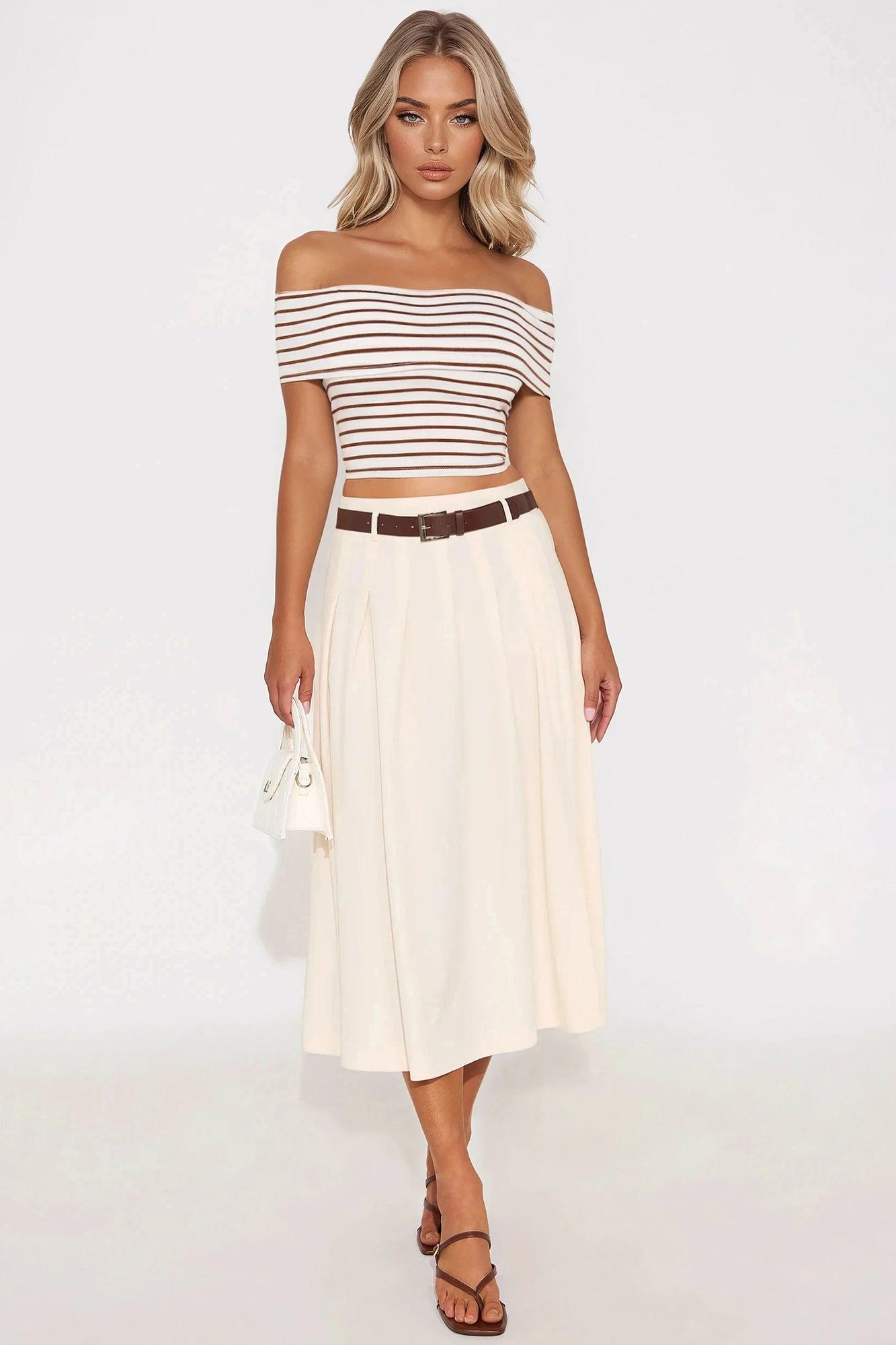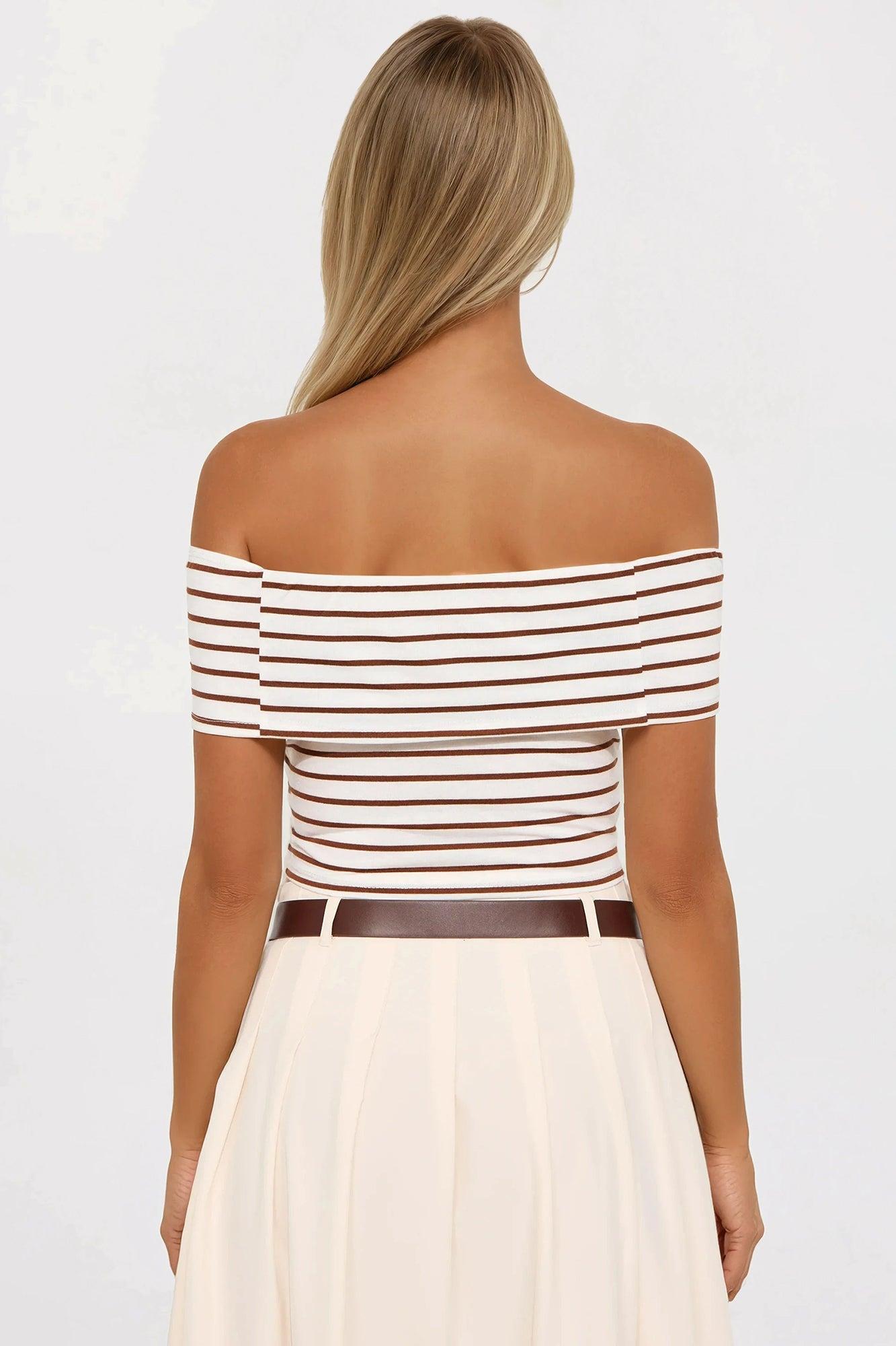Shoreline Off Shoulder Cropped Top - Brown/combo