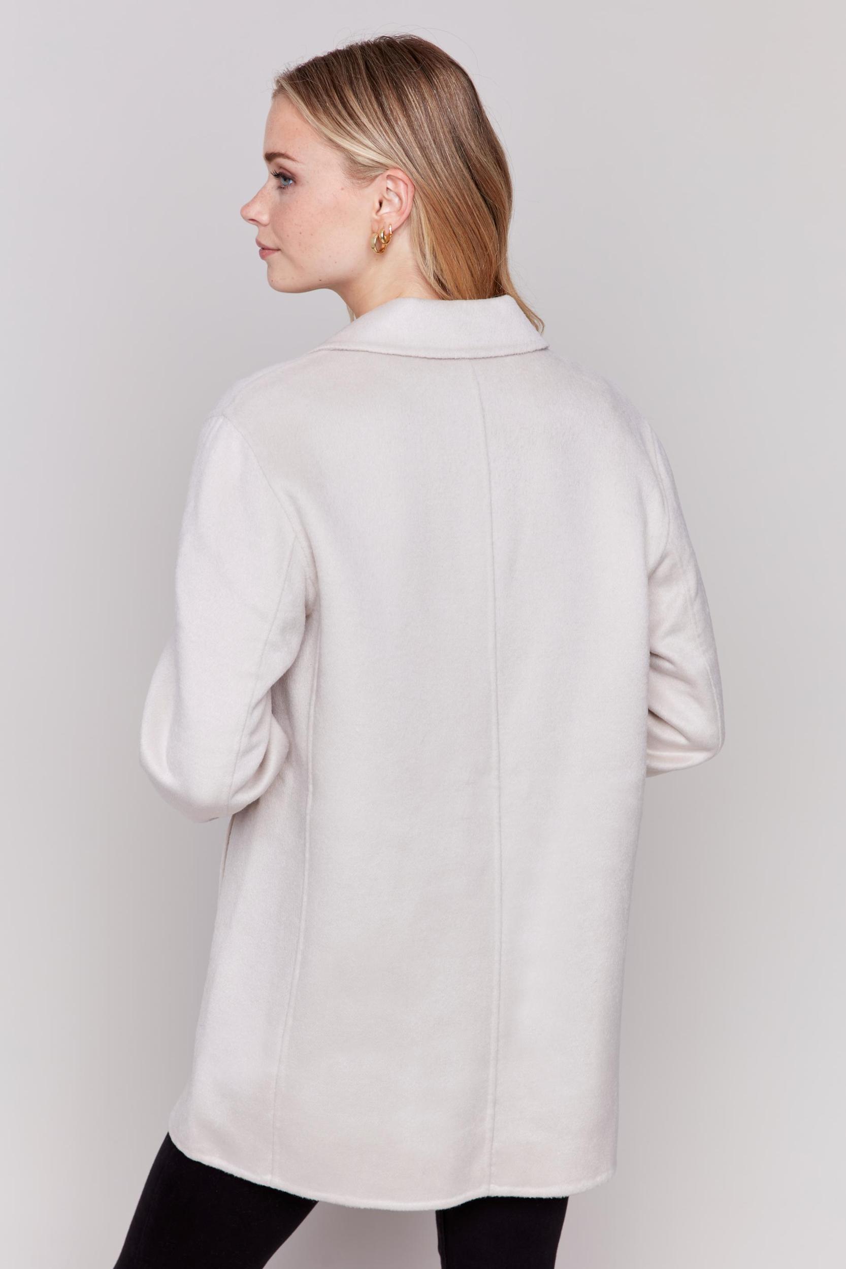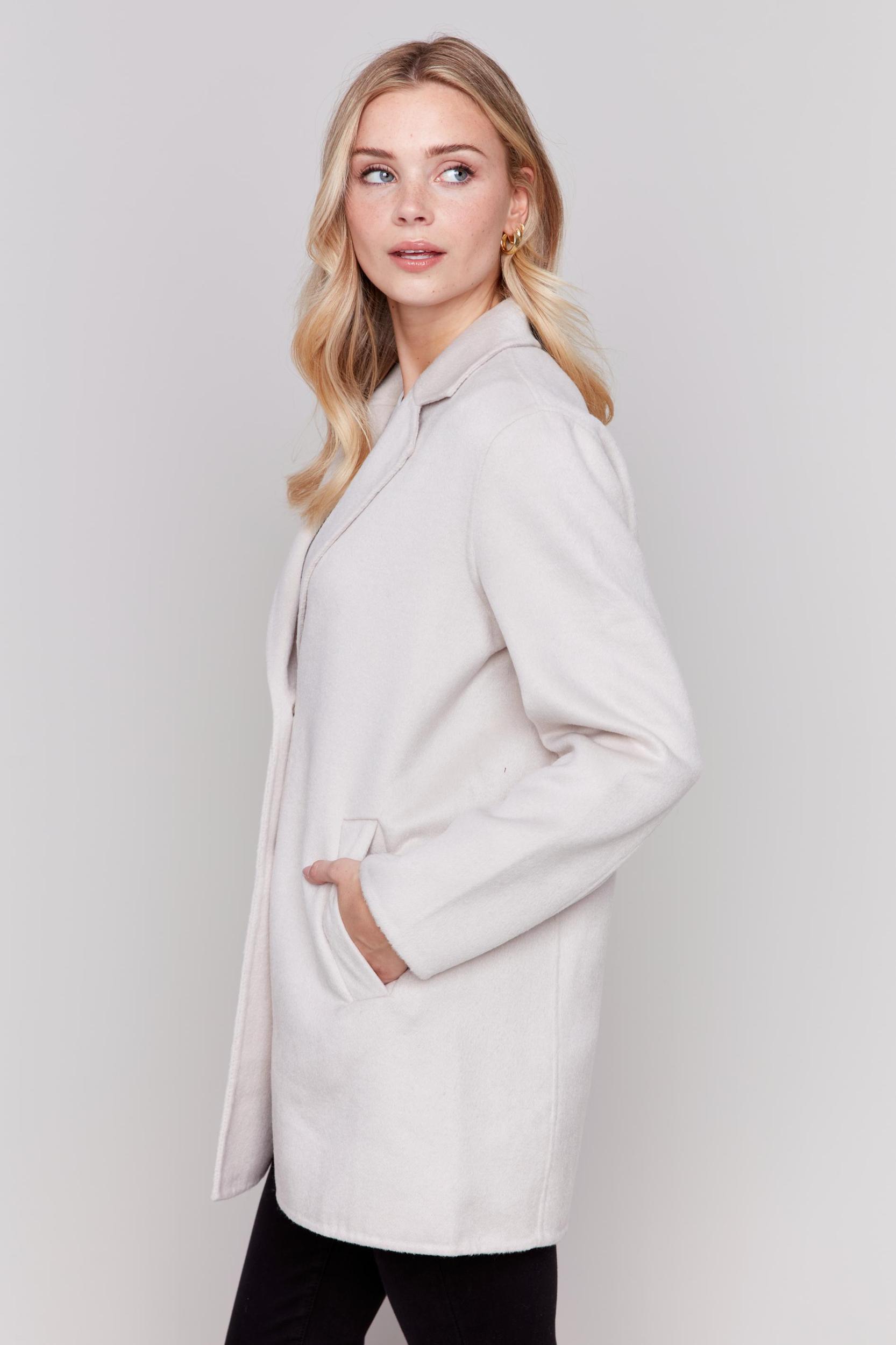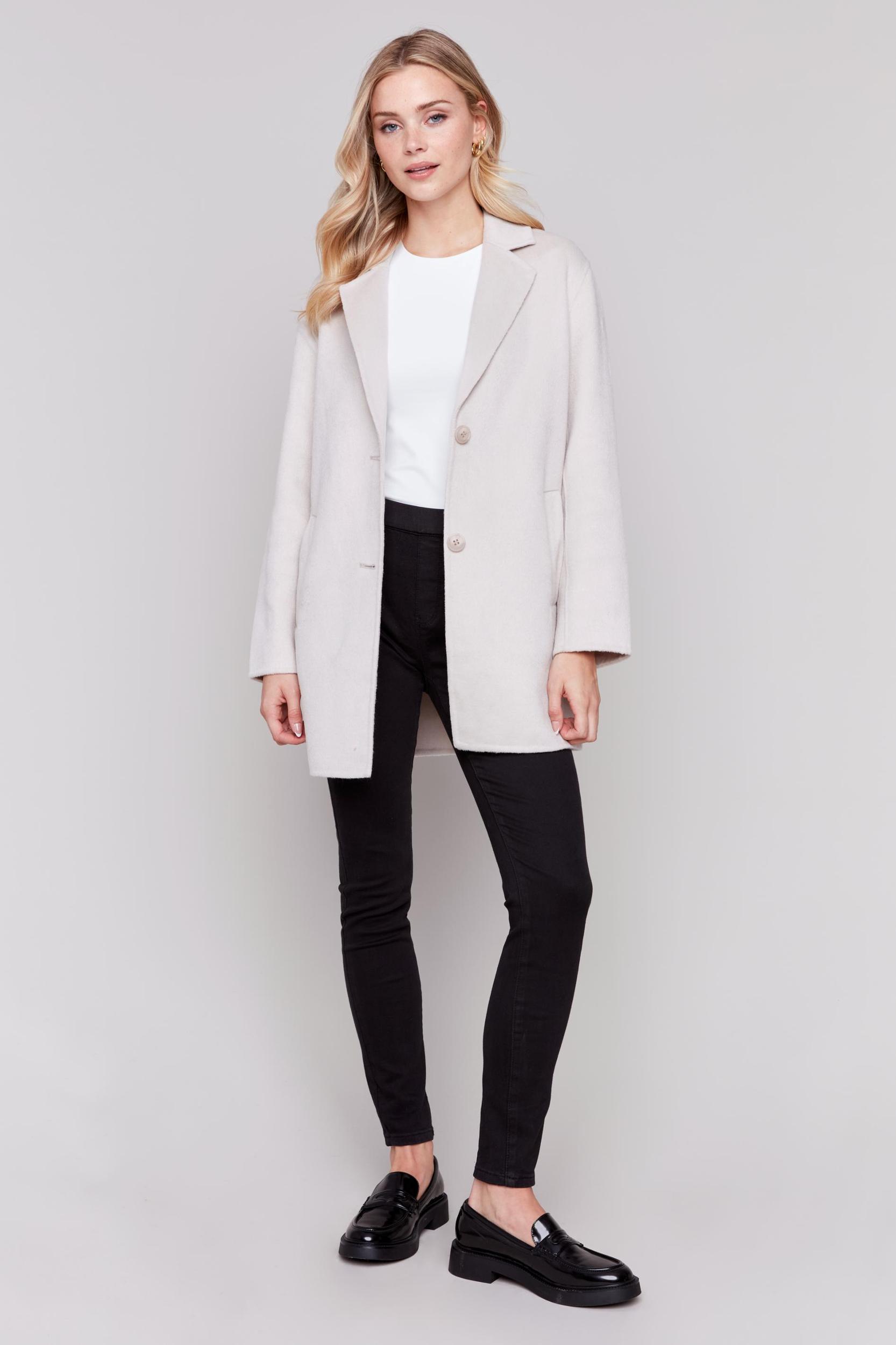 Step out in style with the Charlie B Short Double Face Coat in Light Almond. This chic coat features a luxurious double face fabric that offers a smooth, refined look and exceptional warmth. Its short cut provides a contemporary silhouette, while the neutral light almond color adds a touch of sophistication to any outf