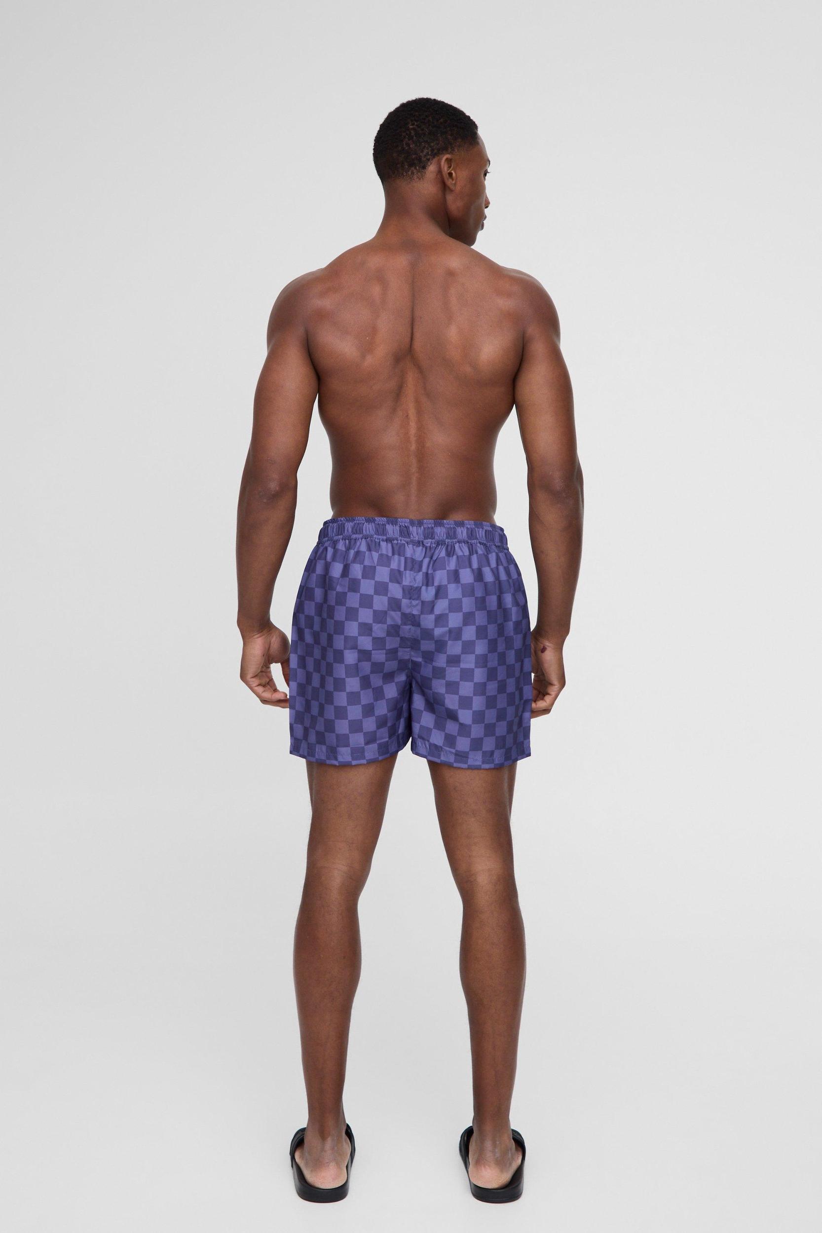 Short Length Checkerboard Swim Trunks | boohooMAN USA
