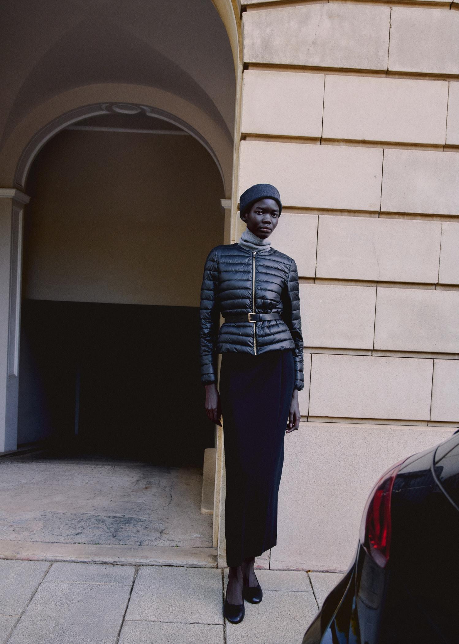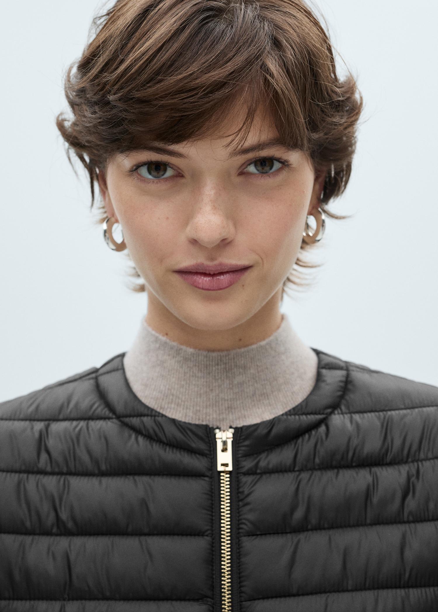 Water-repellent: The durable finish of this garment protects against light rain, repelling contact with water and raindrops. Straight design. Quilted design. Turtleneck. Long sleeve with elastic cuffs. Zipper pockets on both sides. Front zipper closure. Inner lining. Plus Size Available. The model is 1.78 tall and is wearing a size 36. Side length 15.83 in. Back length 25.12 in