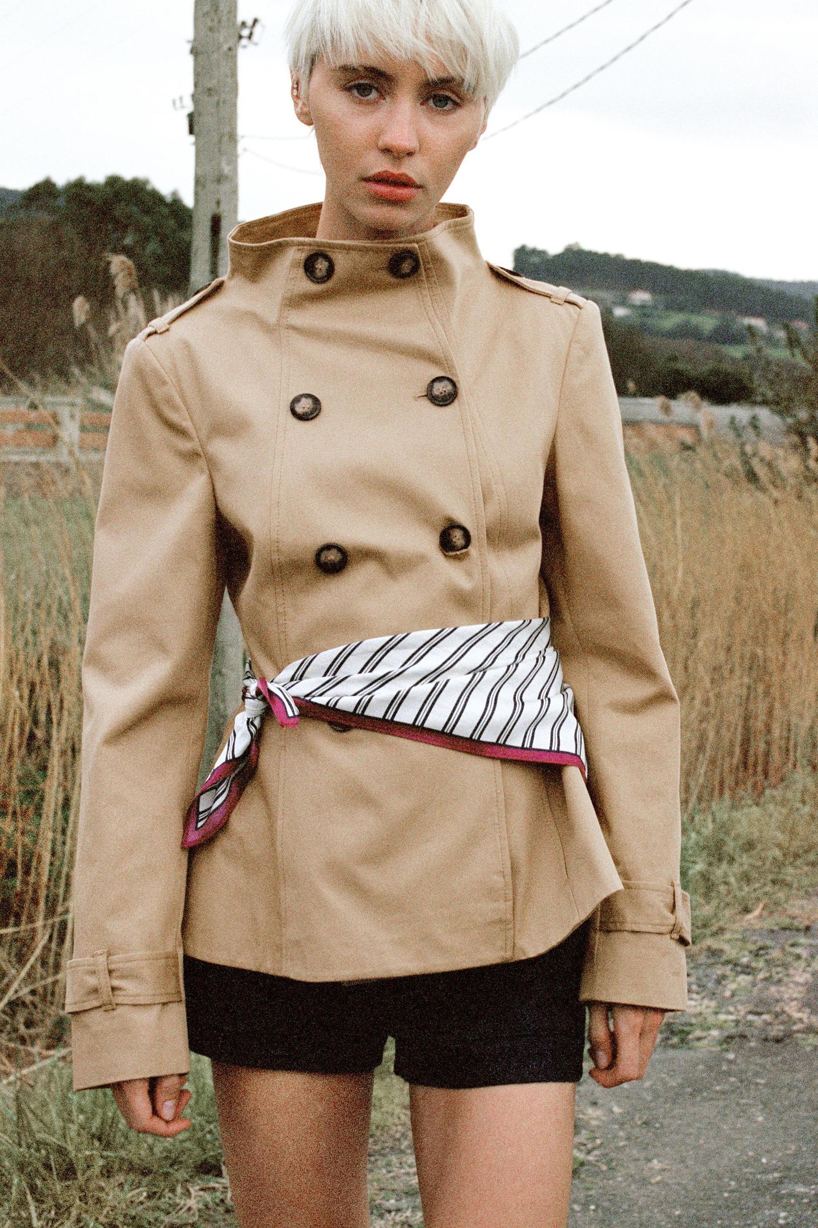 SHORT PRINTED SCARF TRENCH COAT