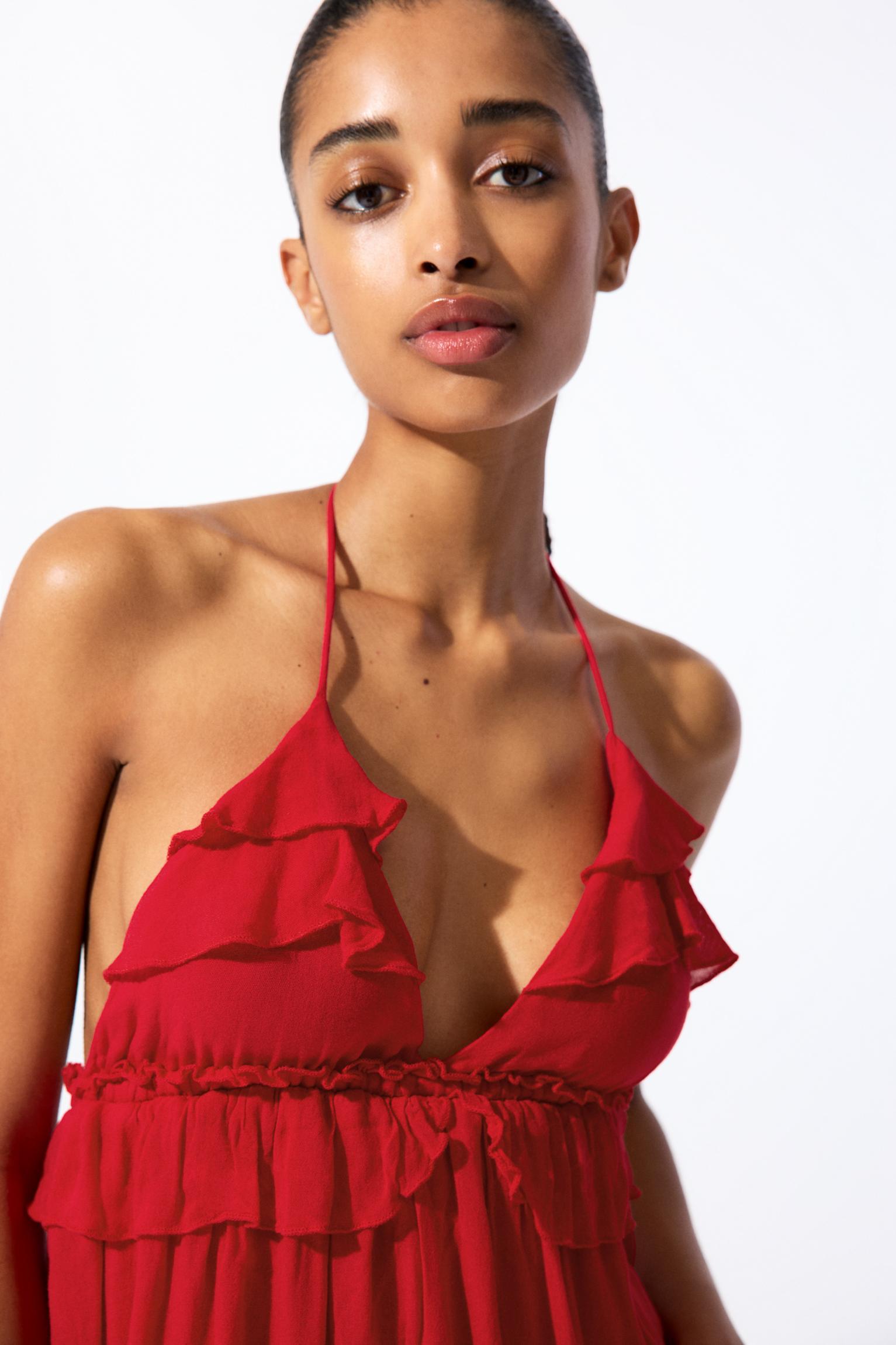 Short red ruffled dress