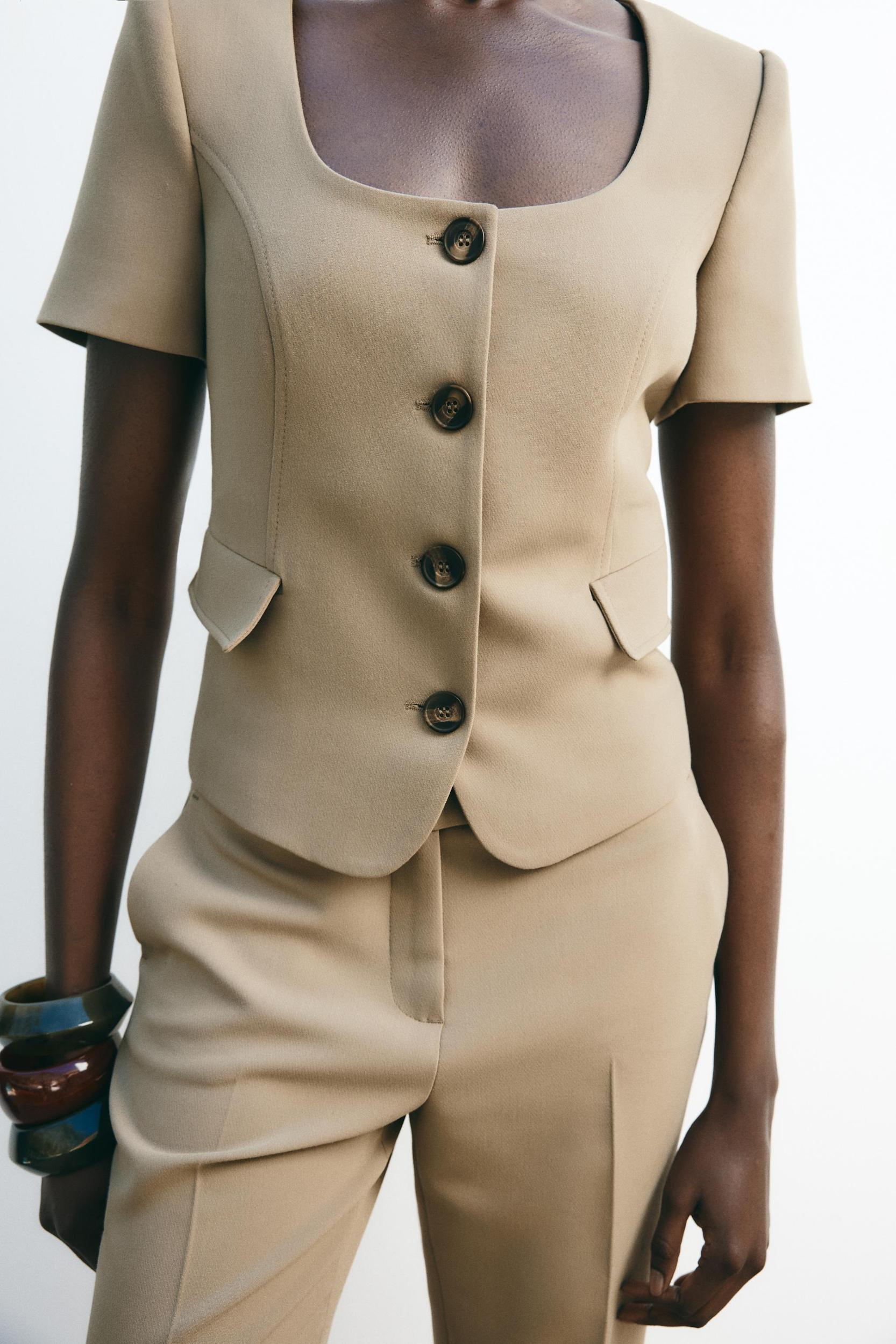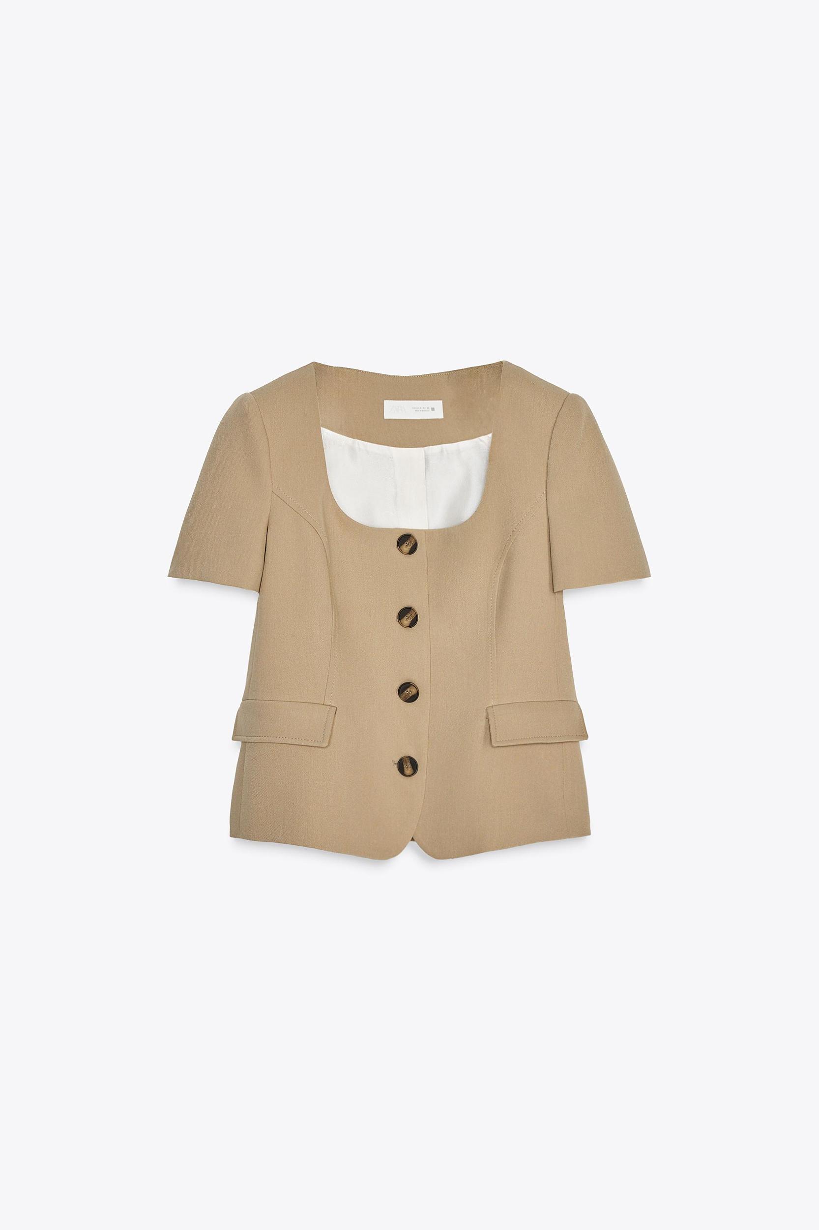 SHORT SLEEVE BLAZER WITH SHOULDER PADS