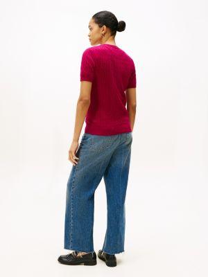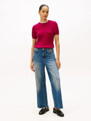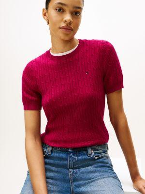 Tommy Hilfiger women's sweater. Made from premium cotton in a flattering, easy fit, our lightweight, short-sleeve cable knit sweater is a soft, comfortable layer.