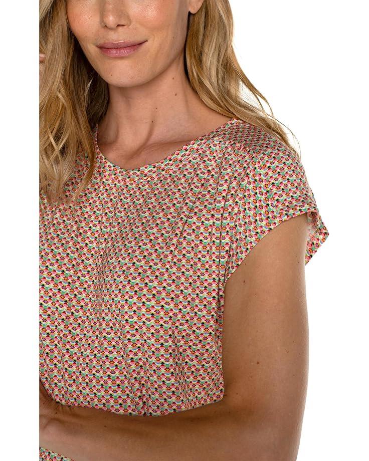 Crafted in a premium lightweight jersey knit fabric, the Liverpool™ Los Angeles Boat Neck Dolman Jersey Knit Top with Shoulder Pleats exudes a sophisticated and effortless style. The pull-on style top features a flattering boxy silhouette, crew neckline, short sleeves with refined shoulder sleeves, and an attractive complex multi-geo pattern.