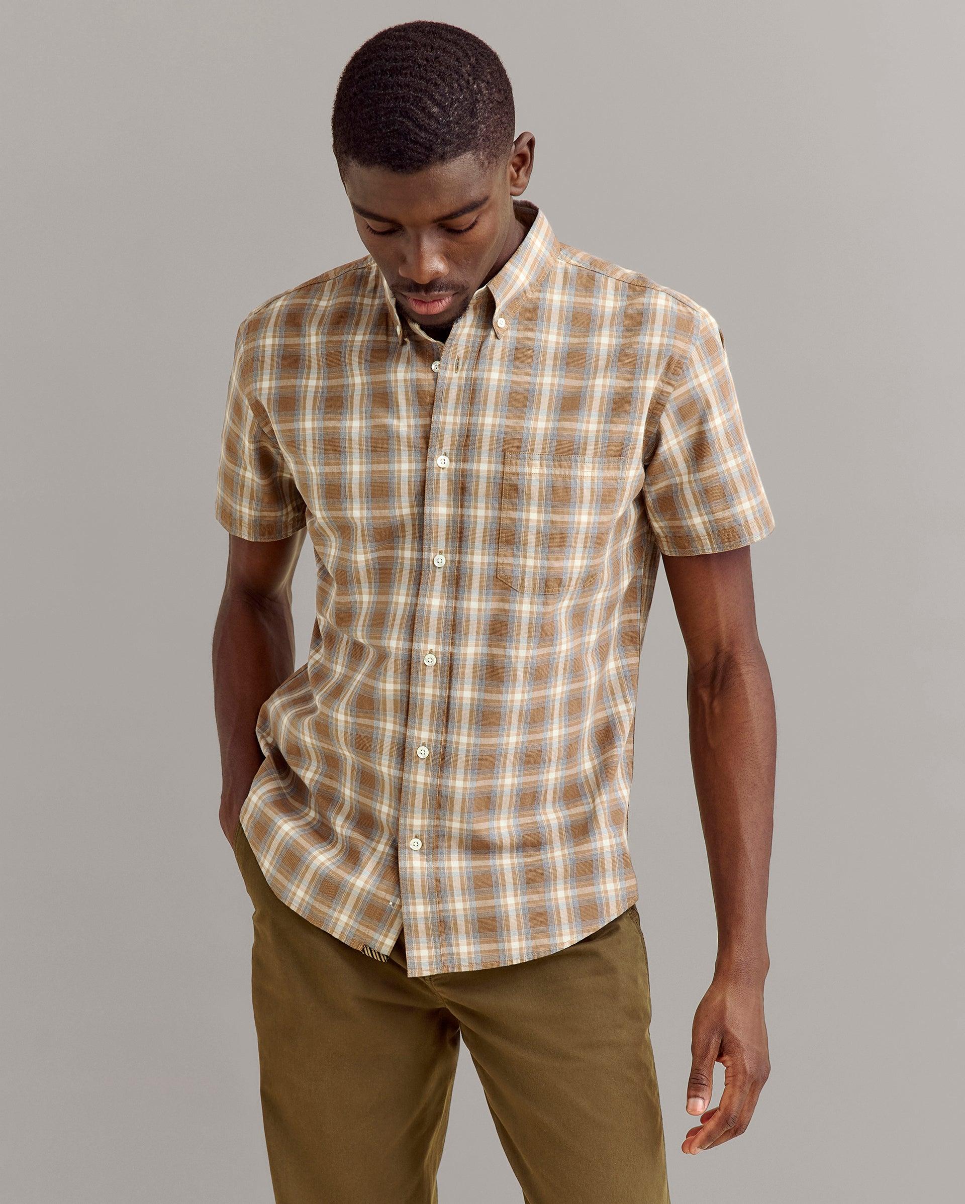 Short Sleeve Melange Plaid Tuscumbia Shirt Button Down -