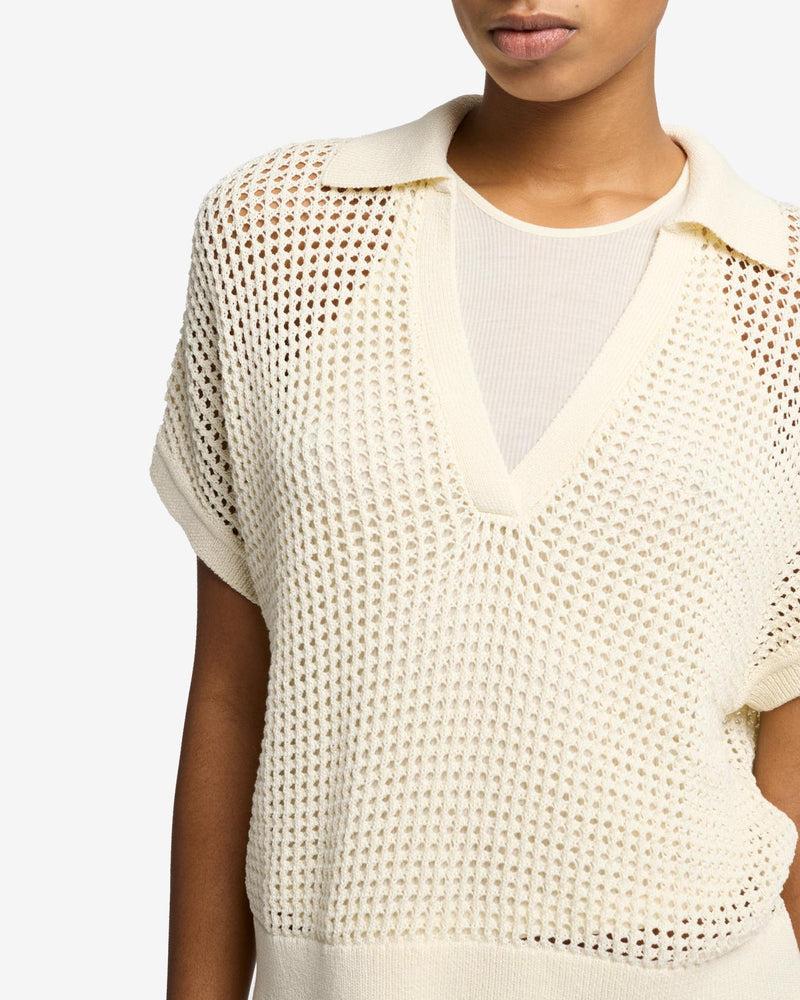 Fits like: A short-sleeve, relaxed-fit polo sweater with a classic collar. Feels like: Soft, breathable, and midweight that's perfect for transitional weather. The Details: Natural oatmeal shade Collared neckline with button placket Short sleeves Ribbed hem and cuffs for structure