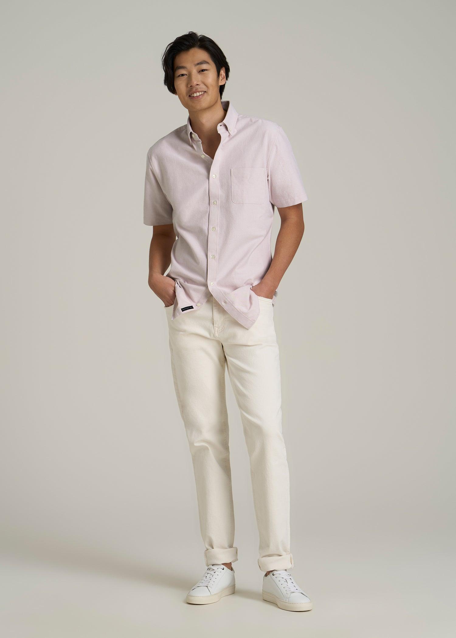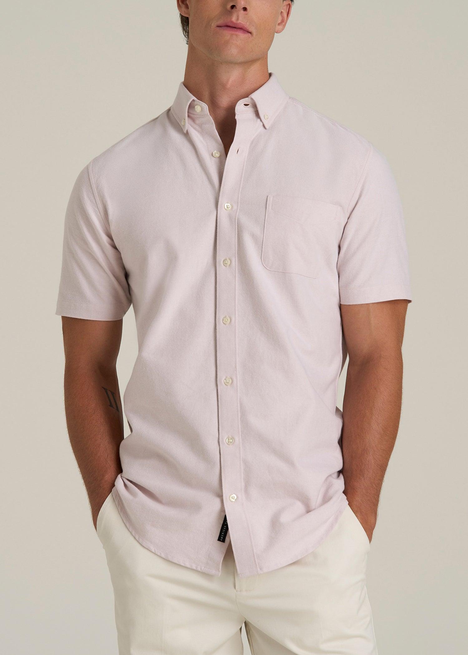 Short Sleeve Oxford Button Shirt For Tall Men in Burnished Lilac Male