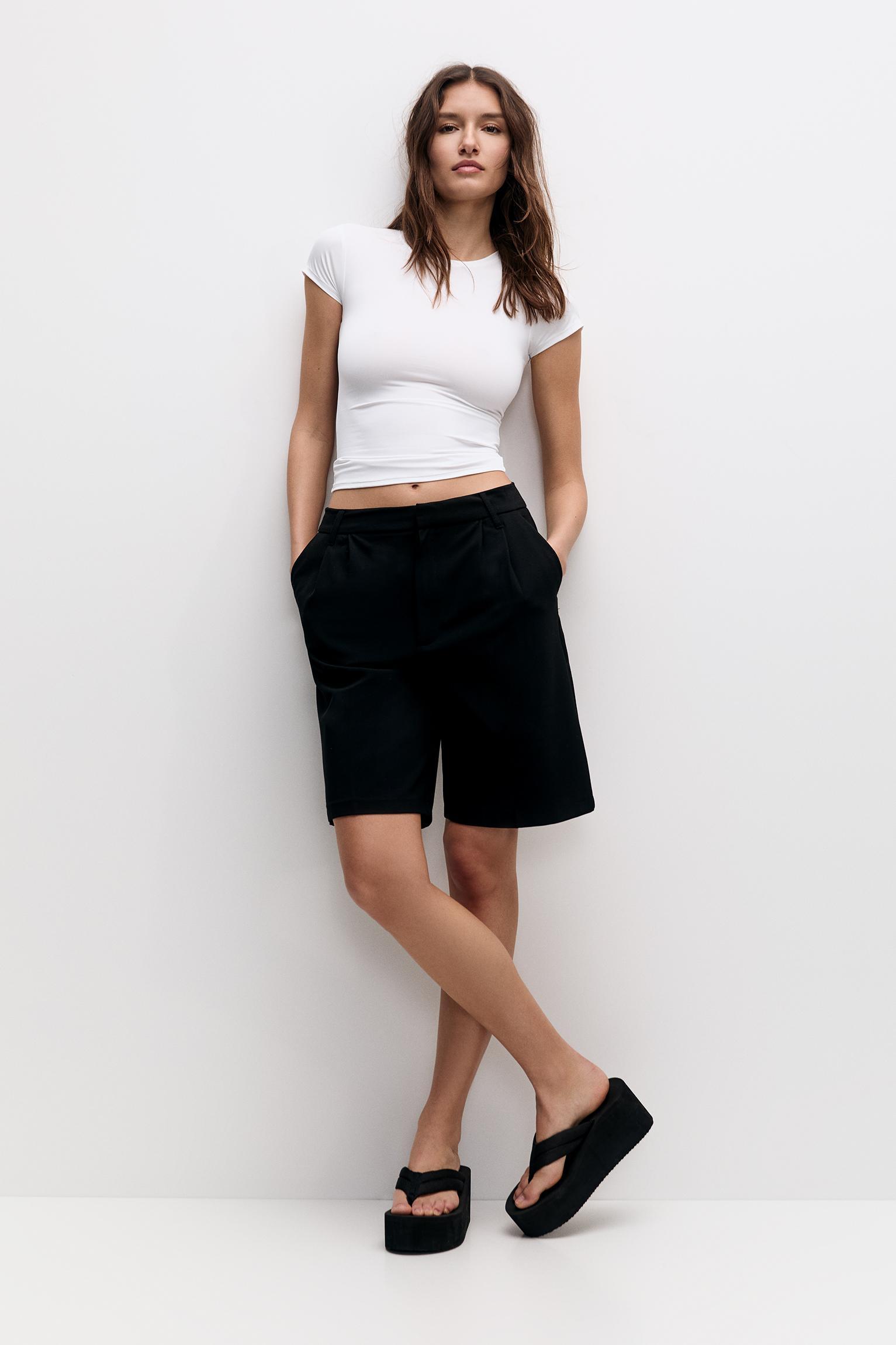 Fitted polyamide T-shirt with short sleeves and a crew neck.