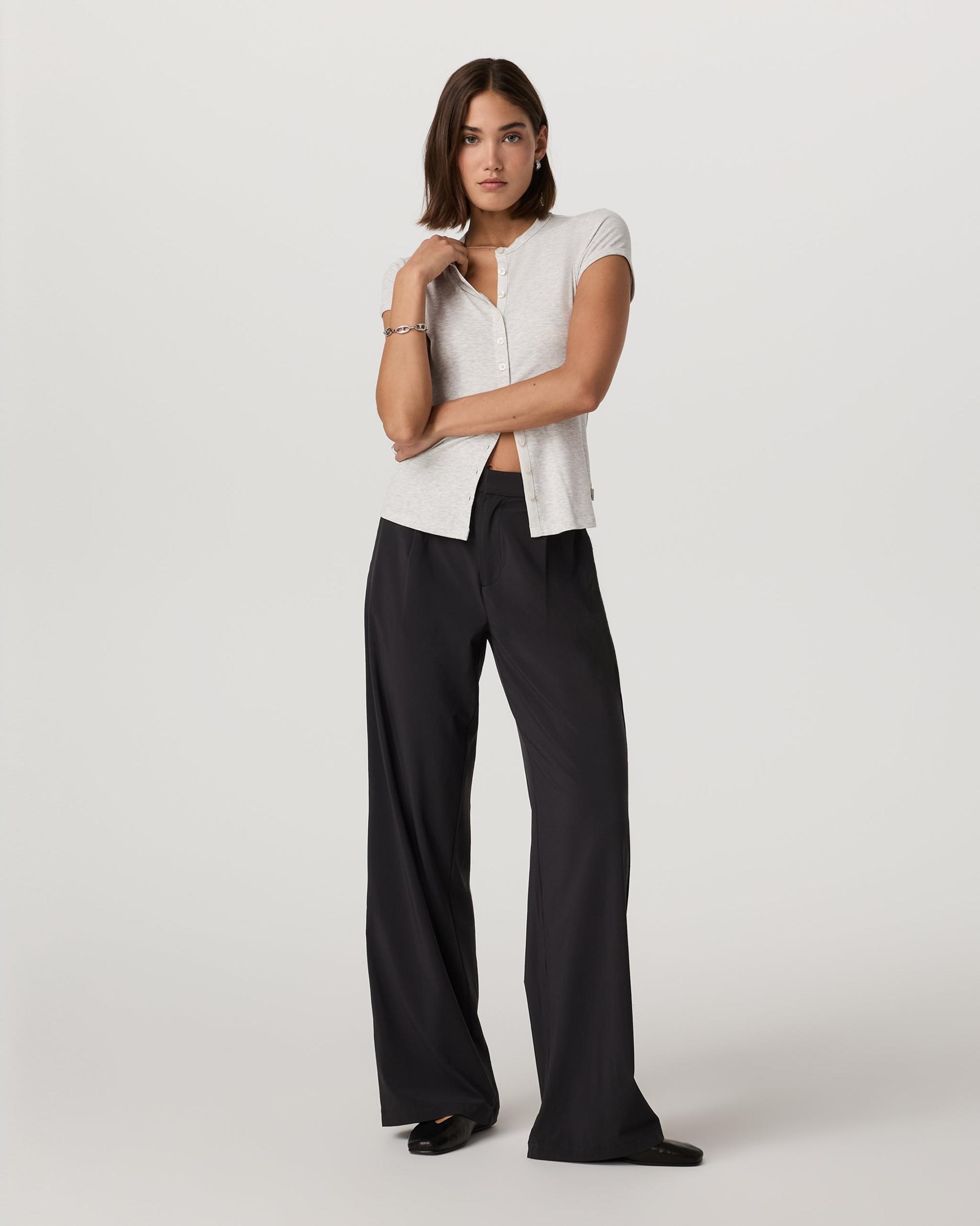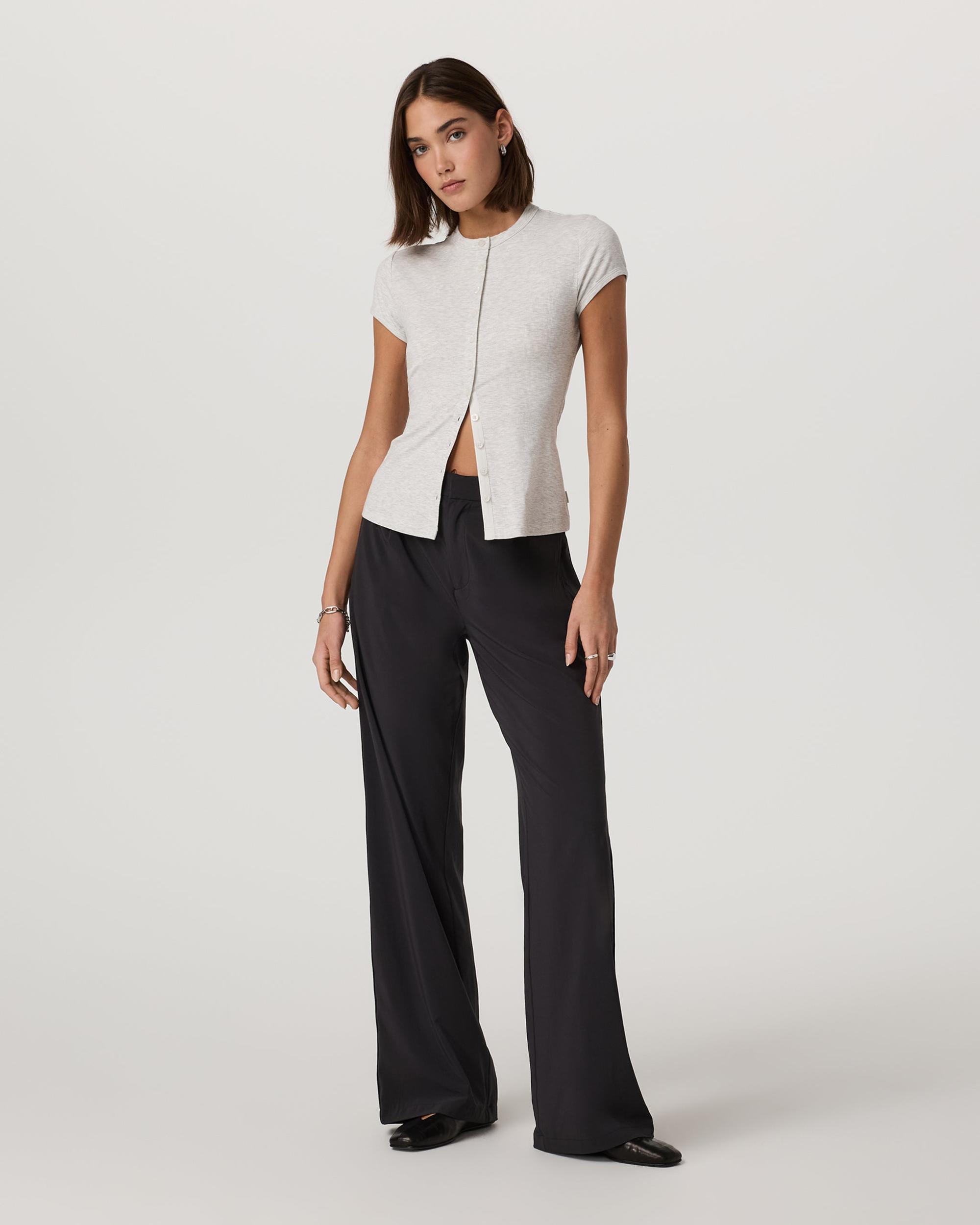 Shop the Short Sleeve Pose Button Up in White Heather Grey at Vuori. This women’s shirt features a button-up front & stretch rib knit for daily wear.