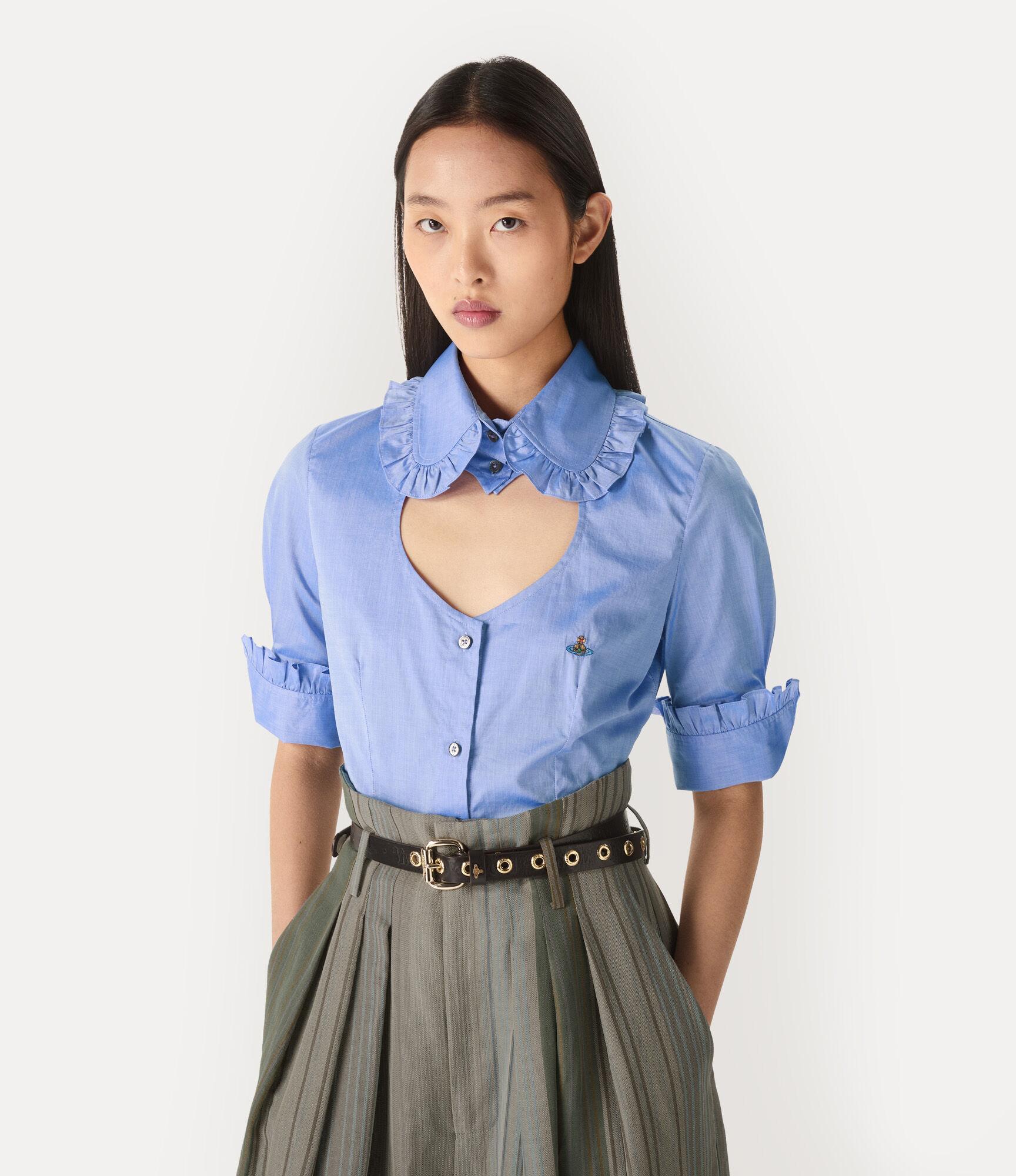 The Short Sleeve Toulouse Frill shirt revives our archival cut-out heart tailoring at the neckline - synonymous with Vivienne's affection for both humanity and the planet. The piece is finished with our signature orb embroidery at the chest, complete with a delicately rounded collar, framed with gathered frill detailing.