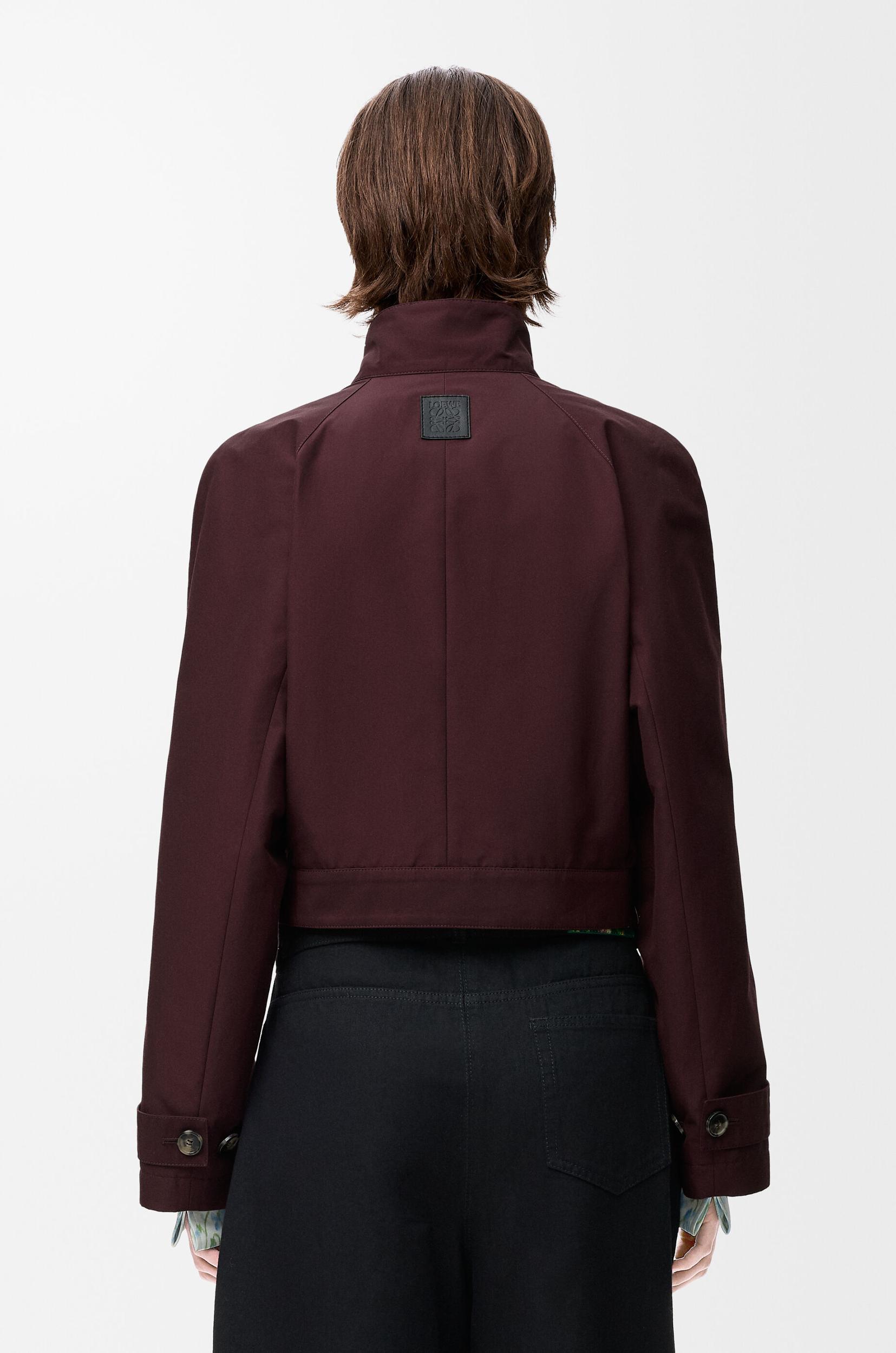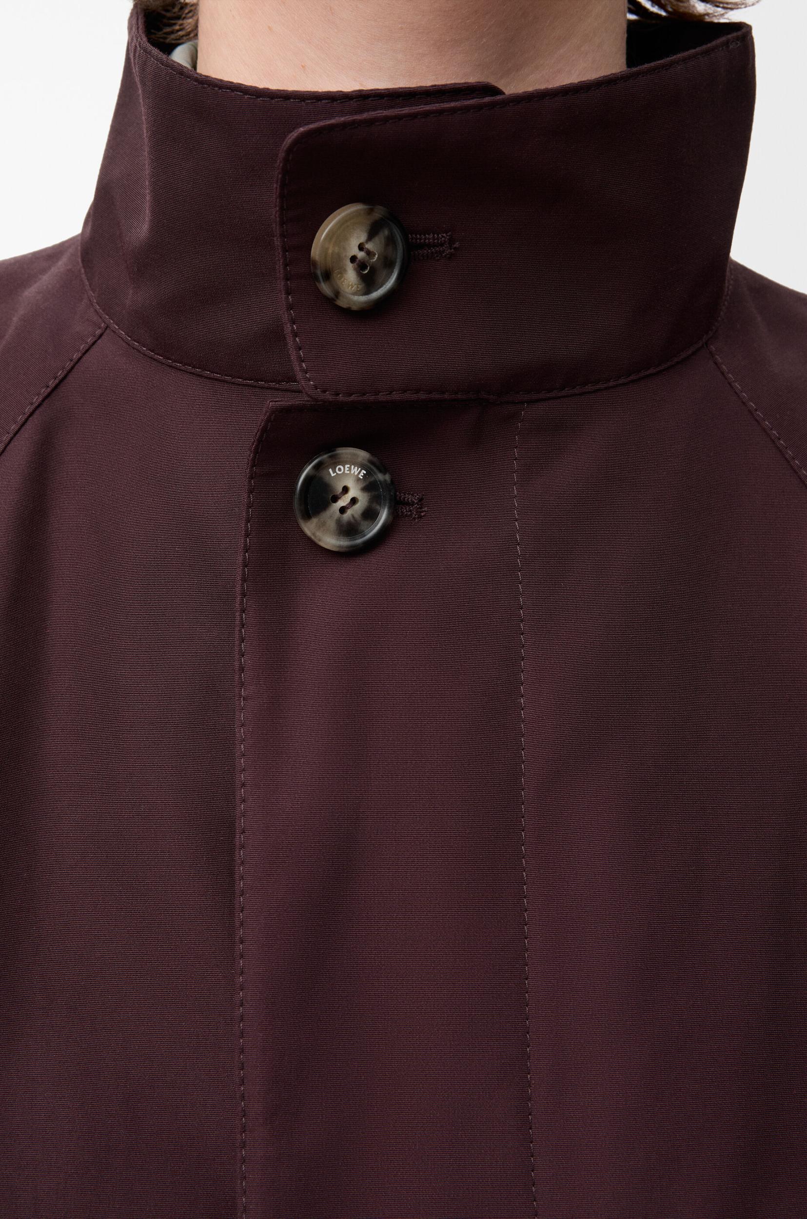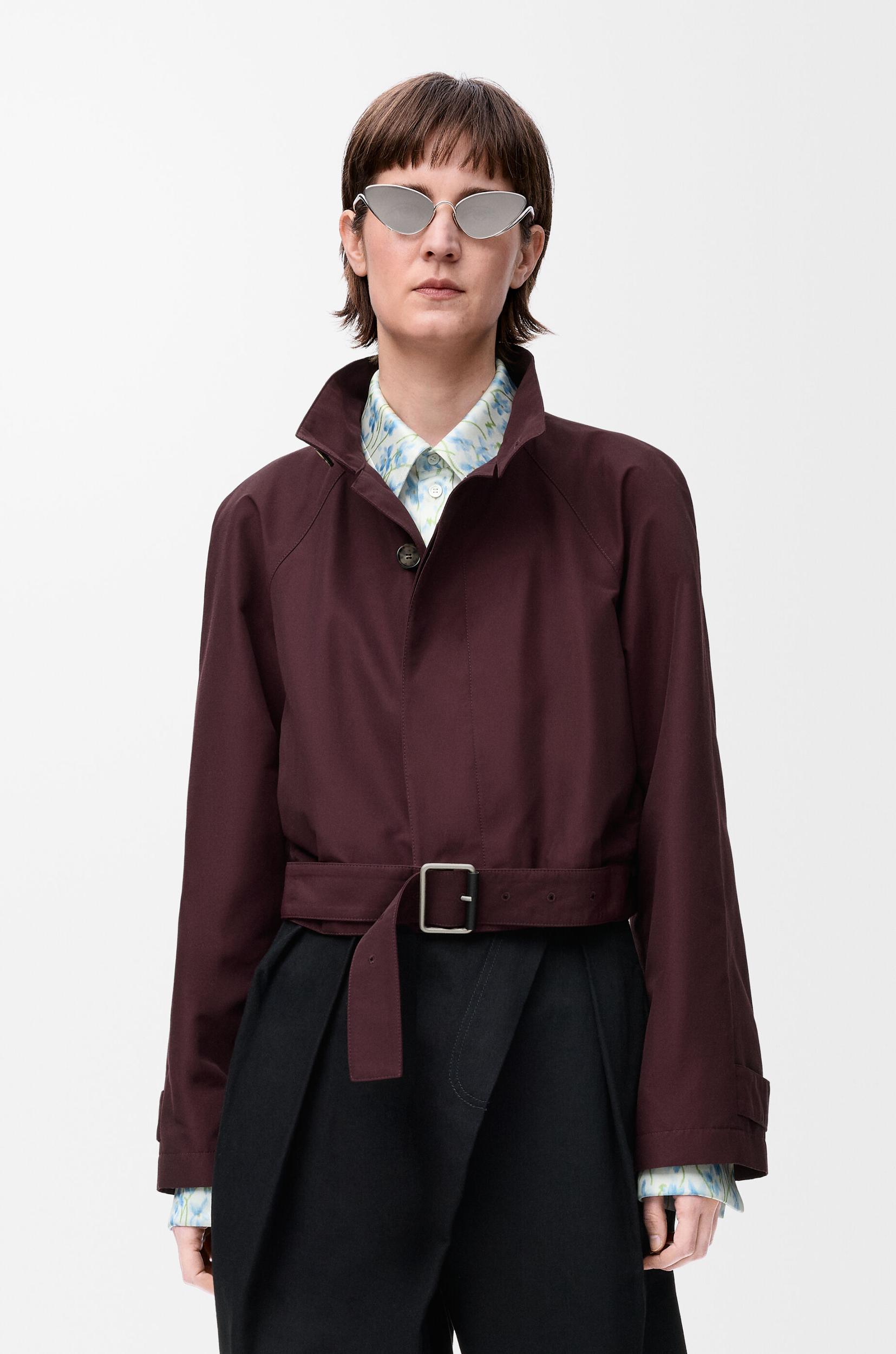 Trench in lightweight cotton blend ottoman featuring a high collar and an adjustable buckle belt at the hem. *Regular fit, short length *Concealed button front fastening *Raglan sleeves, cuff tabs *Vertical welt pockets, inside welt pocket *Fully lined *LOEWE Anagram embossed leather patch placed at the back