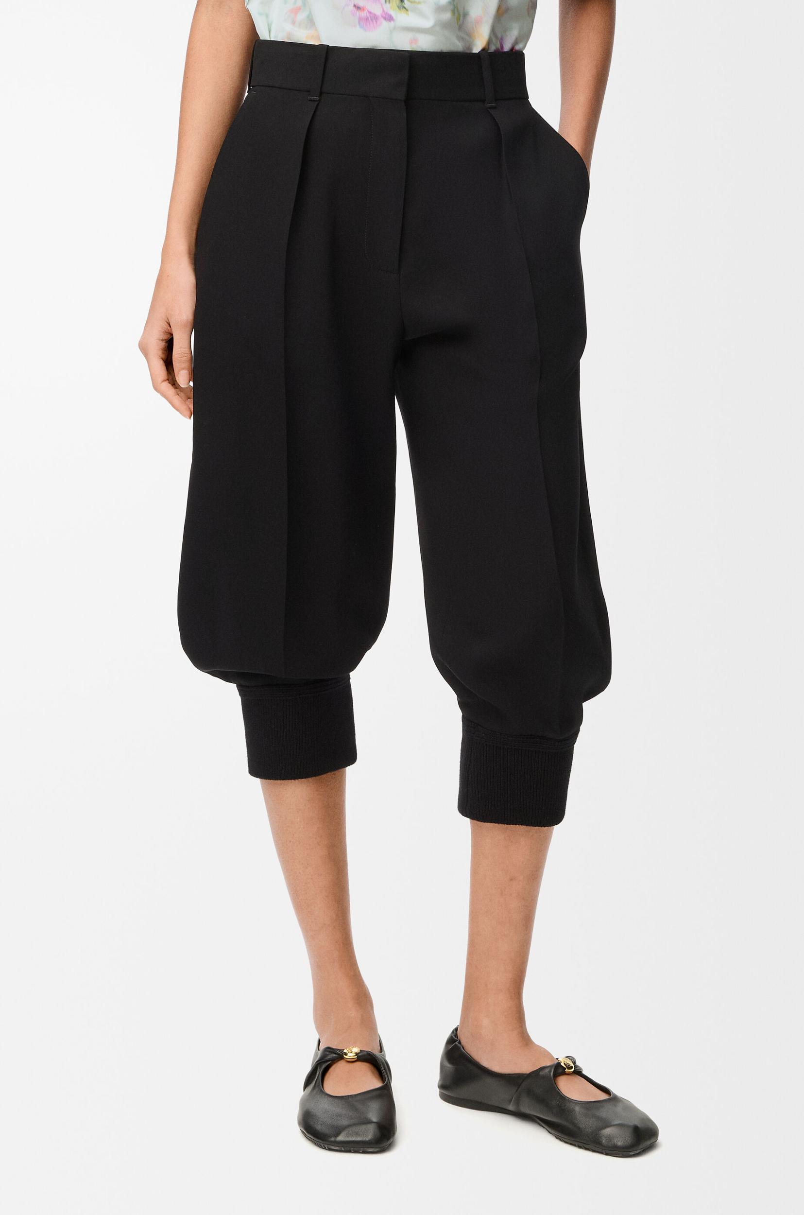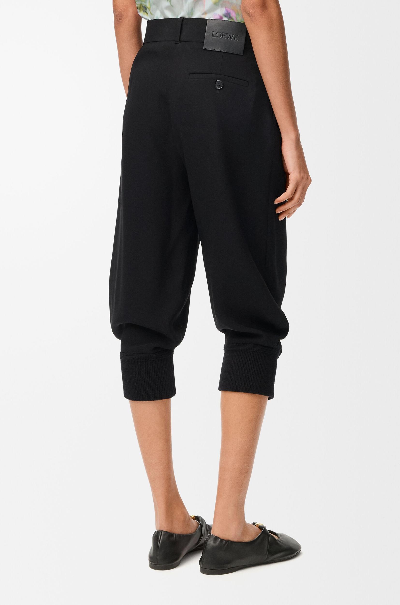Shorts in lightweight fluid stretch viscose cady featuring pressed creases at the front and back and rib knit cuffs. *Regular fit, long length *Mid waist *Concealed zip fly *Seam pockets, buttoned rear welt pocket *LOEWE embossed leather patch placed at the back