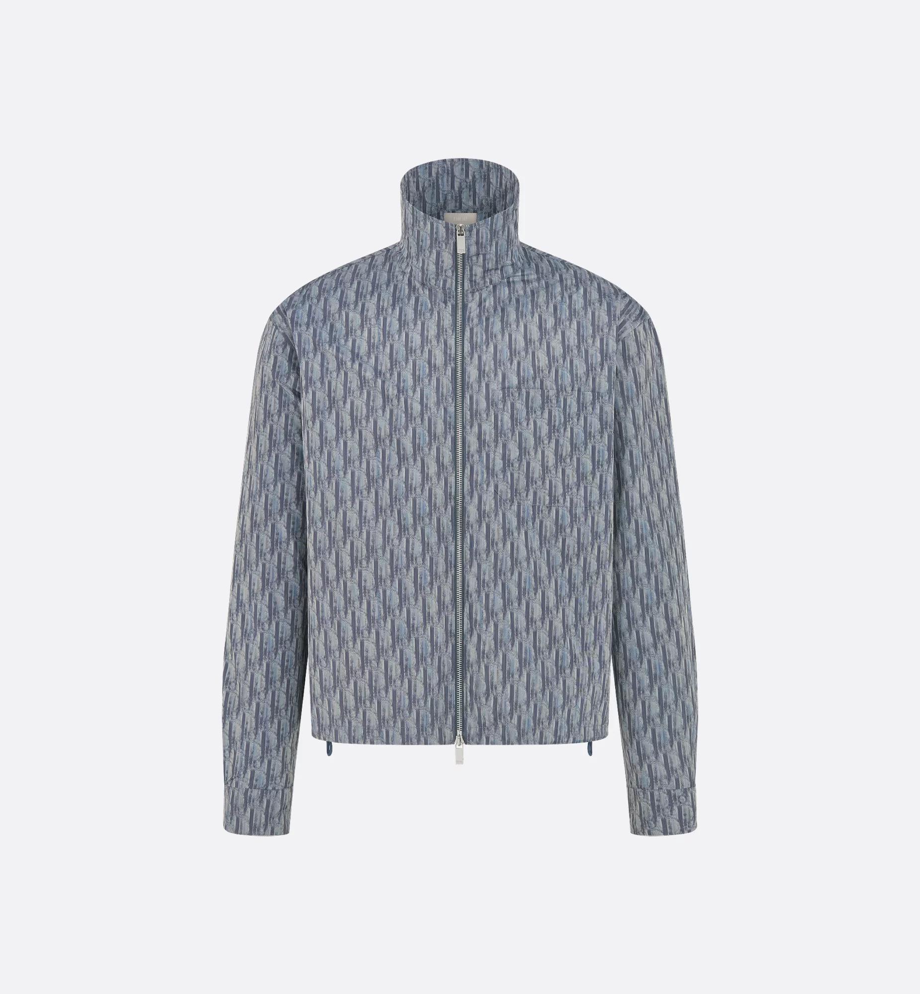 The zipped shirt showcases the House's emblematic Dior Oblique motif. Crafted in blue technical fabric, it is characterized by a sportswear silhouette with a chest patch pocket and a drawstring hem. Featuring an oversized fit, the zipped shirt will elevate daily looks with a stylish touch. Chest patch pocket. Two-way zip closure. Collar: 8.5 cm / 3.5 inches. Drawstring hem. 100% polyester. Made in Italy