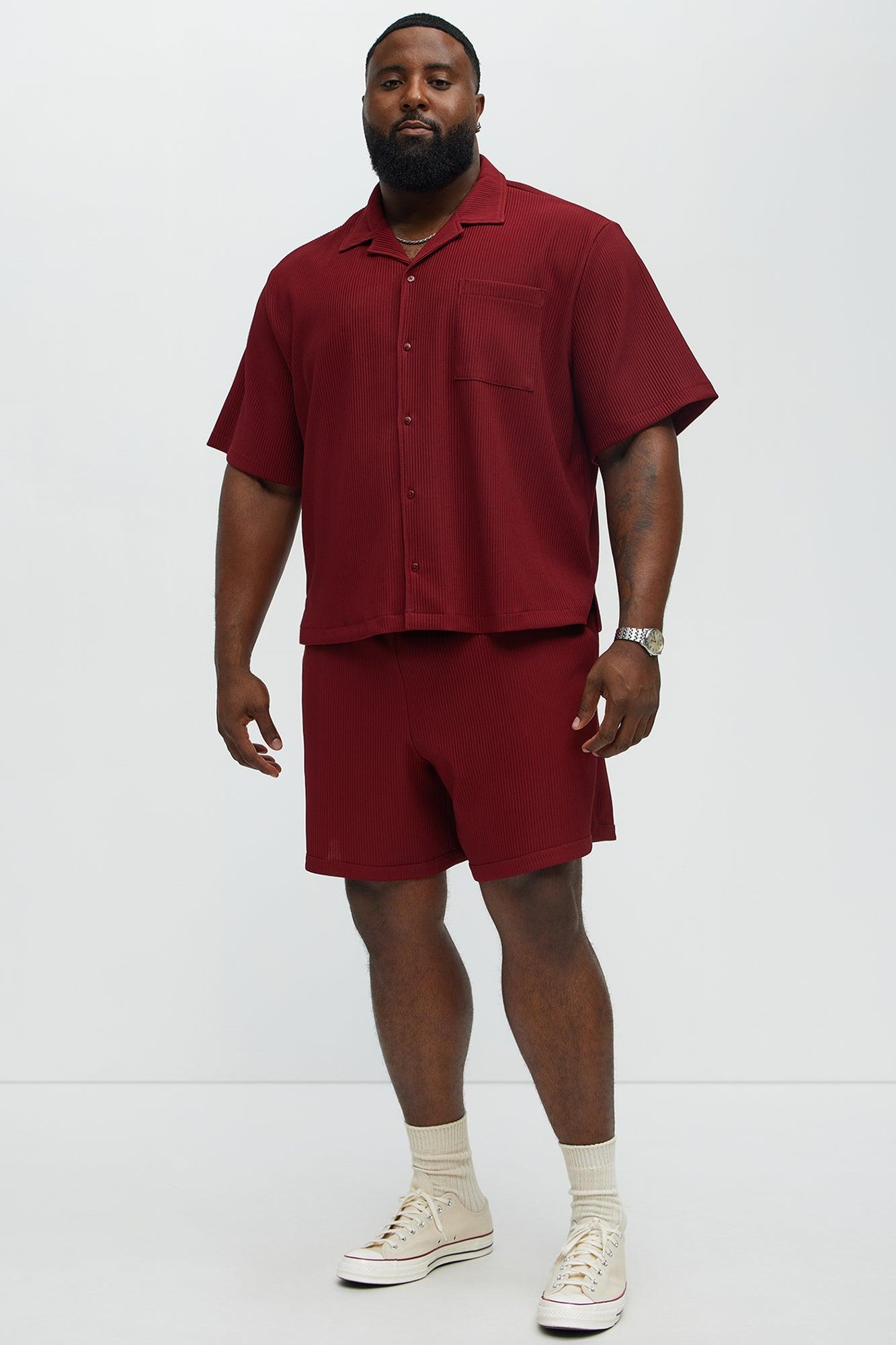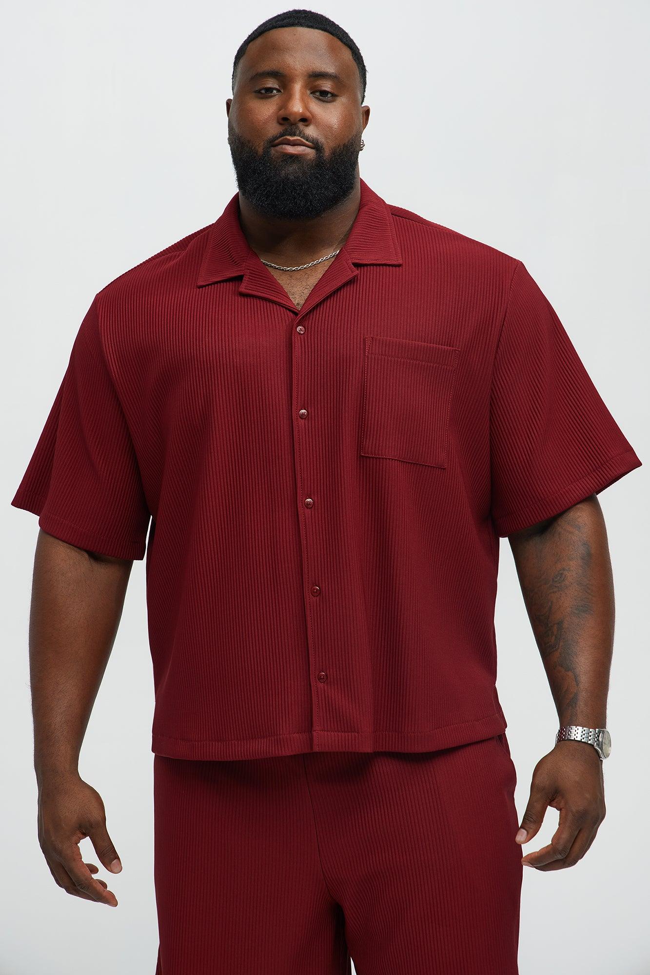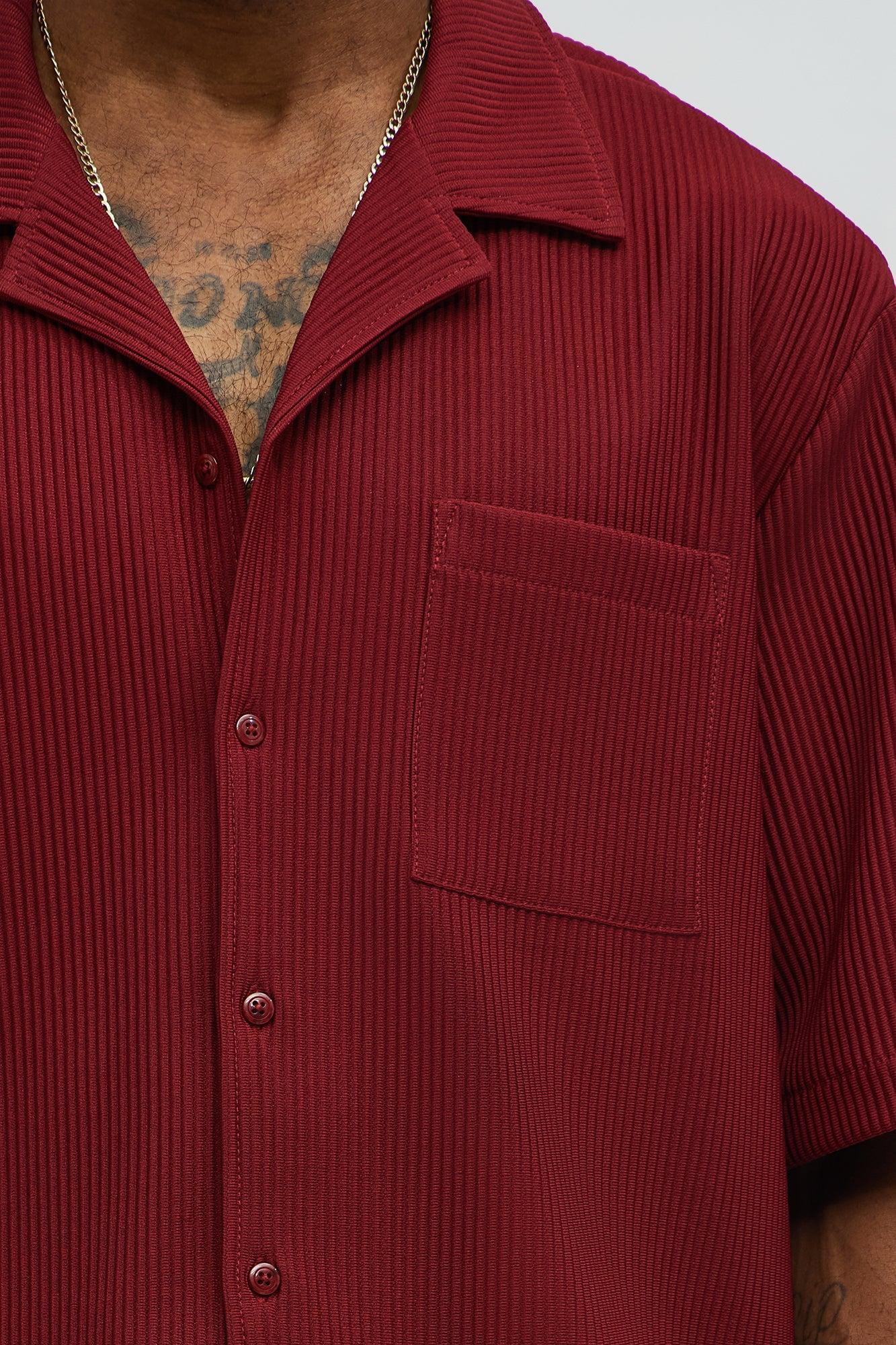 Show Up Short Sleeve Cuban Shirt - Burgundy