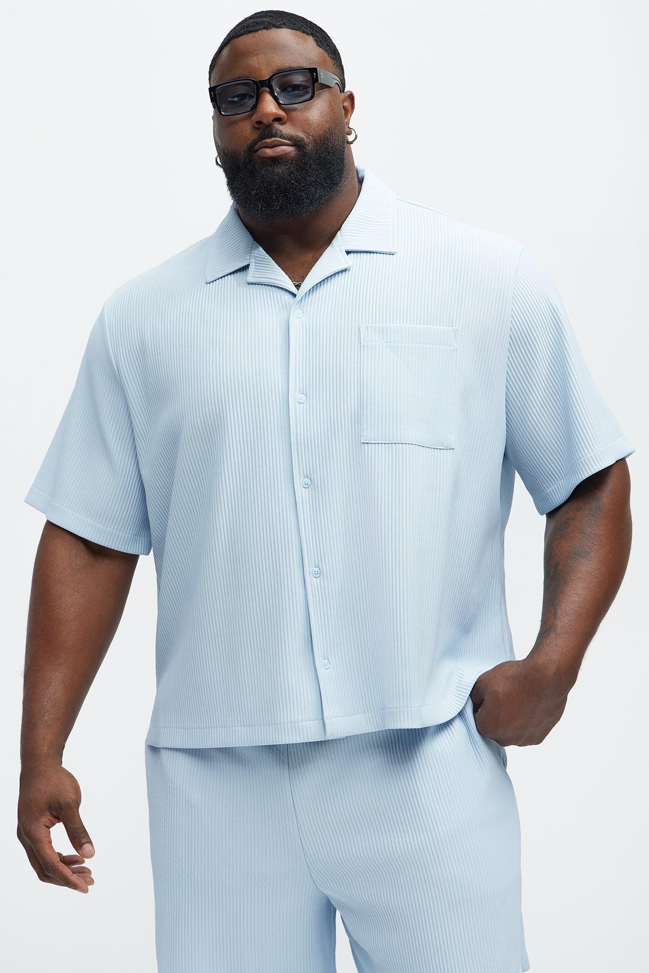 Available In Black, Burgundy, Butter Yellow, Chocolate, Green, Grey, Lavender, Light Blue, Navy, Off White, Pink, Red, Sage, Stone And Teal. Cuban Collar Short Sleeve Front Button Closure Left Chest Pocket 96% Polyester 4% Elastane Pair With "Show Up Slim Slit Pants" Or "Show Up Basketball Short" Imported