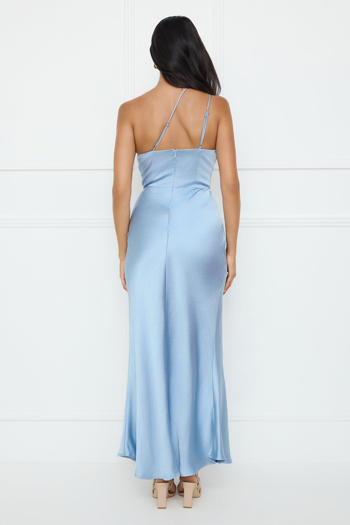 Show You Love One Shoulder Satin Maxi Dress Blue