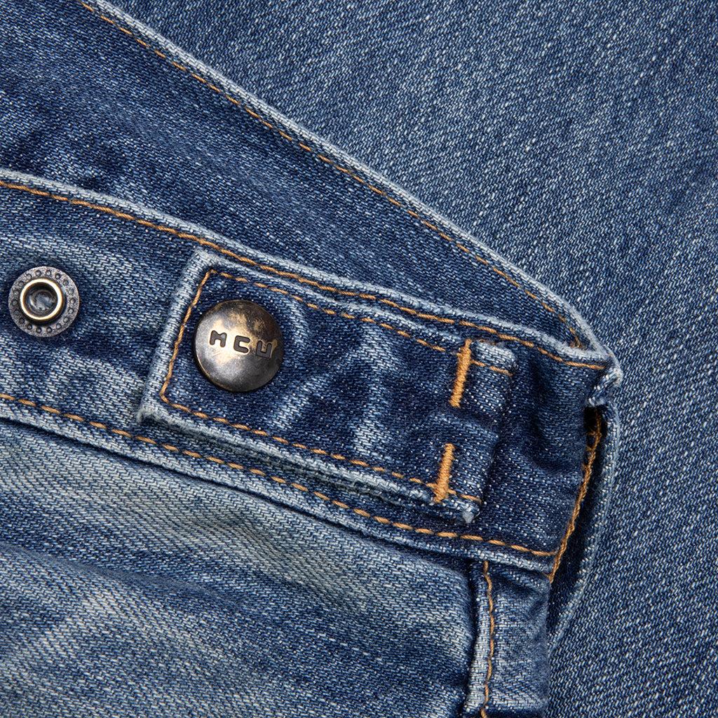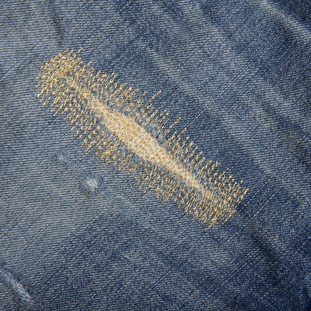 Luxury Japanese brand MasterCraft Union is known for crafting timeless, premium denim like the Showa Relaxed Jean. Composed of cotton fibers sourced from around the world, and manufactured by hand in Okayama, Japan, this silhouette is an elevated staple. MCU uses the Kintsugi method, adorning garments with gold leaf repair stitching. The style has a vintage wash and features distressed elements, branded MCU hardware, and a woven label at the back pocket. 100% Cotton Vintage wash Five-pocket design Distressing Zip-fly closure Woven label Gold leaf repair stitching Style No: 703.10.24