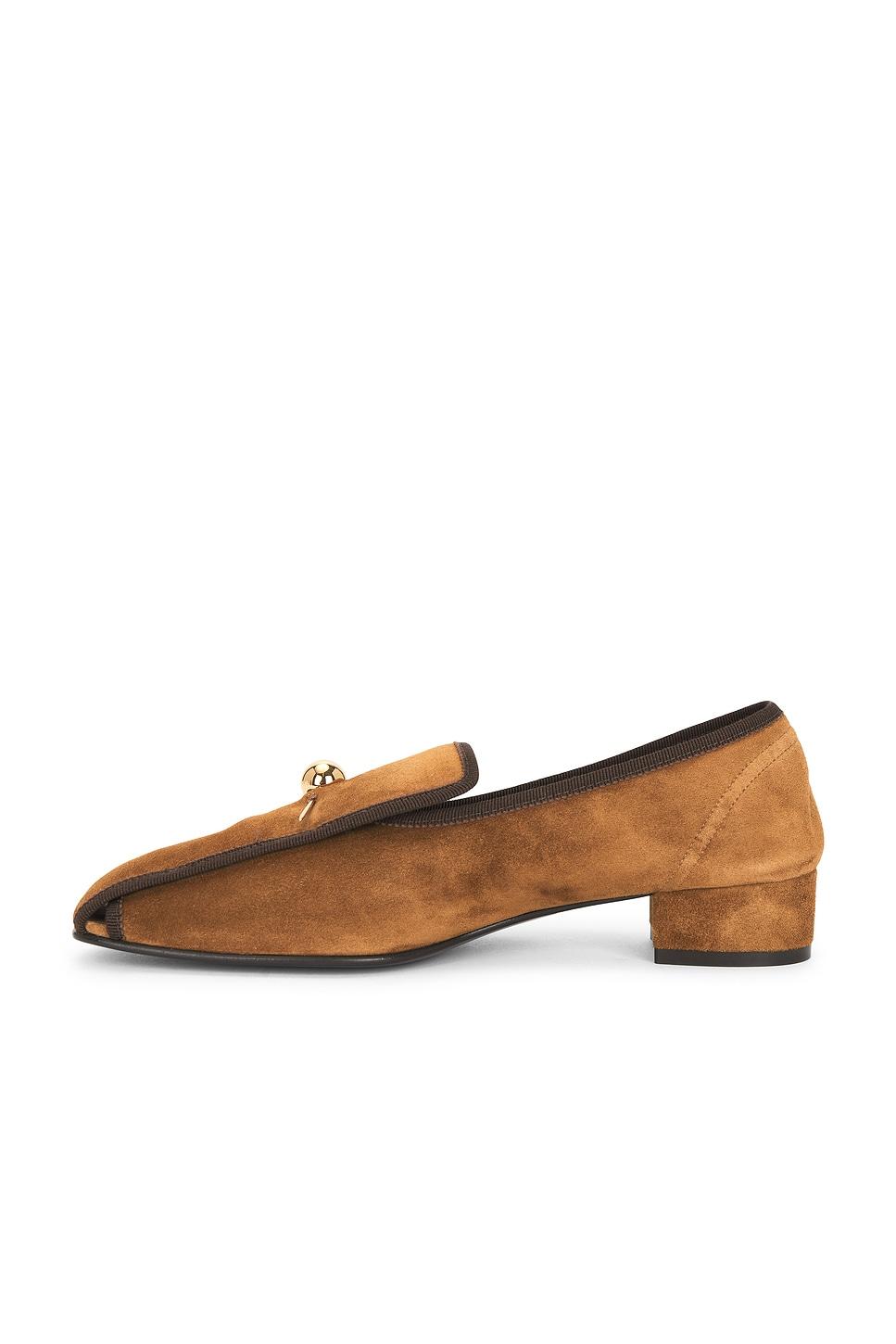 loafersSuede and textile upper with leather sole / Slip-on styling / Gold-tone hardware accent at vamp / Leather lining and footbed / Square toe / Approx 25mm/ 1 inch heel / Made in Italy / Our Style No. HRTF-WZ9 / Manufacturer Style No. HBWF015_020 /