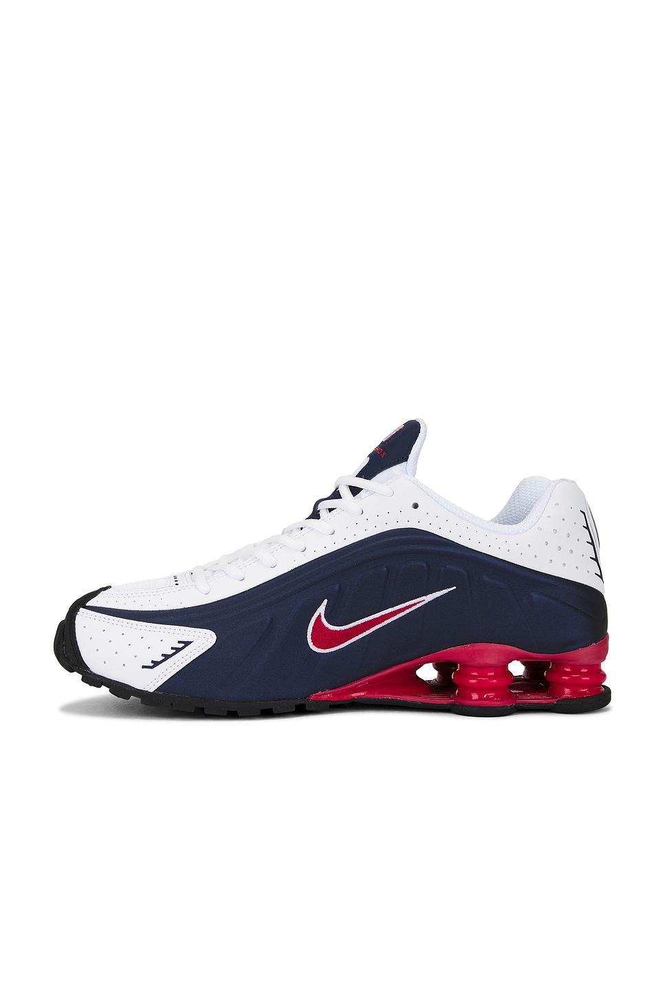 sneakerMesh and textile upper with rubber sole / Lace-up front / Nike Shox technology features resilient, flexible columns that compress and regain shape for outstanding cushioning / Nike Shox columns in the heel distribute weight to maximize comfort / Modified, circular Waffle outsole offers great traction / Laser perforations throughout provide ventilation / This item is not available for international export / Made in Indonesia / Our Style No. NIKR-MZ1136 / Manufacturer Style No. HQ1988-400 /