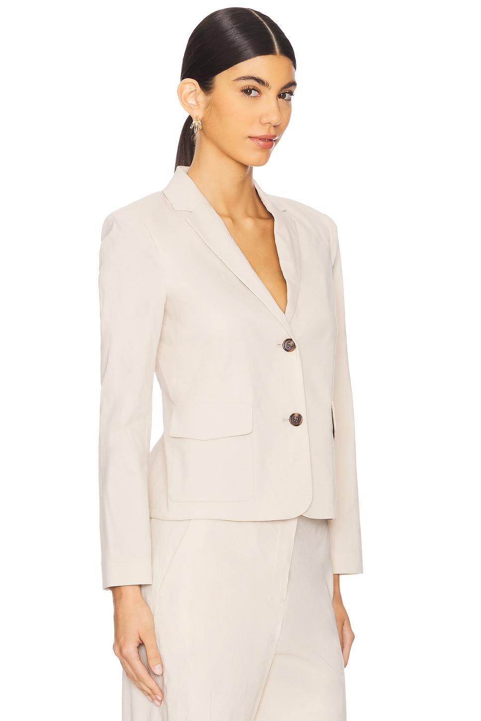 Self: 62% linen, 36% viscose, 2% elastaneLining: 100% polyester. Dry clean only. Front button closure. Front flap pockets. Midweight stretch canvas fabric. Item not sold as a set. Made in Vietnam. Revolve Style No. THEO-WO389. Manufacturer Style No. P0203106.